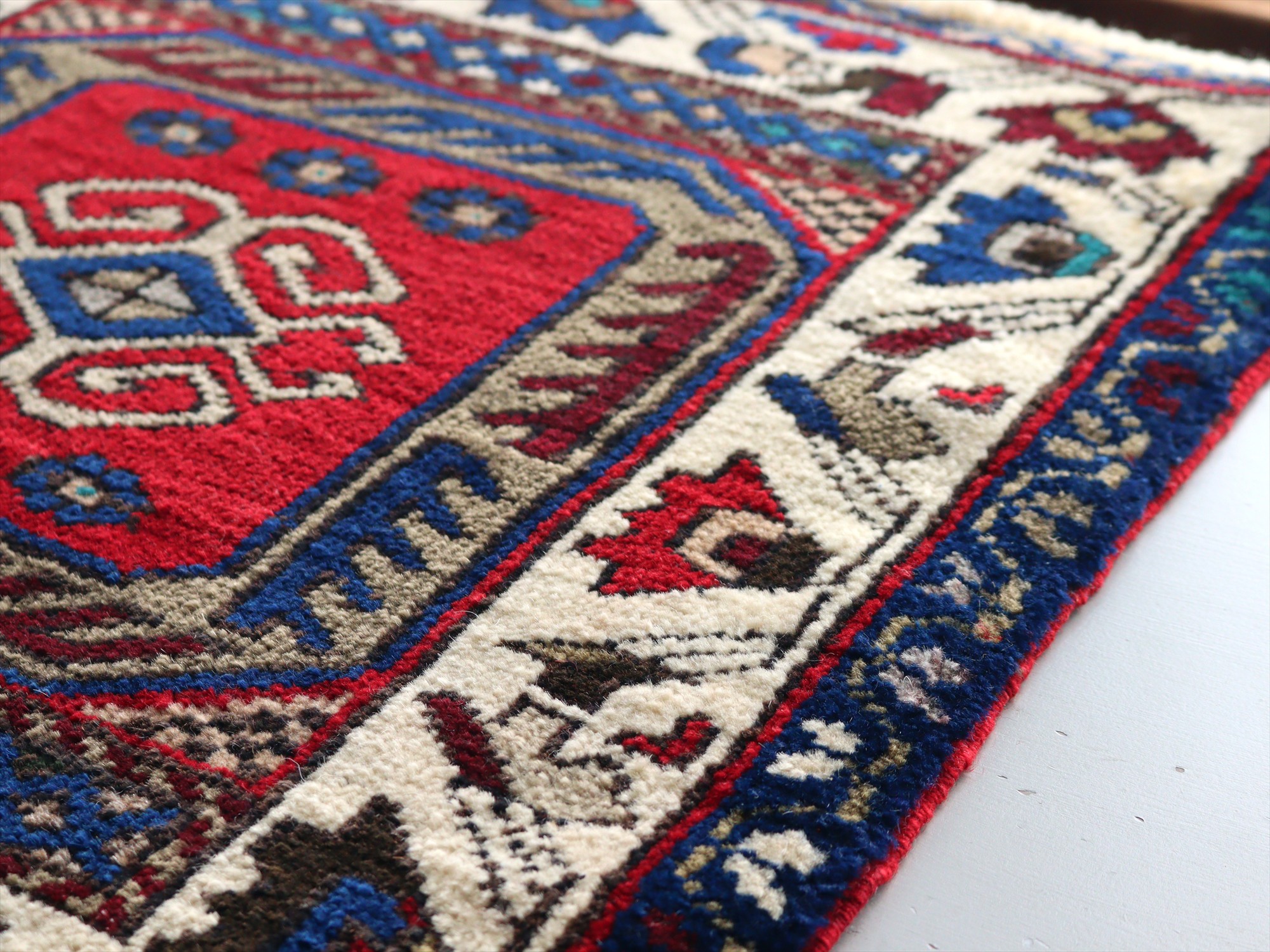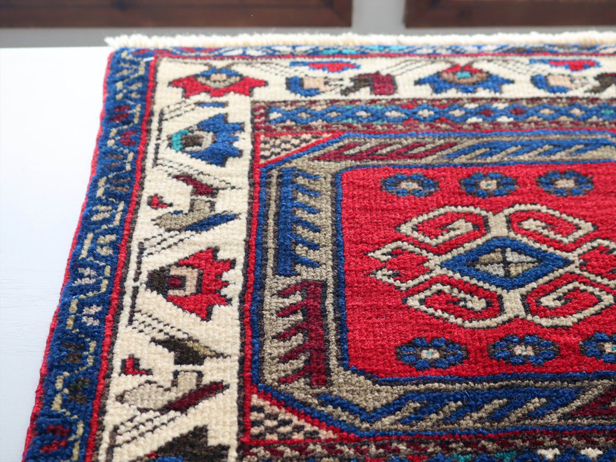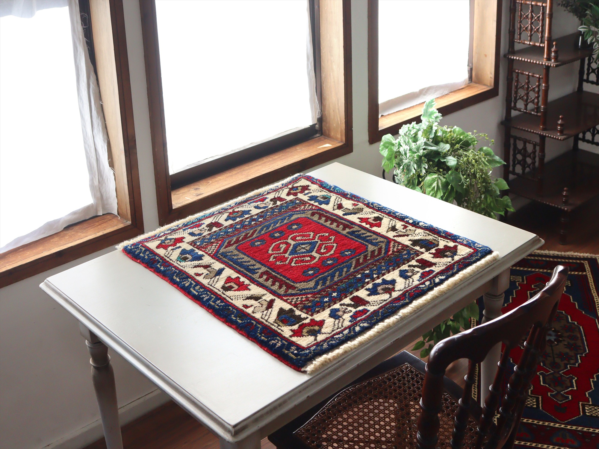 手織り絨毯 小さなサイズ63×63cm ウシュクラル サドルバッグのピース