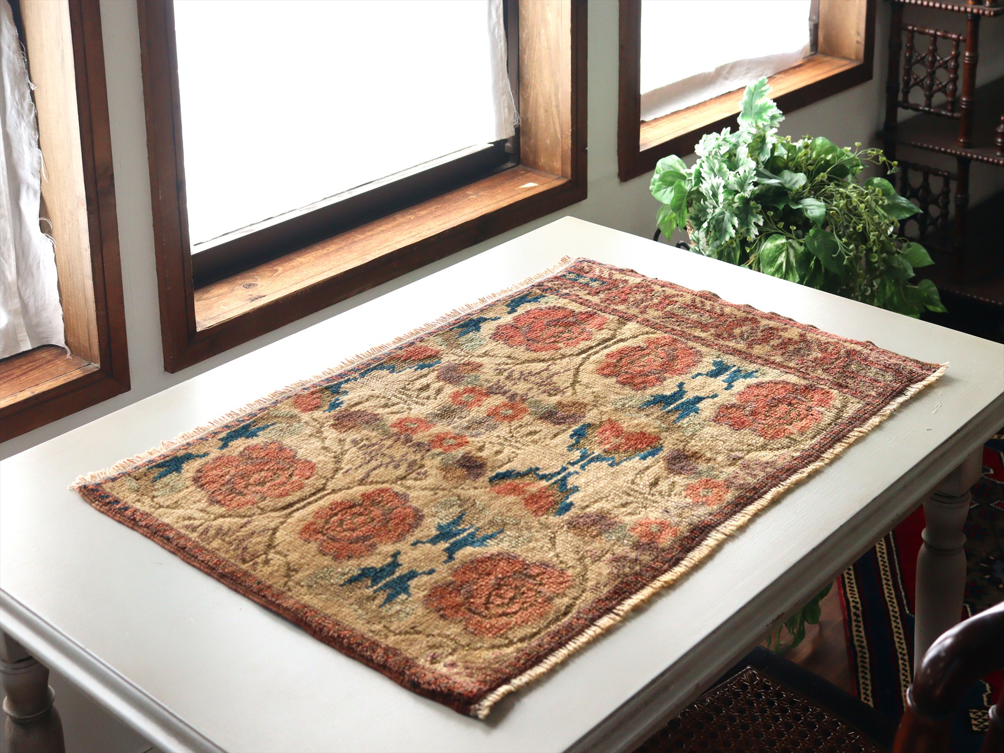手織り絨毯 小さなサイズ47×74cm コンヤ バラのデザイン