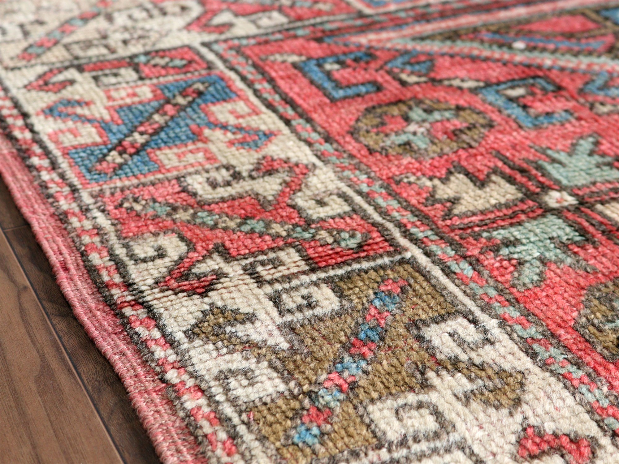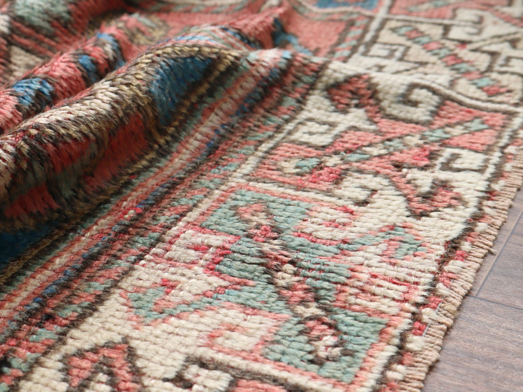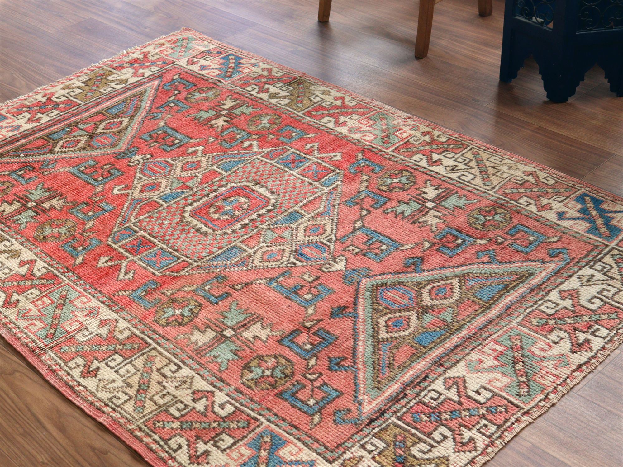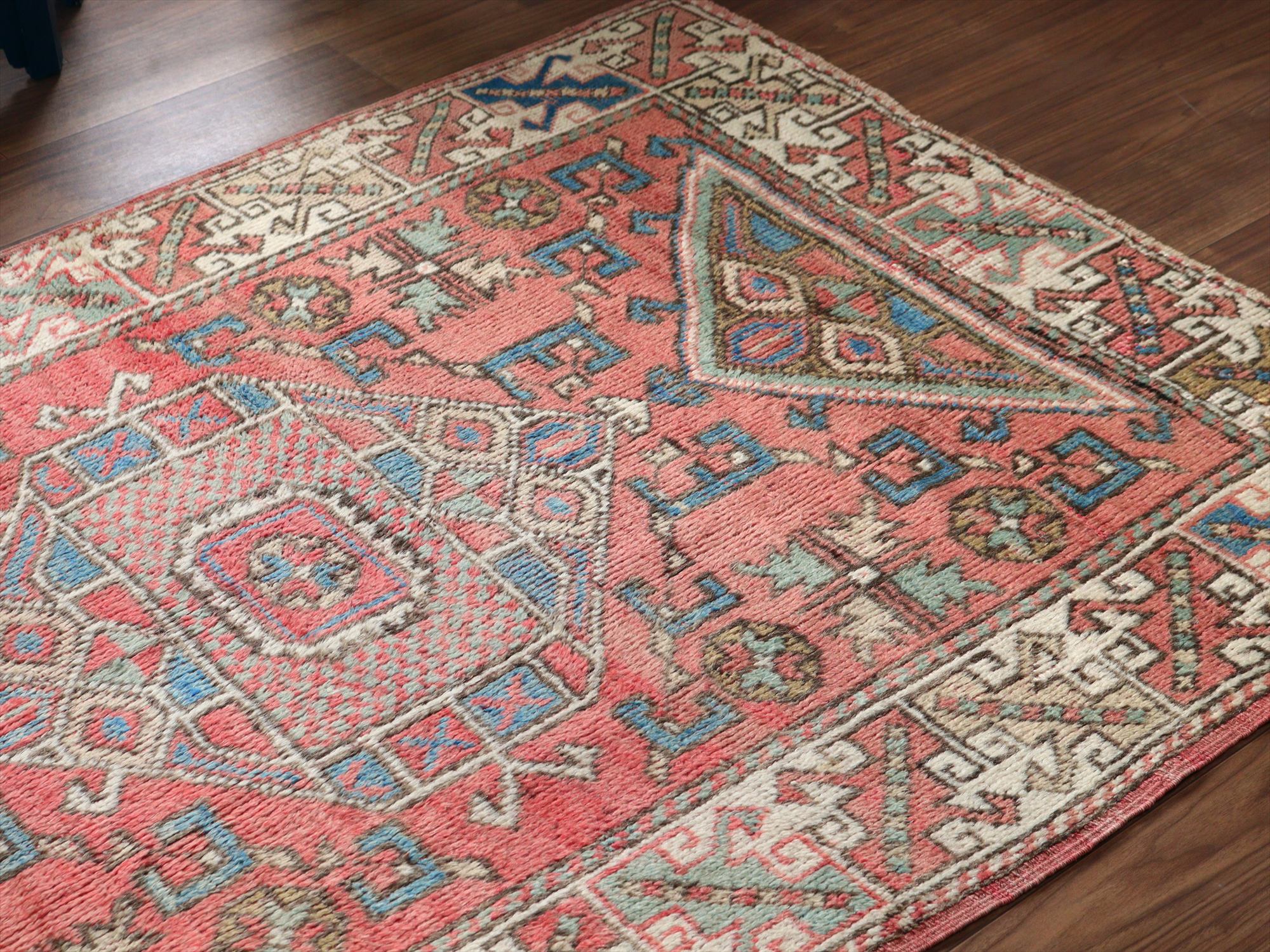 トルコ絨毯 チャナッカレ175×119cm 色褪せたレッド&ブルー