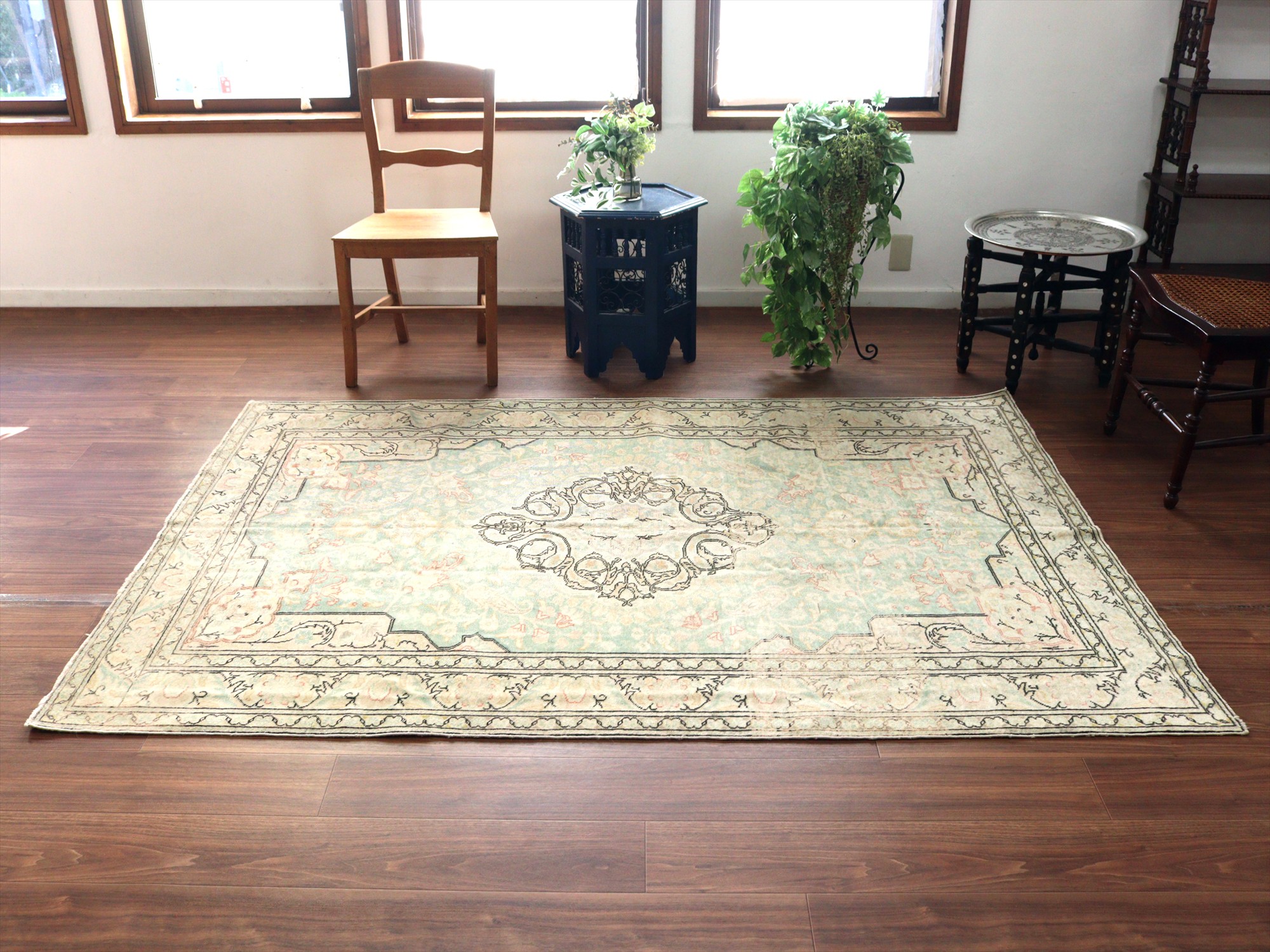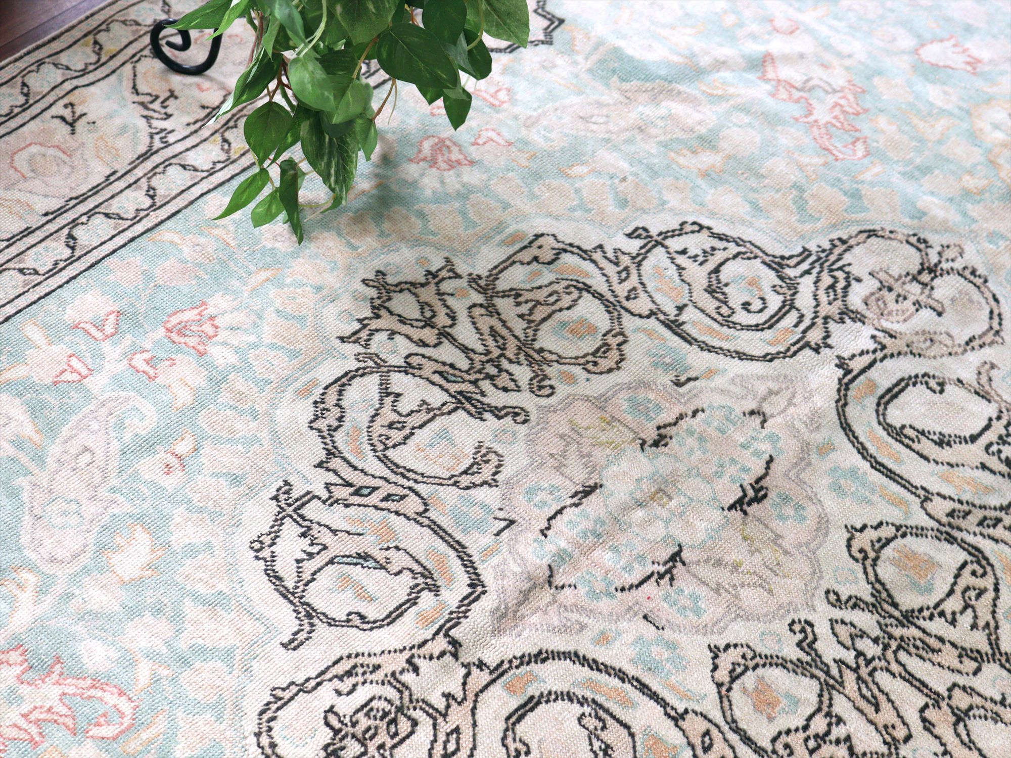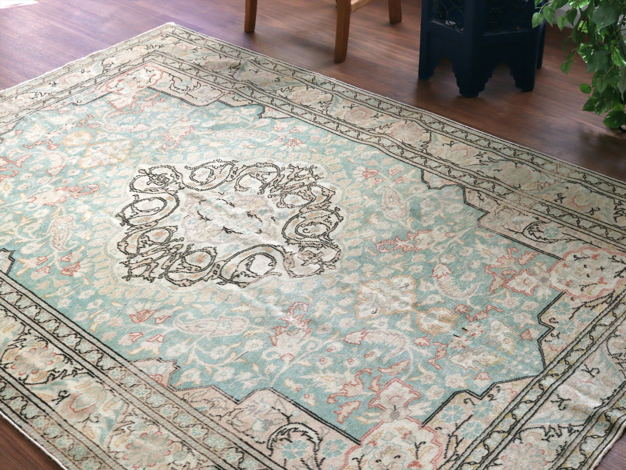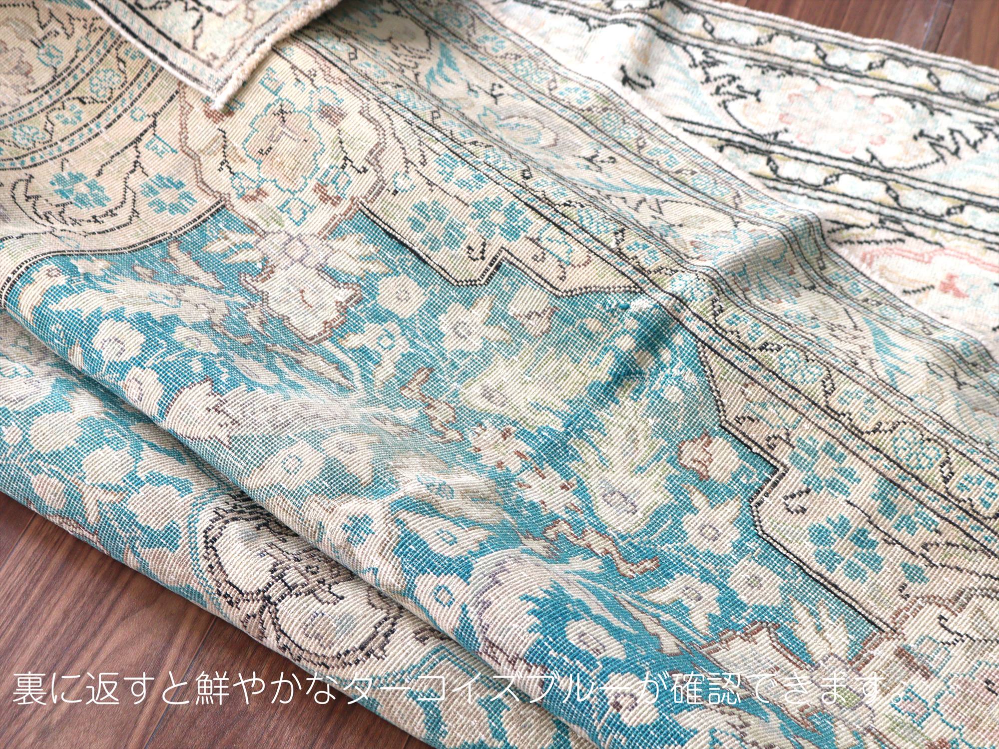 オールドカーペット トルコ絨毯208×145cm 色褪せたターコイズブルー