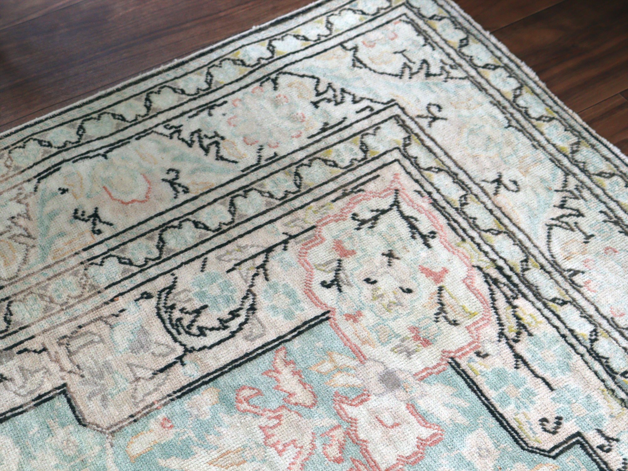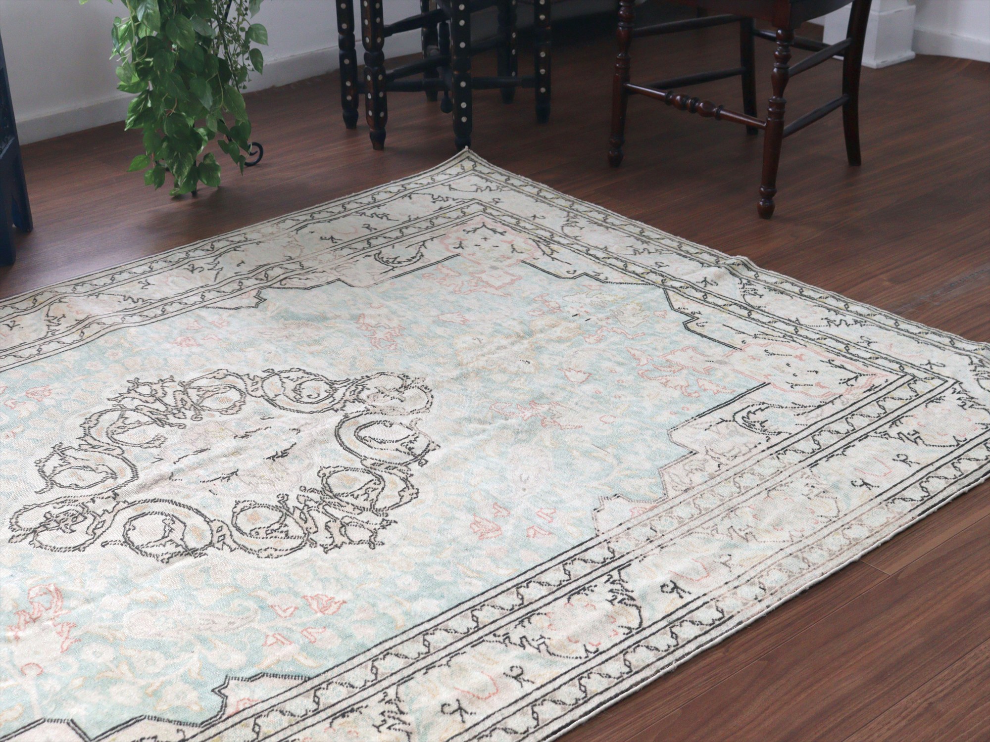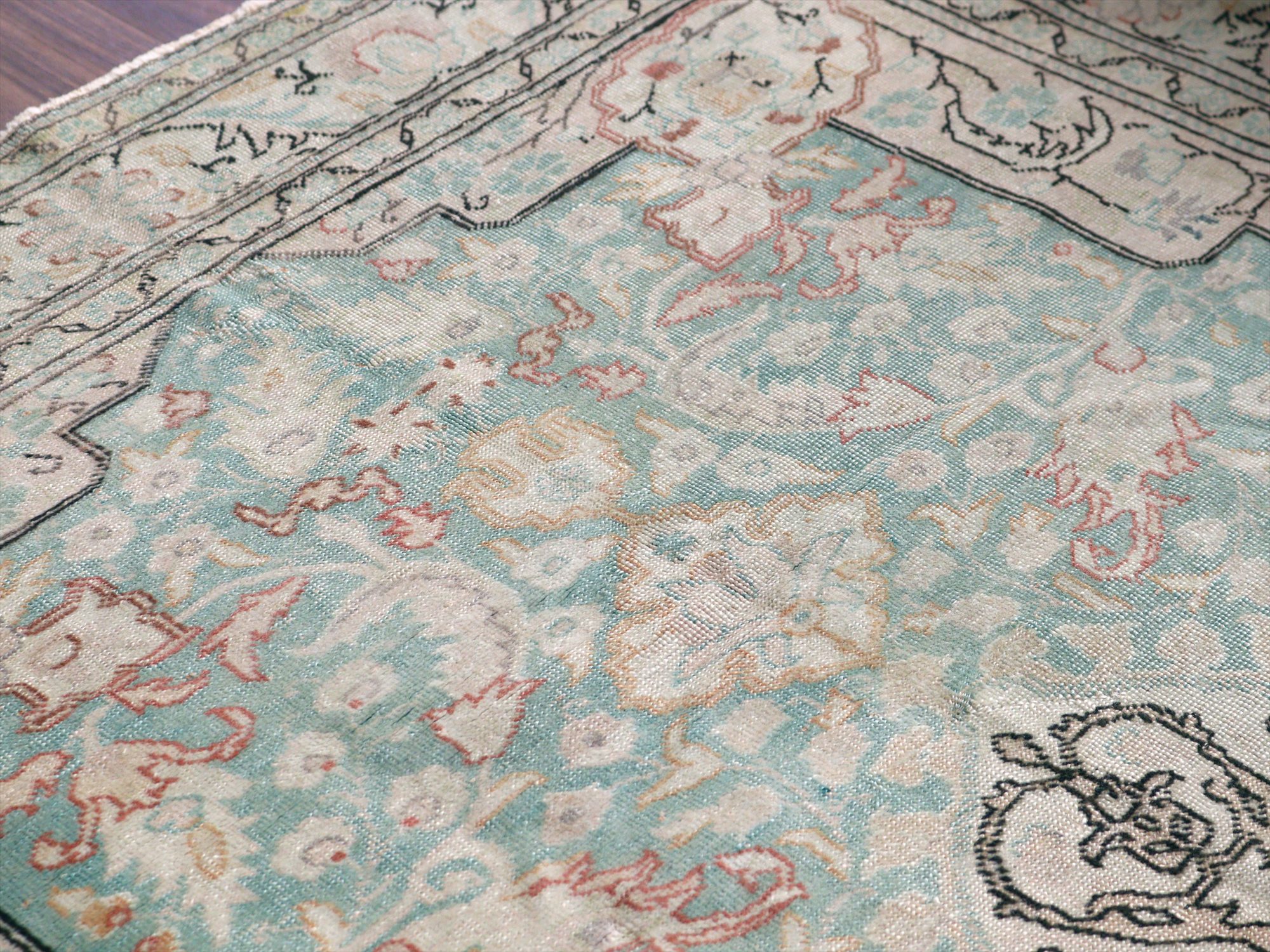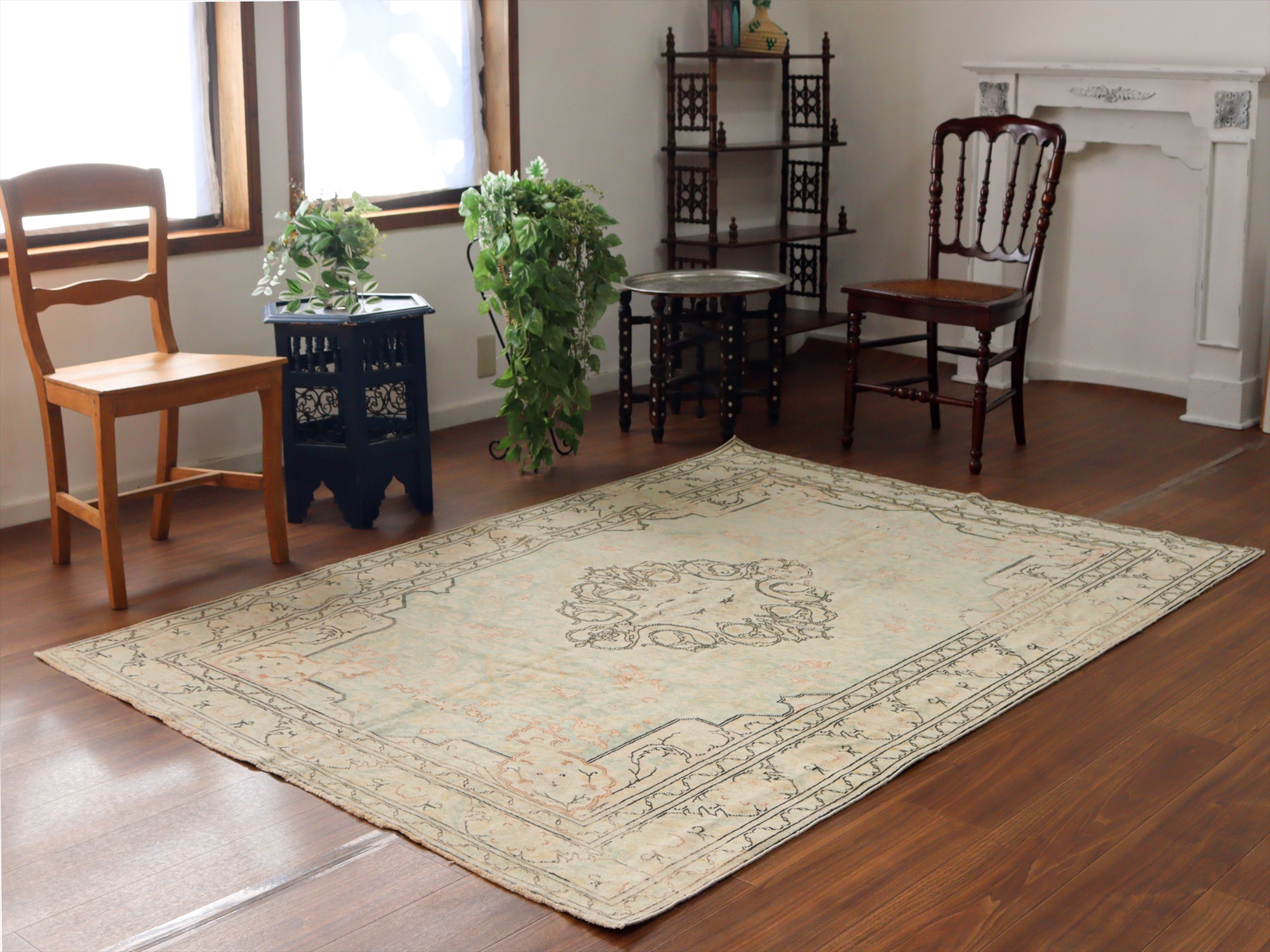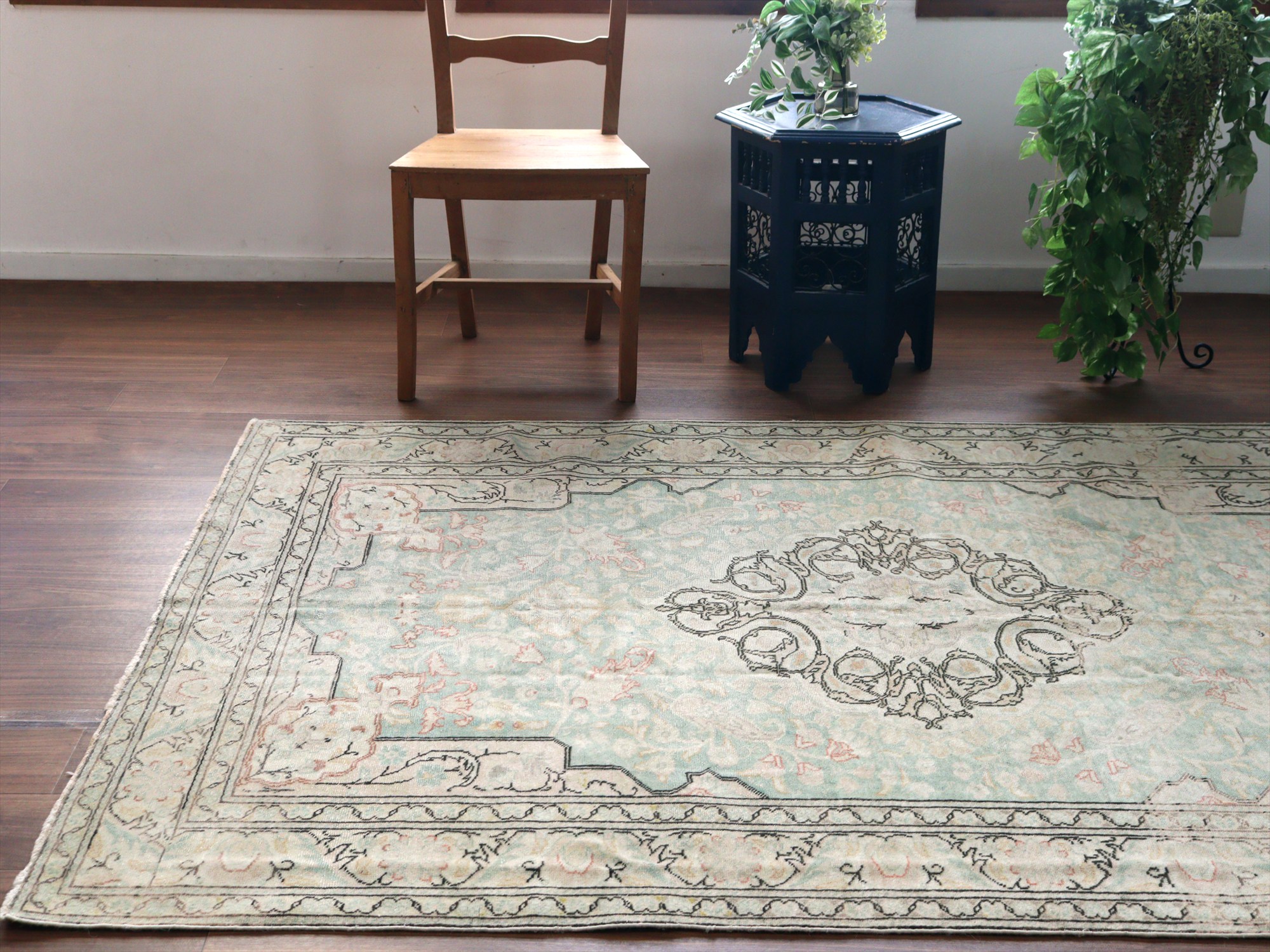 オールドカーペット トルコ絨毯208×145cm 色褪せたターコイズブルー