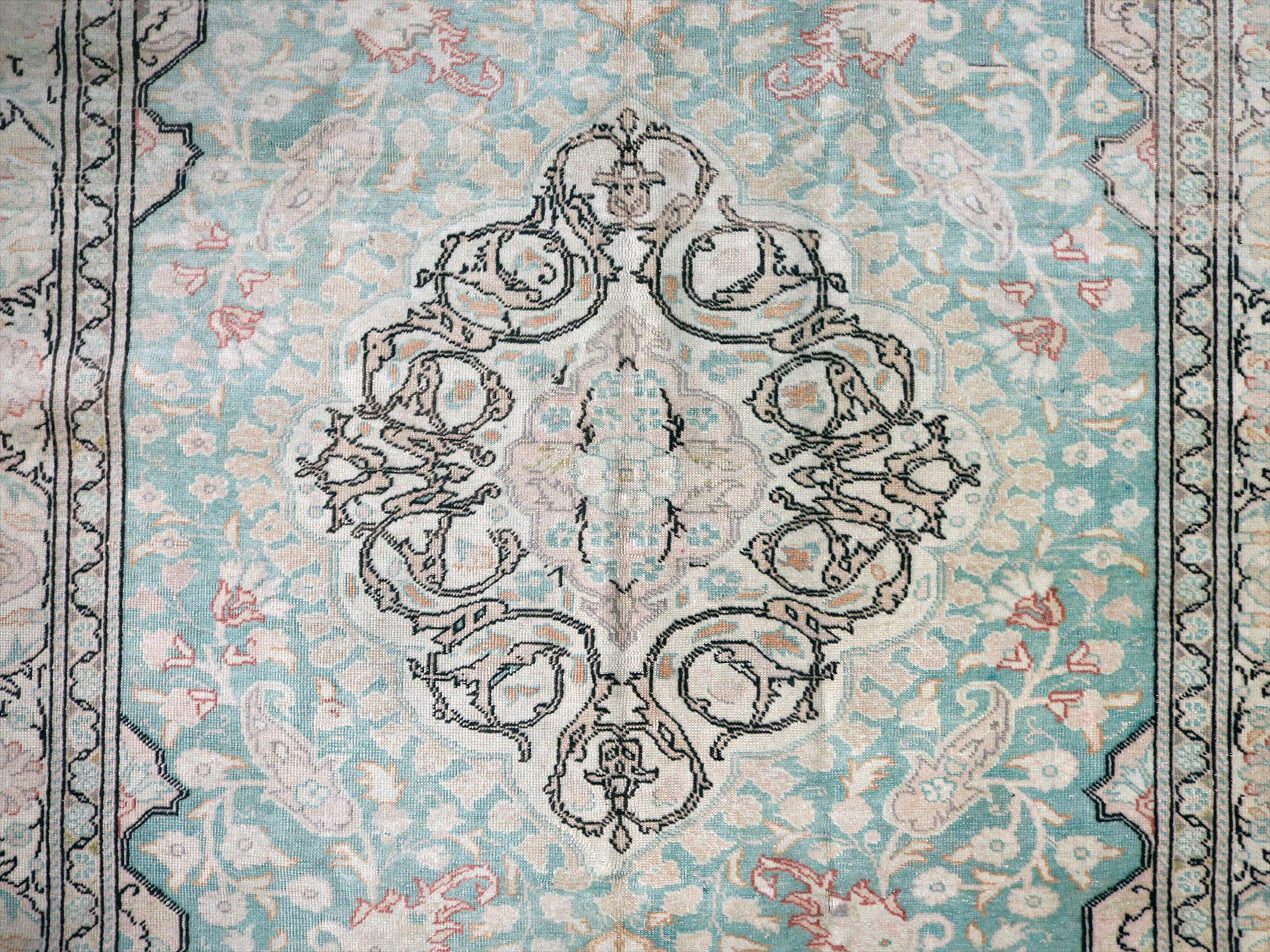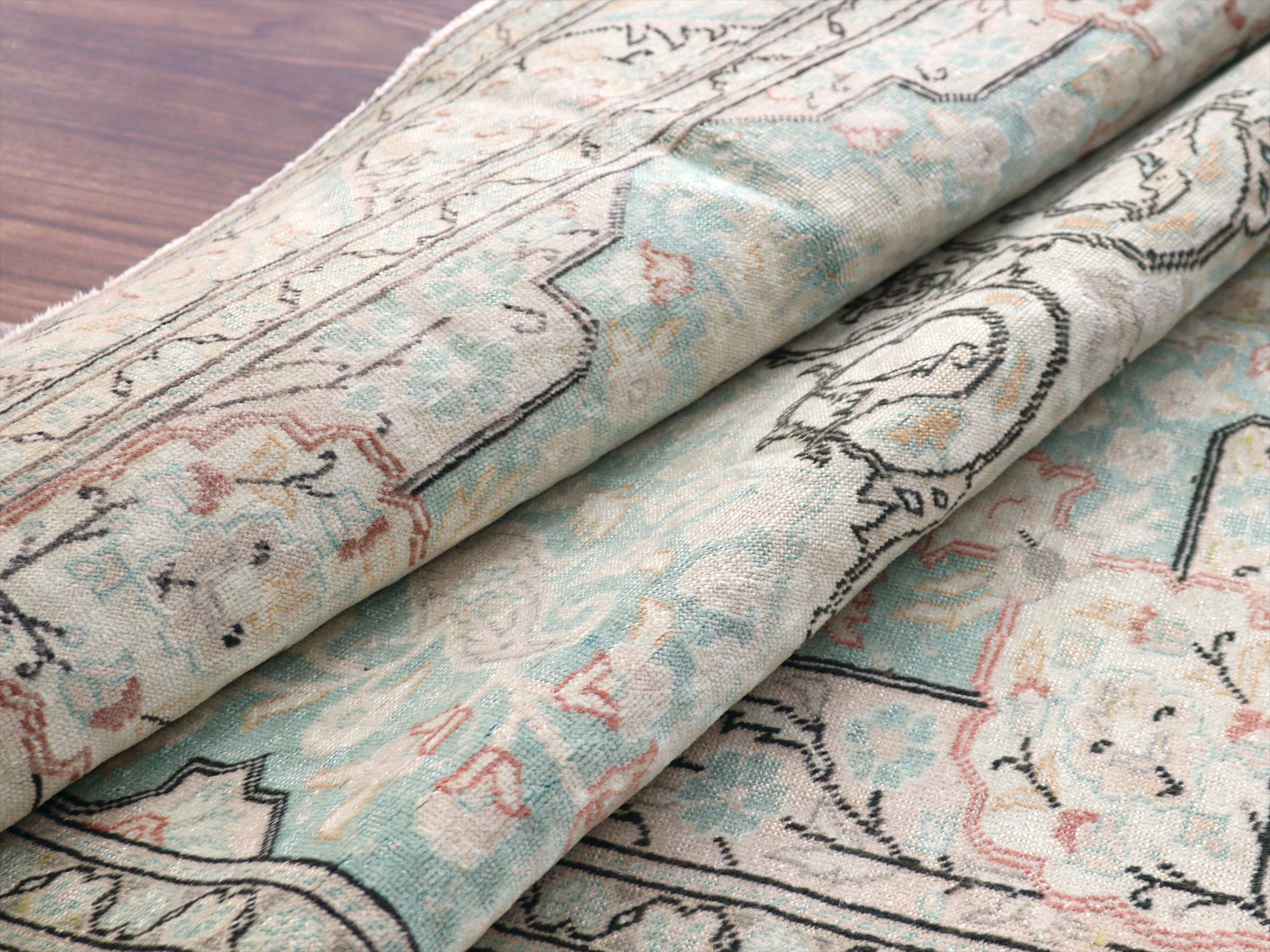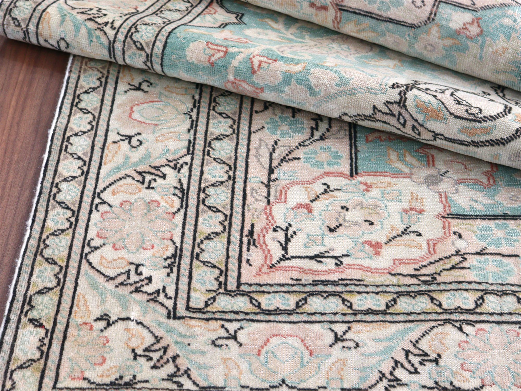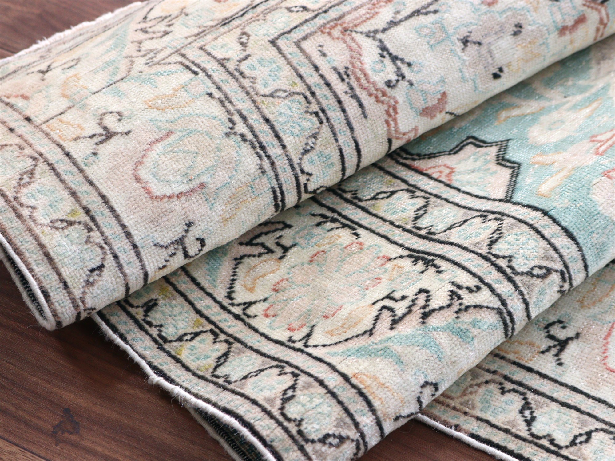 オールドカーペット トルコ絨毯208×145cm 色褪せたターコイズブルー