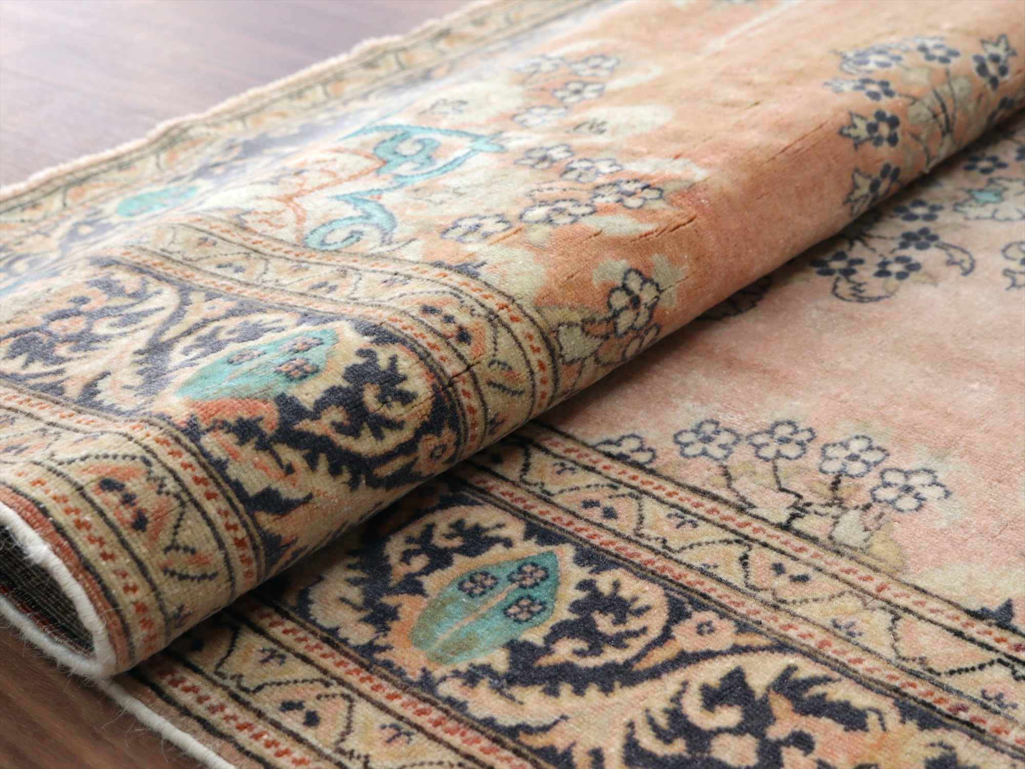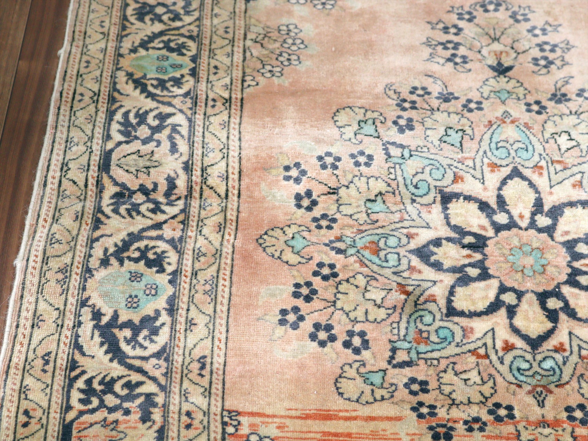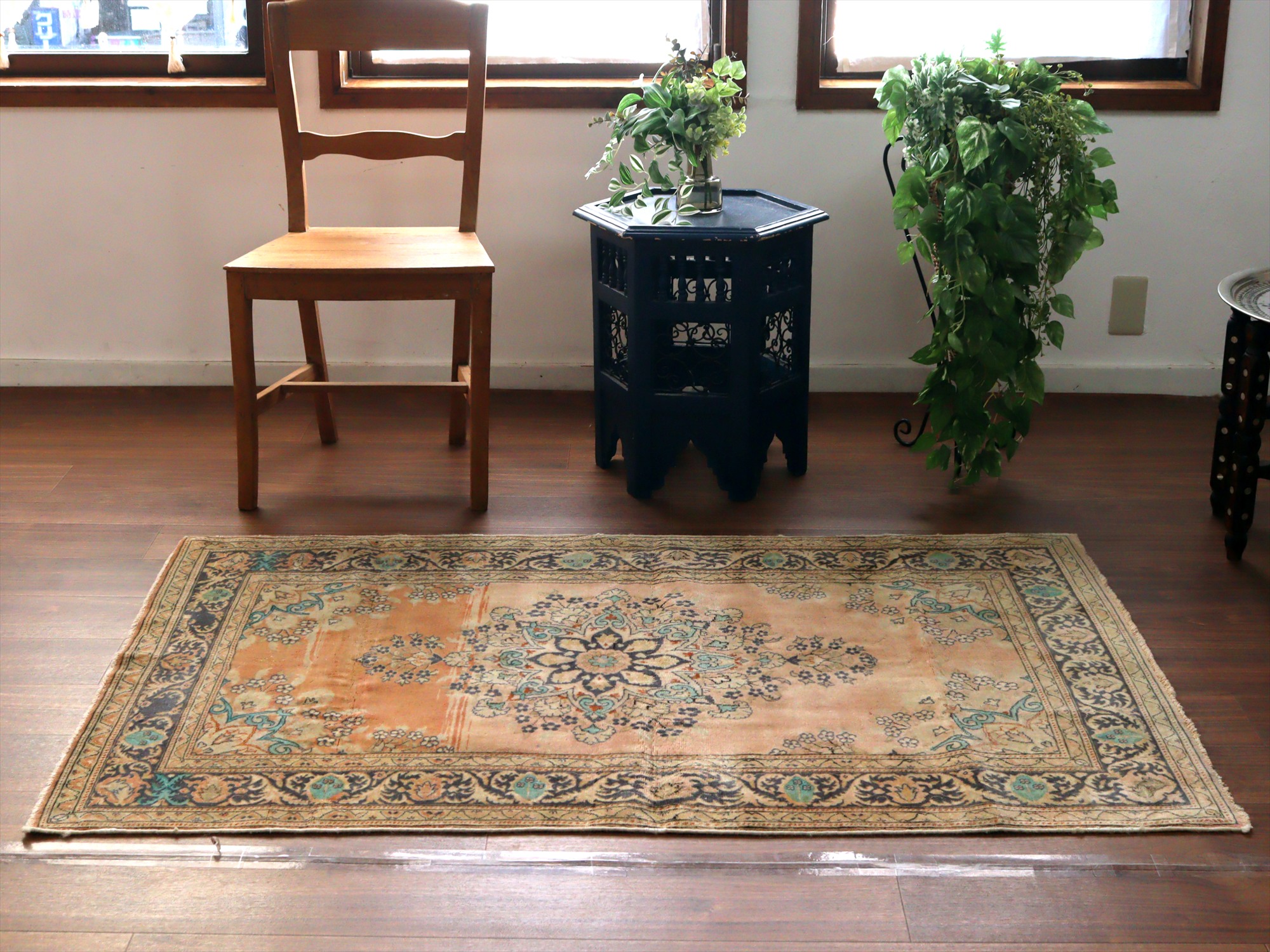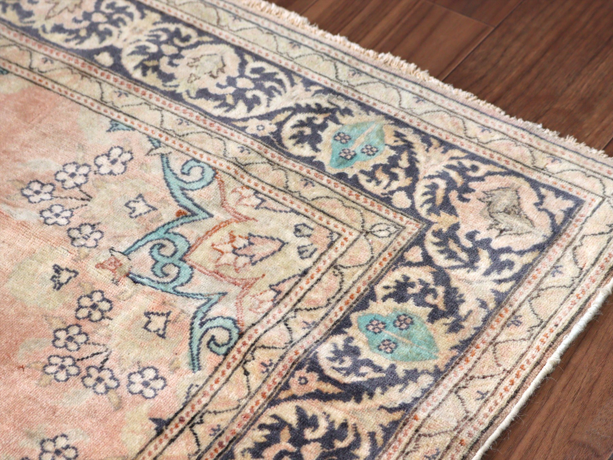 オールドカーペット パステルカラー148×95cm 花形のメダリオン ヴィンテージラグ
