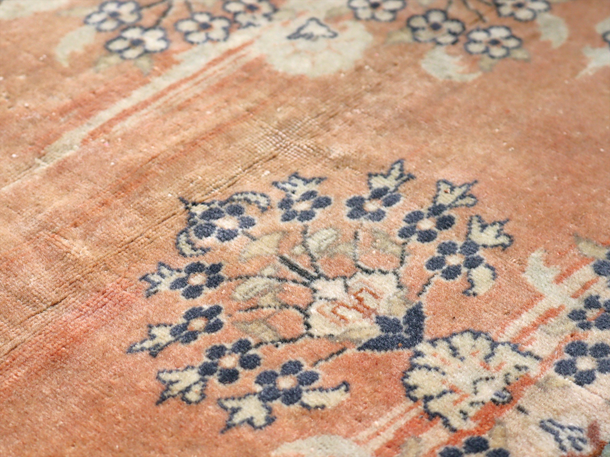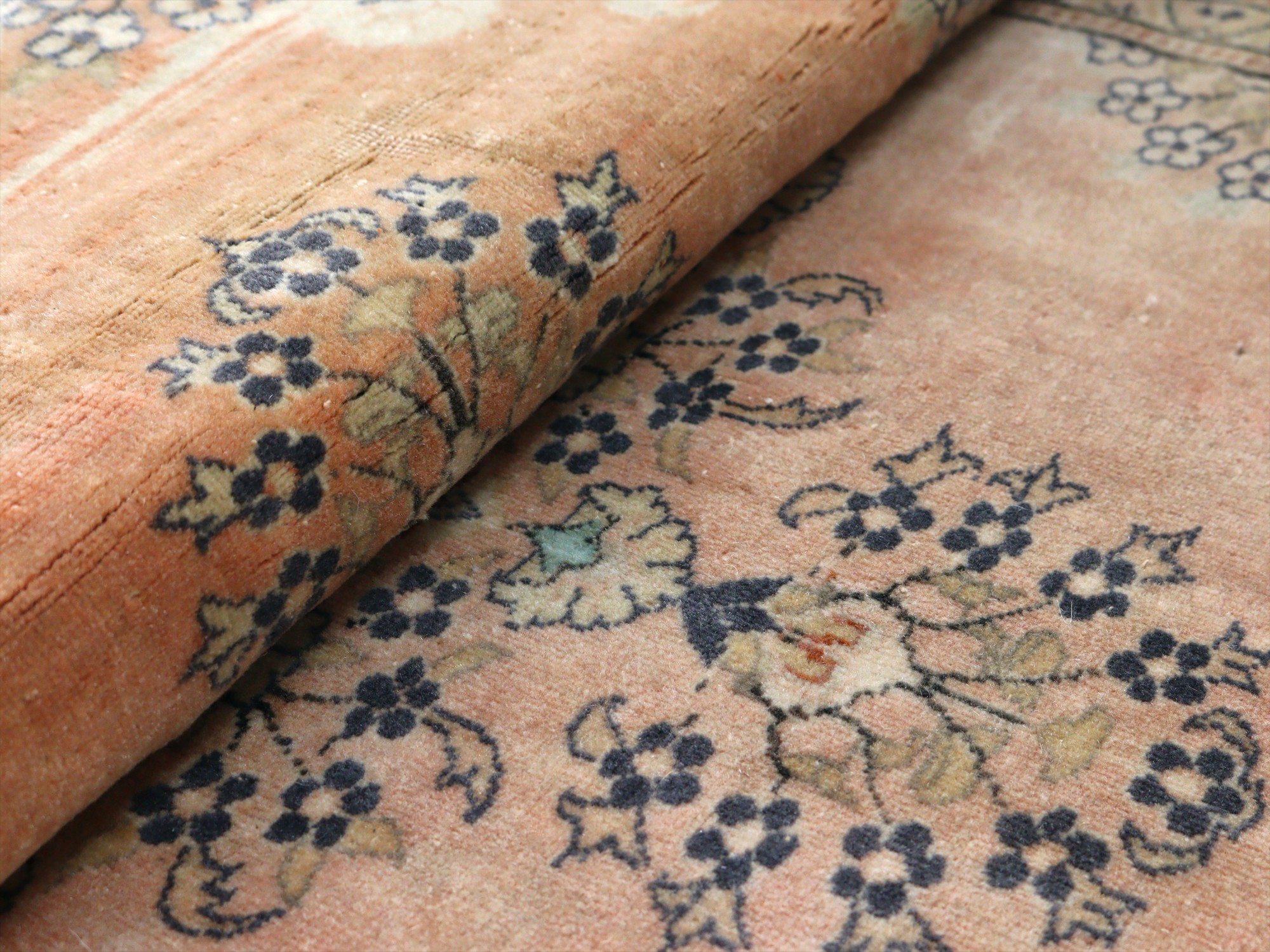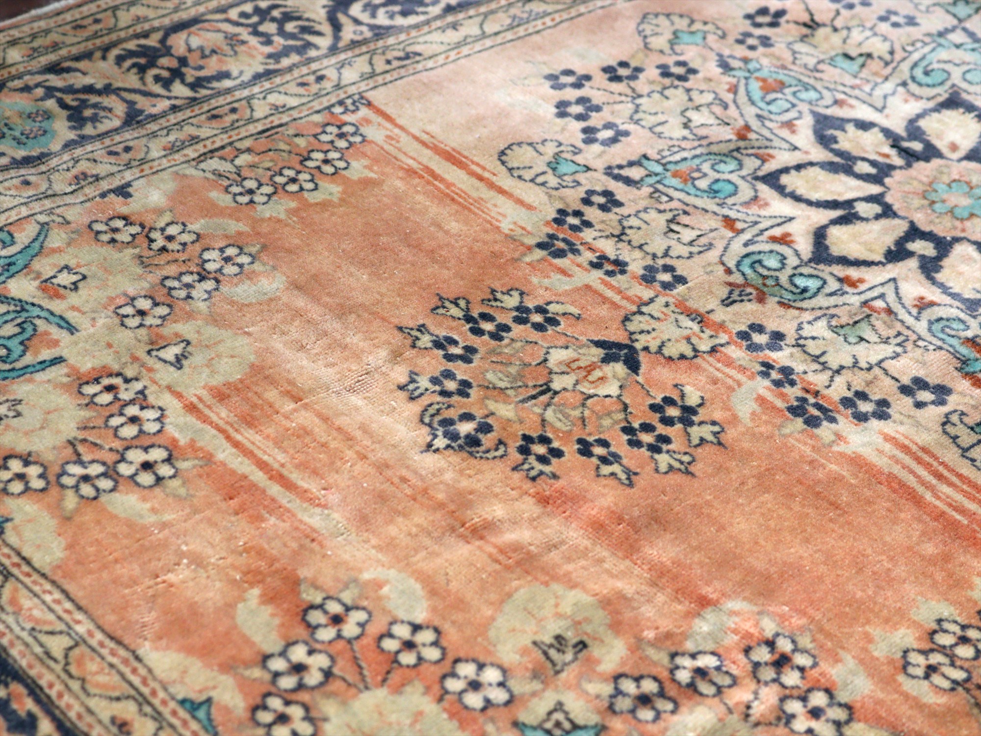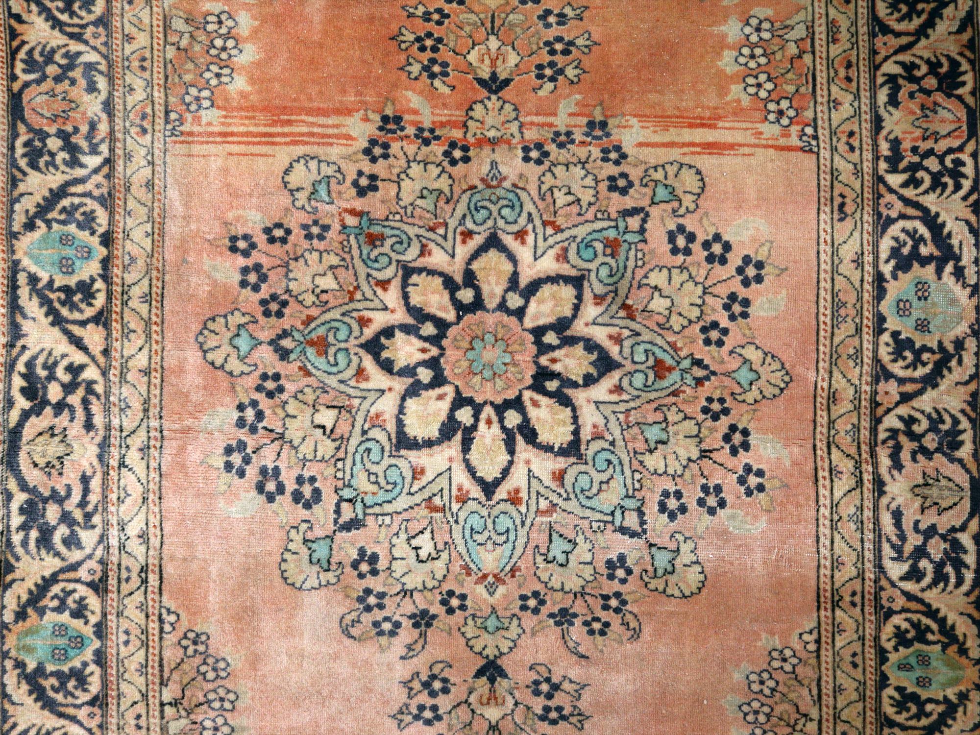 オールドカーペット パステルカラー148×95cm 花形のメダリオン ヴィンテージラグ