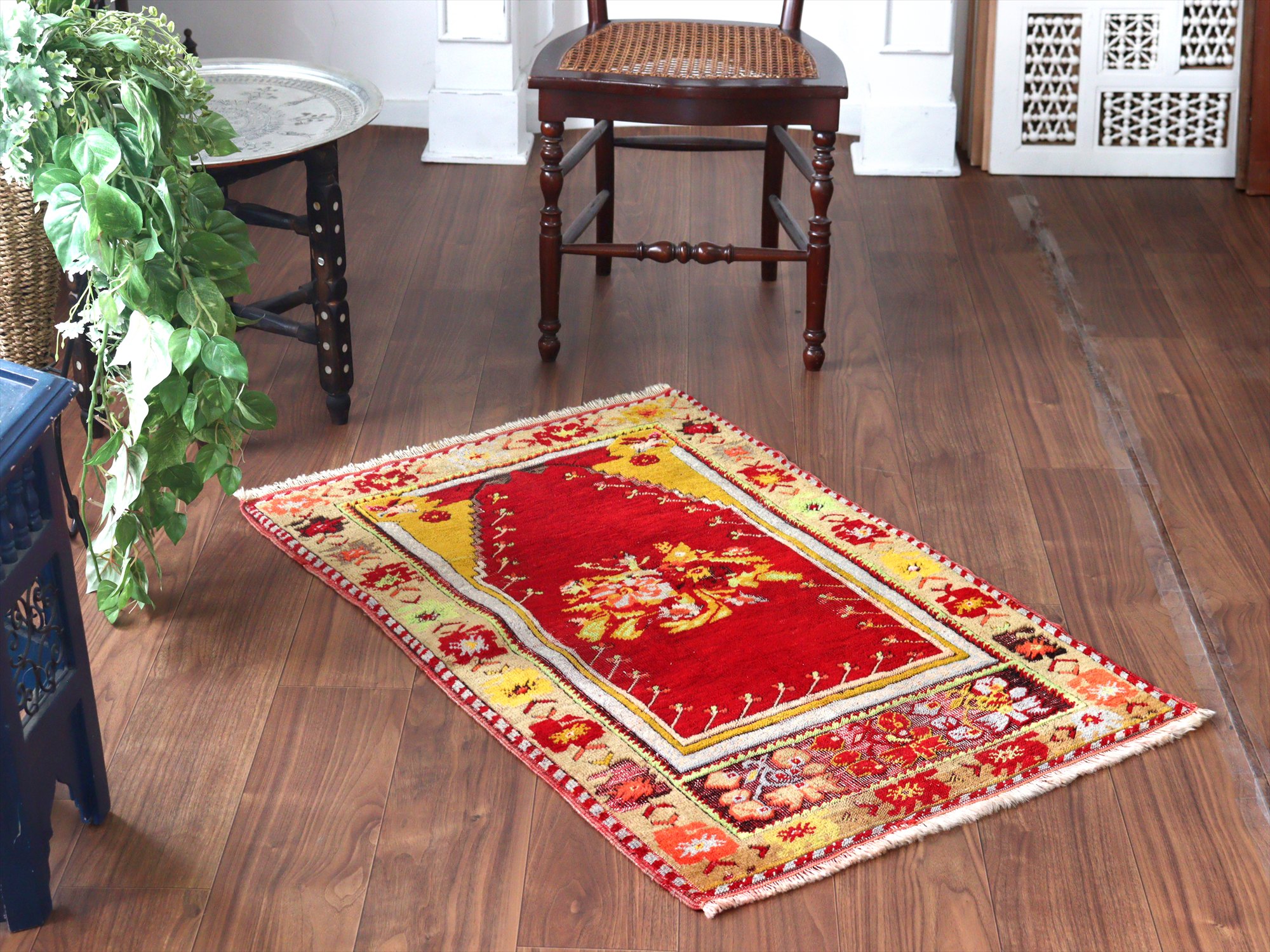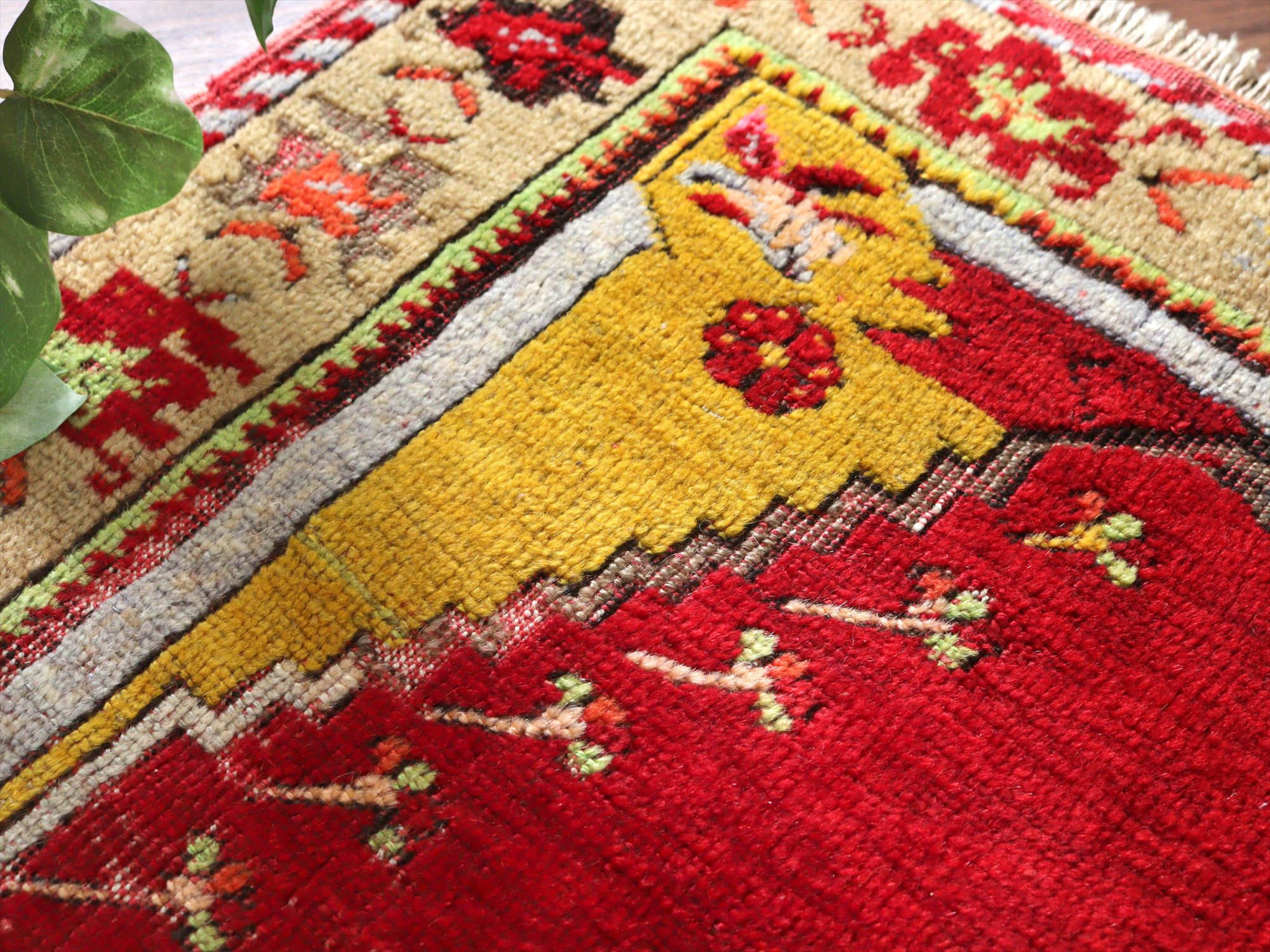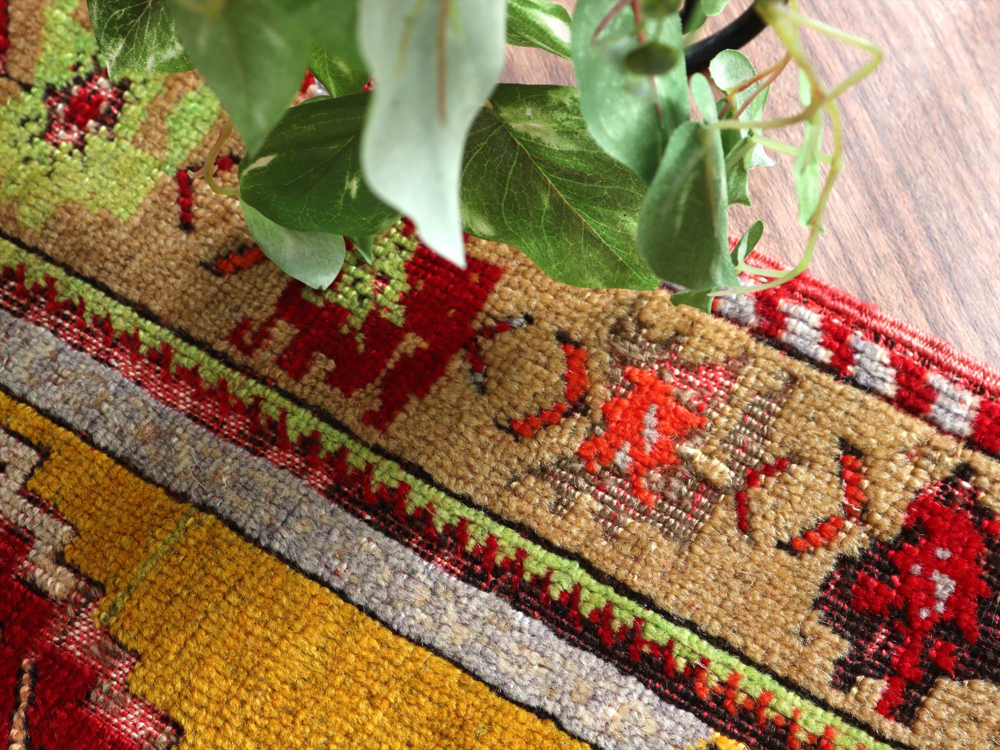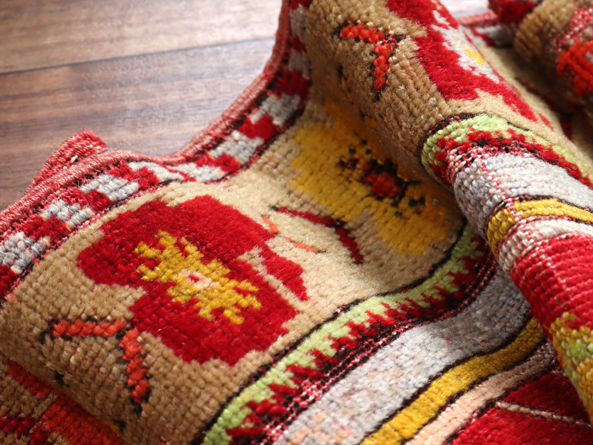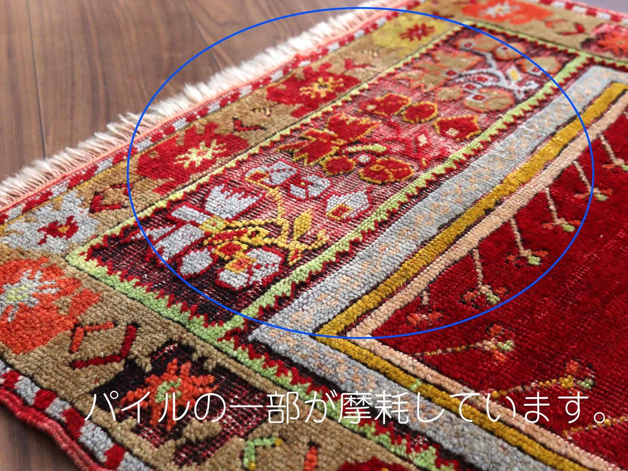 使用していく上で問題はありませんが、こげ茶もしくはボルドーの毛糸を使っていたと思われる箇所が摩耗しています。それ以外の部分は鮮やかな色を残し、ダメージ等も見受けられません。