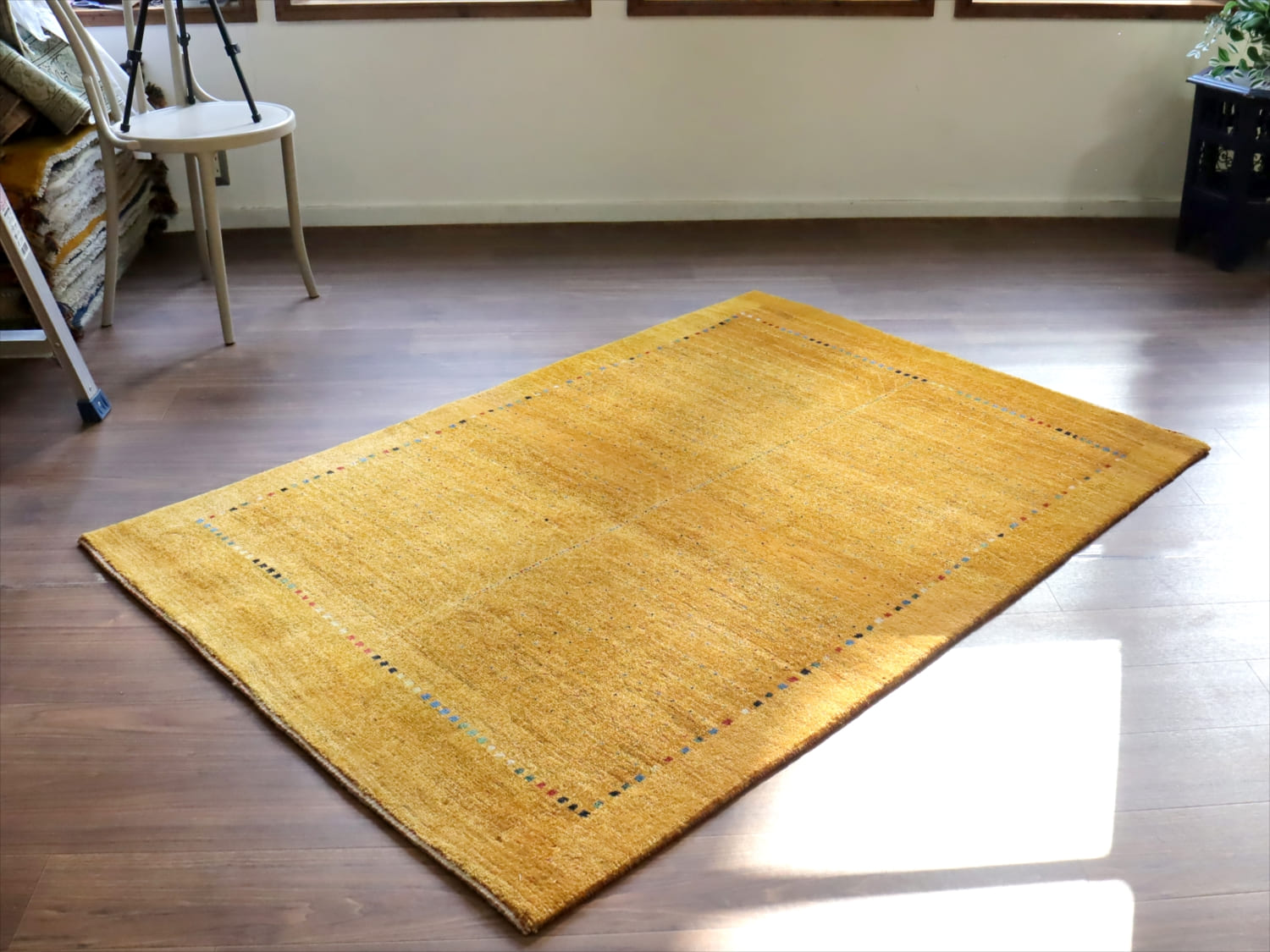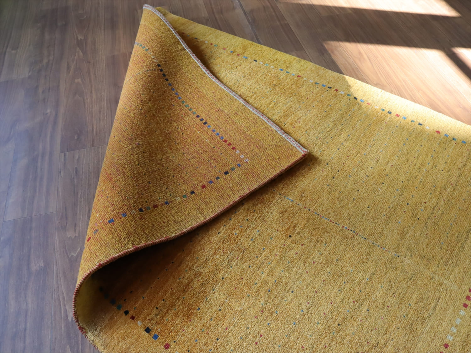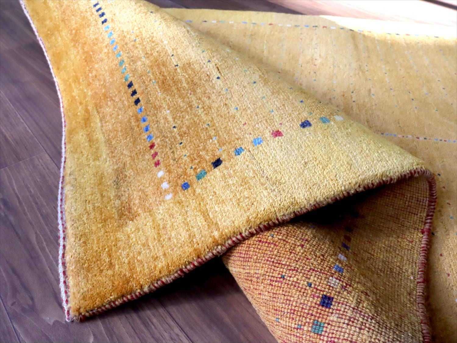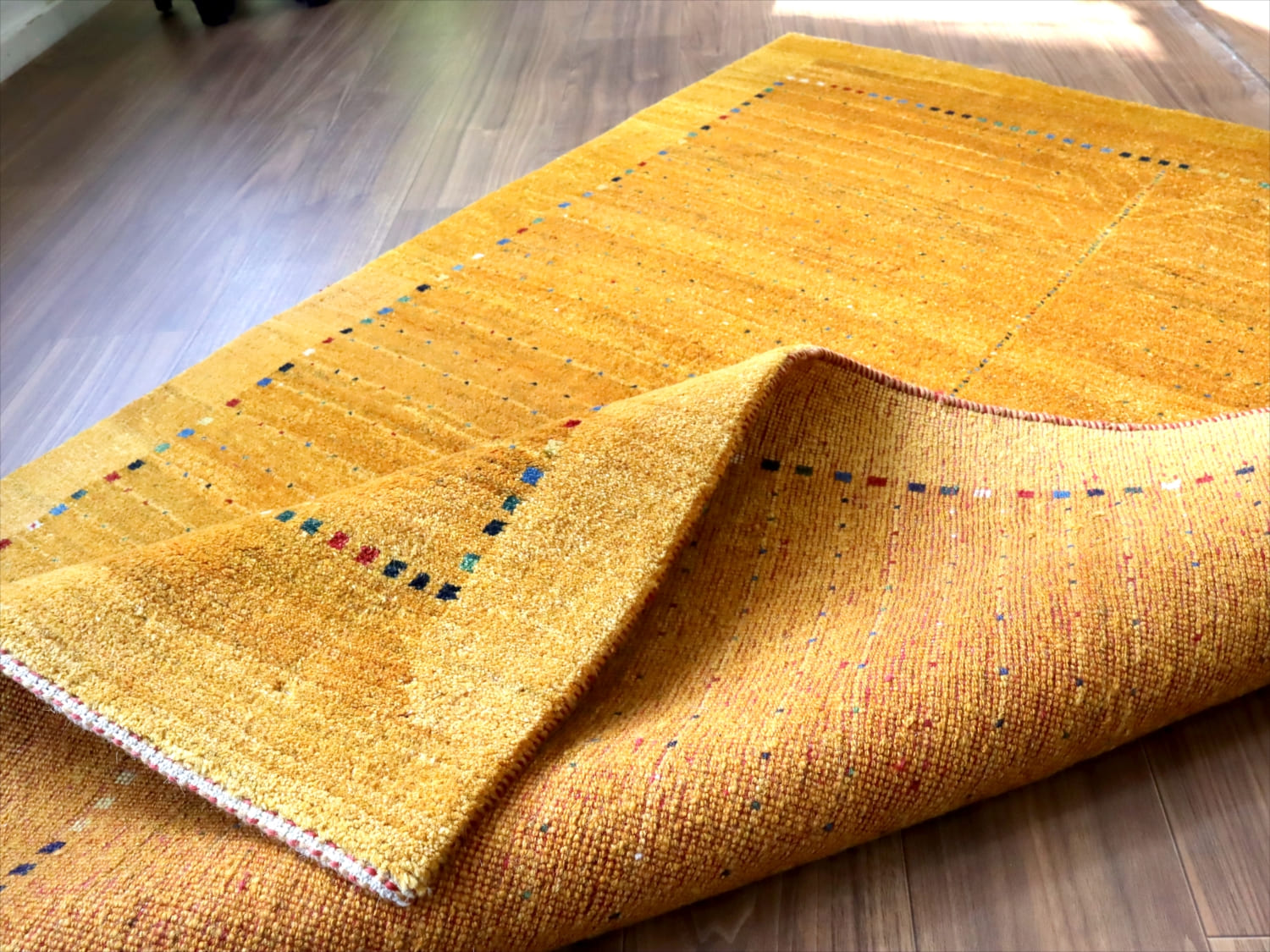 パイル(毛足)はすっきり刈り込んであり、ギャベ全体の厚みは1.3-1.4cm程度。