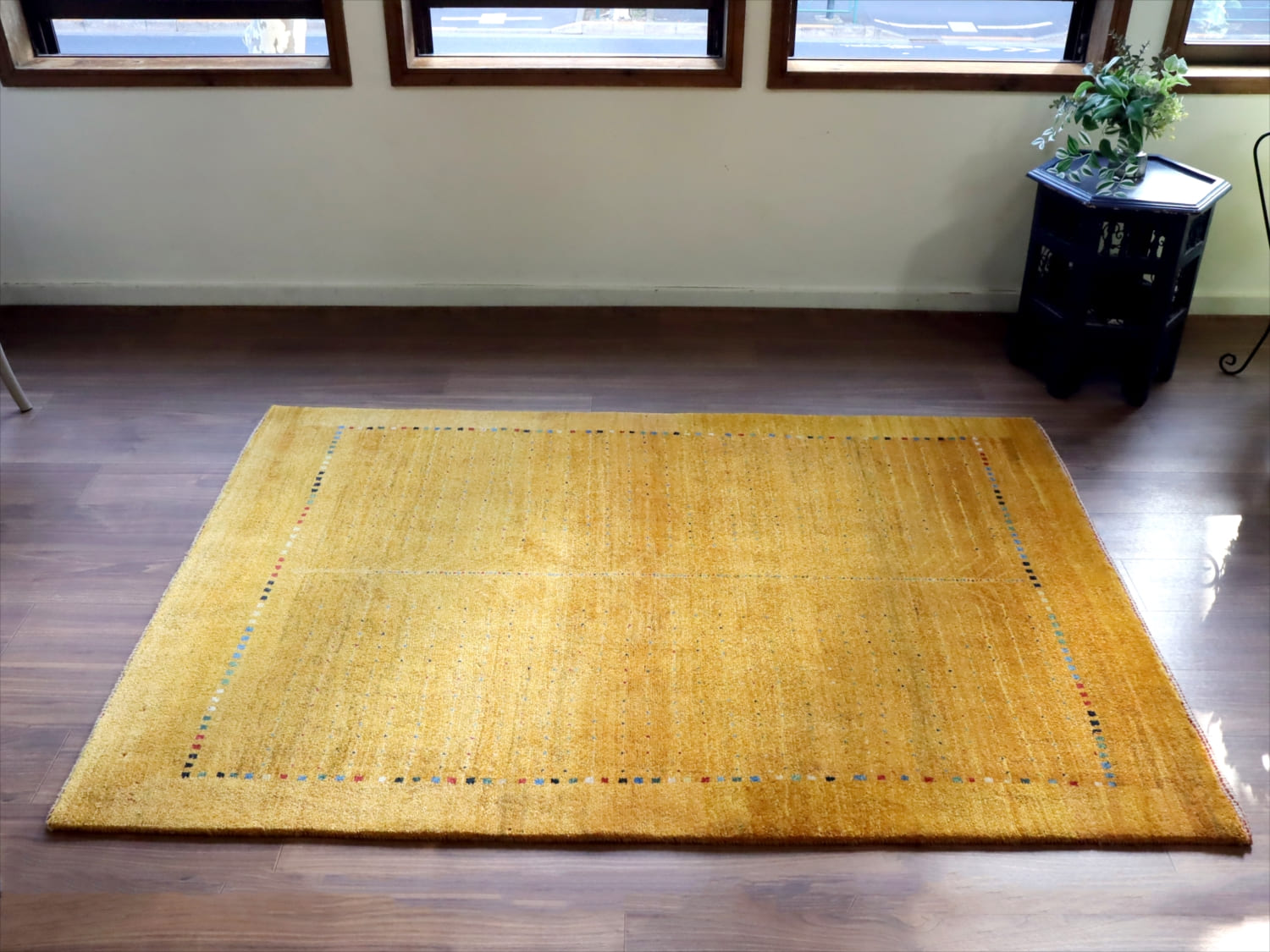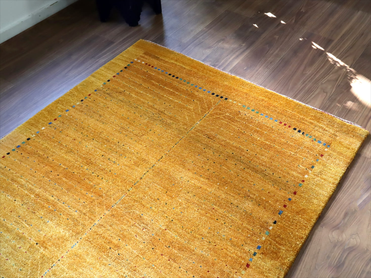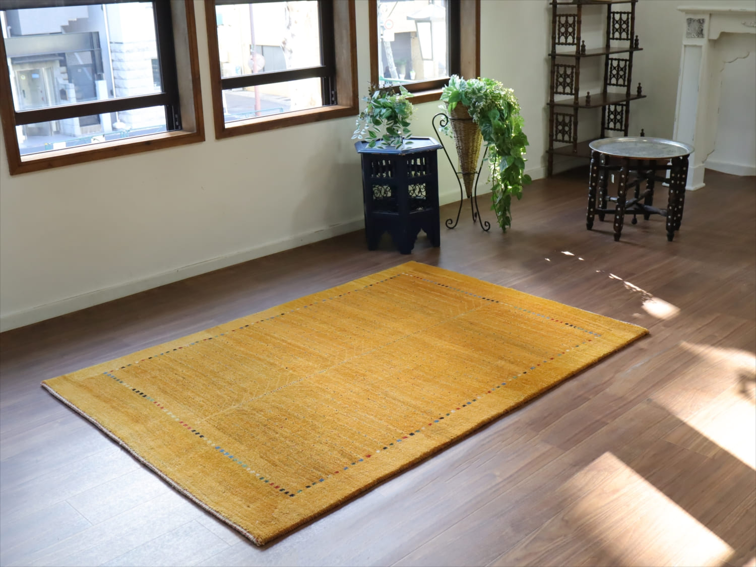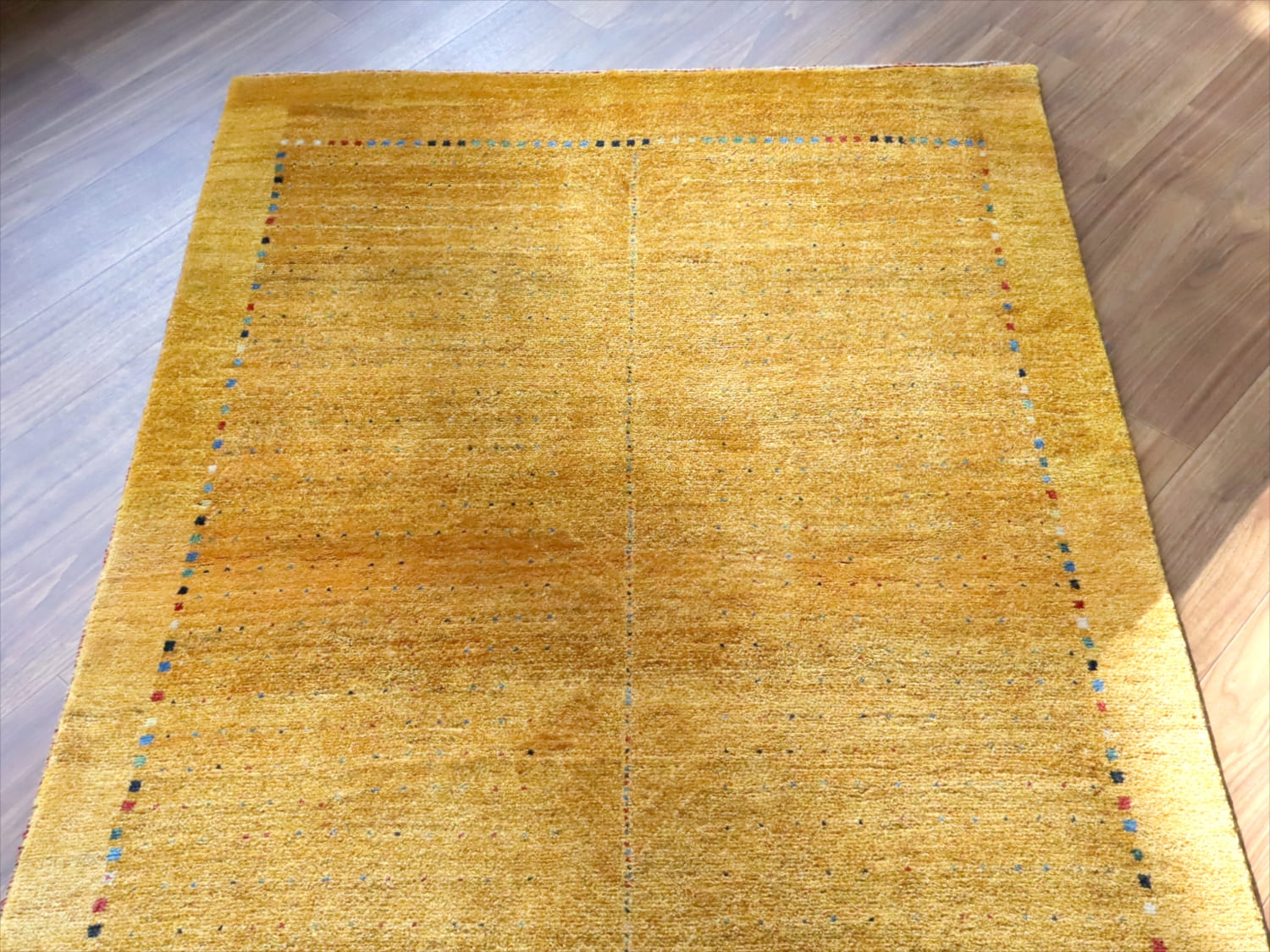 パイル(毛足)はすっきり刈り込んであり、ギャベ全体の厚みは1.3-1.4cm程度。