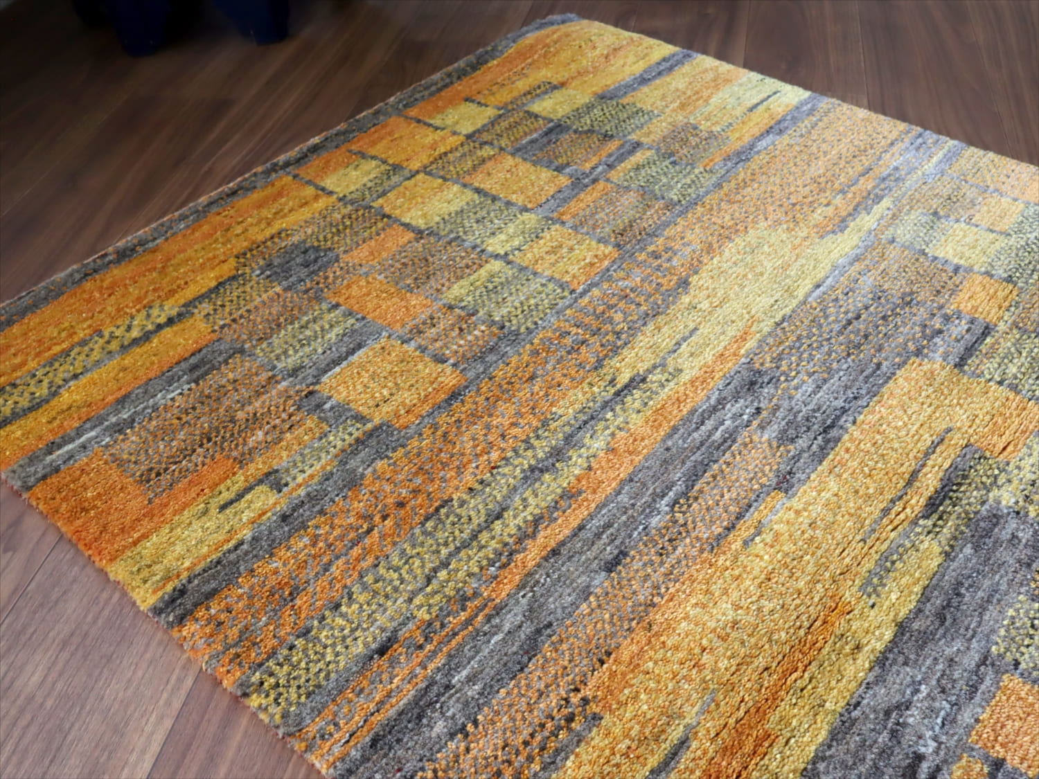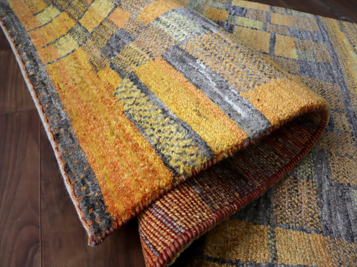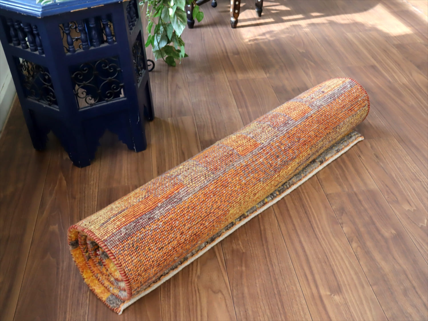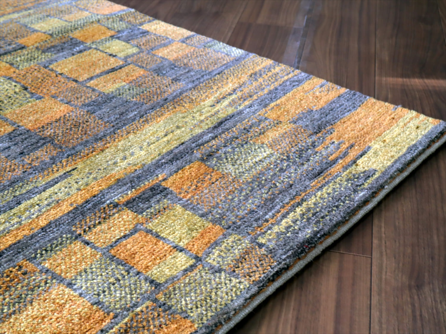 パイルを含めたギャッベの厚みは、1.6cm程度で、分厚いという感じではありませんが、ふっくらとしています。ぎゅっと織り目が詰まって、弾力があります。