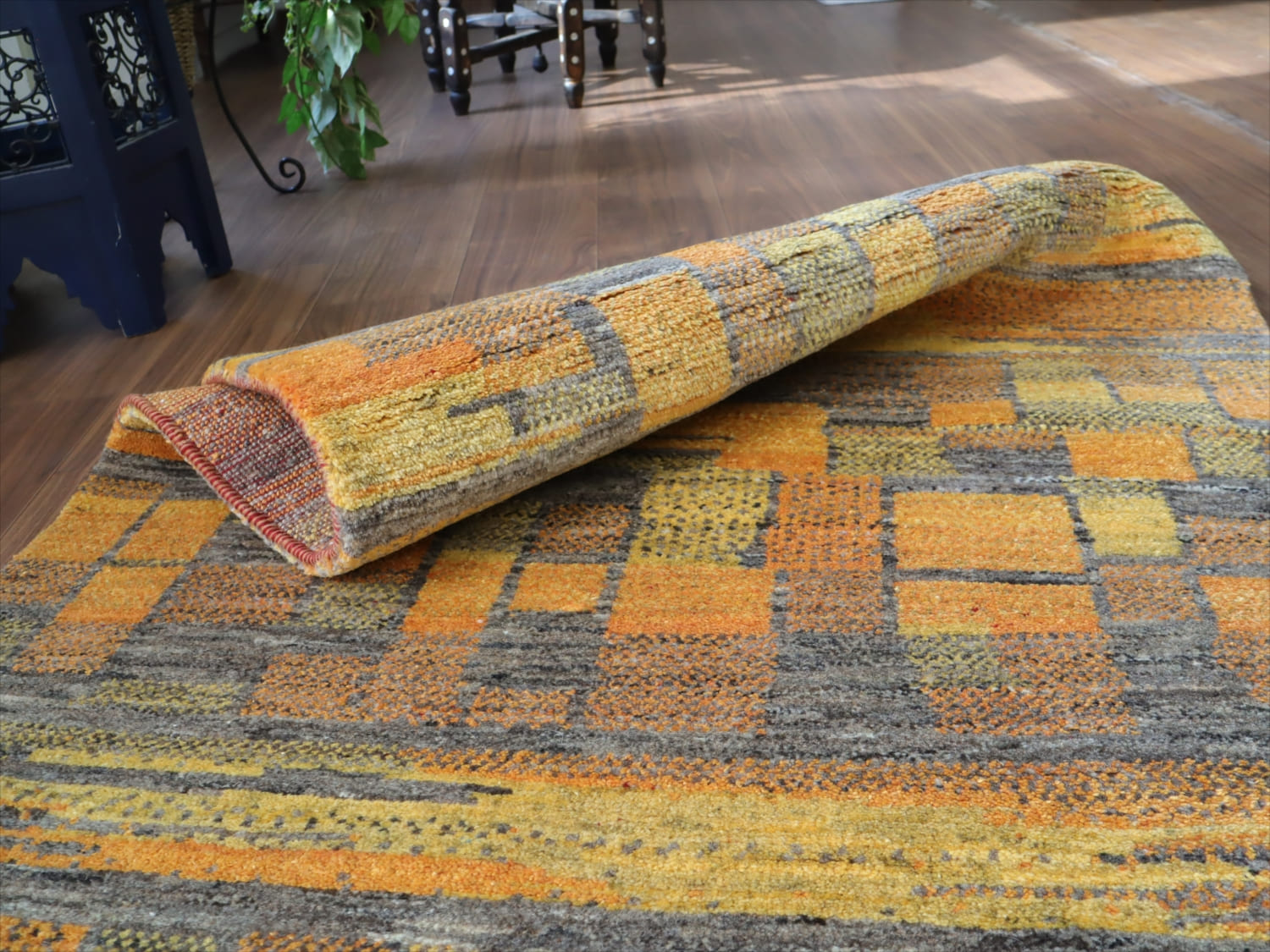 ・手紡ぎ、草木染(または無染色)、ウール100%、手織りのギャッベ。