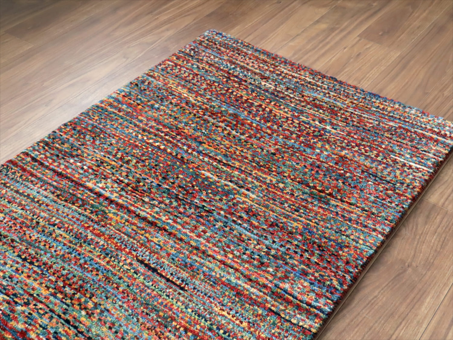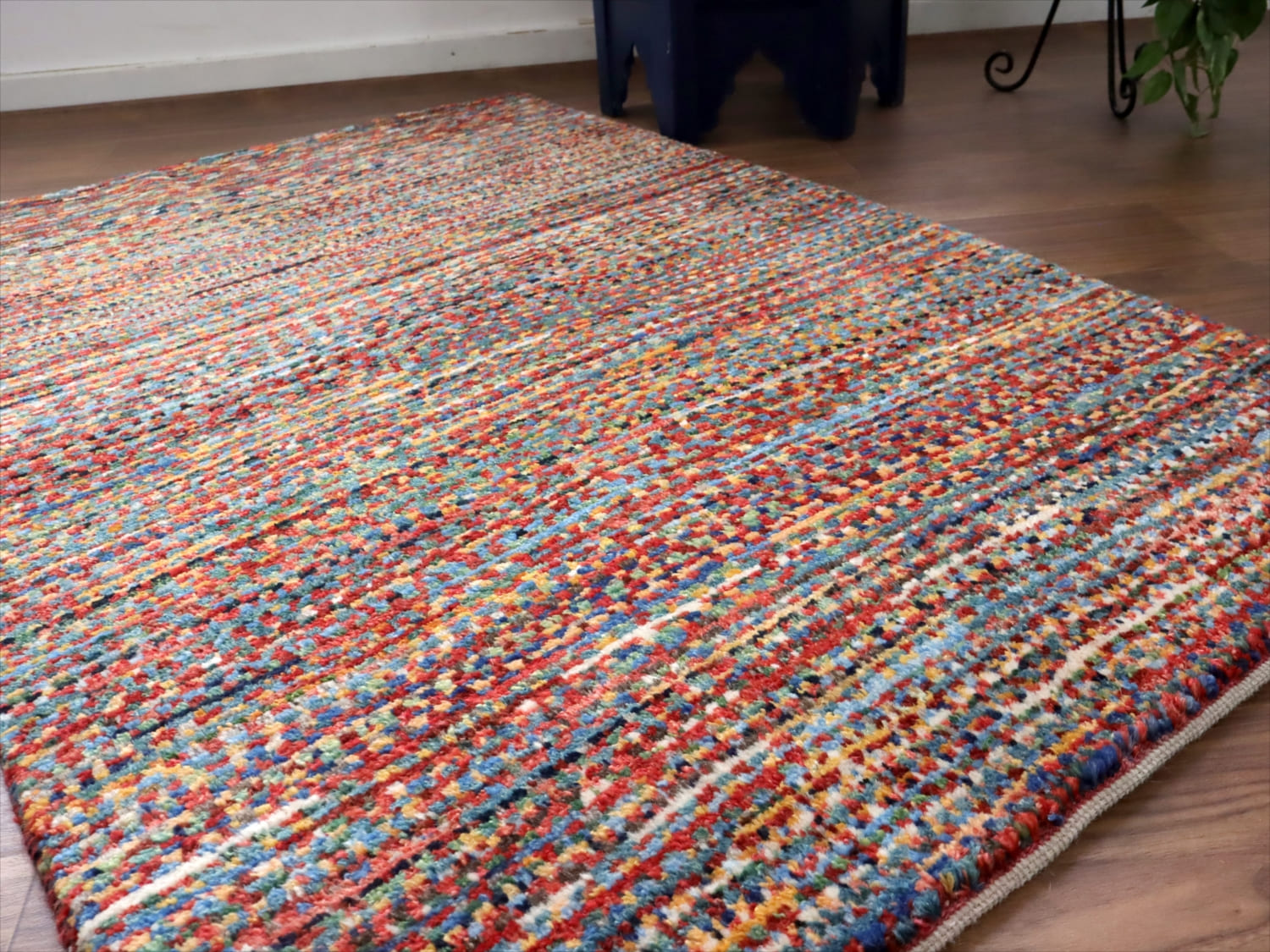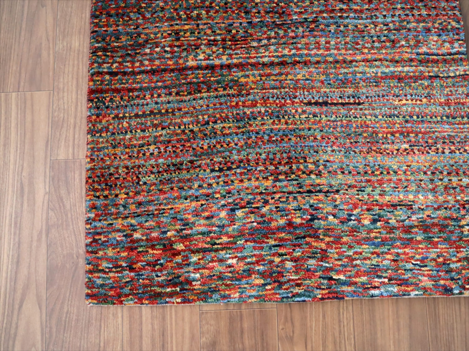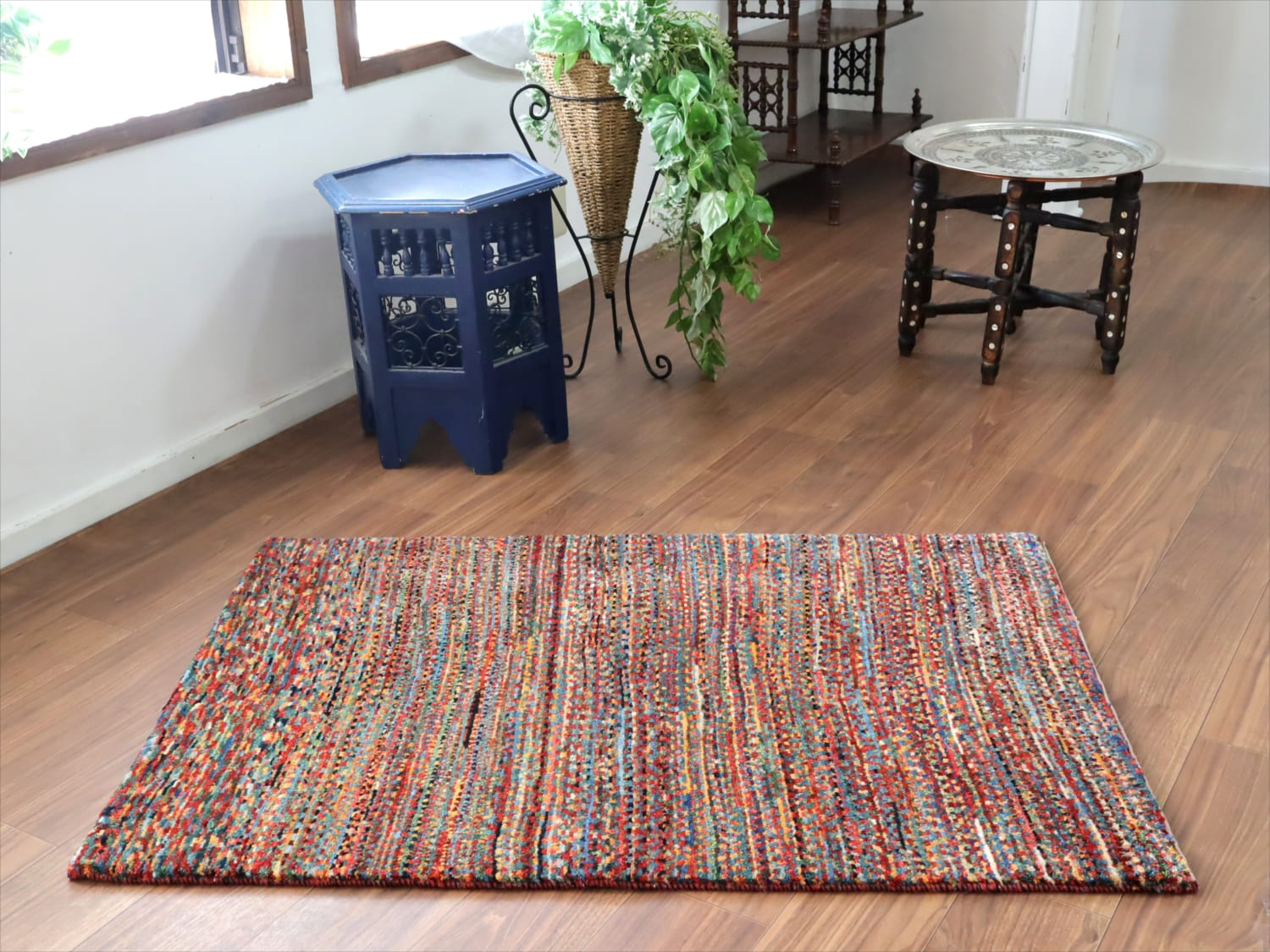 パイルを含めたギャッベの厚みは、1.6cm程度で、分厚いという感じではありませんが、ふっくらとしています。ぎゅっと織り目が詰まって、弾力があります。
