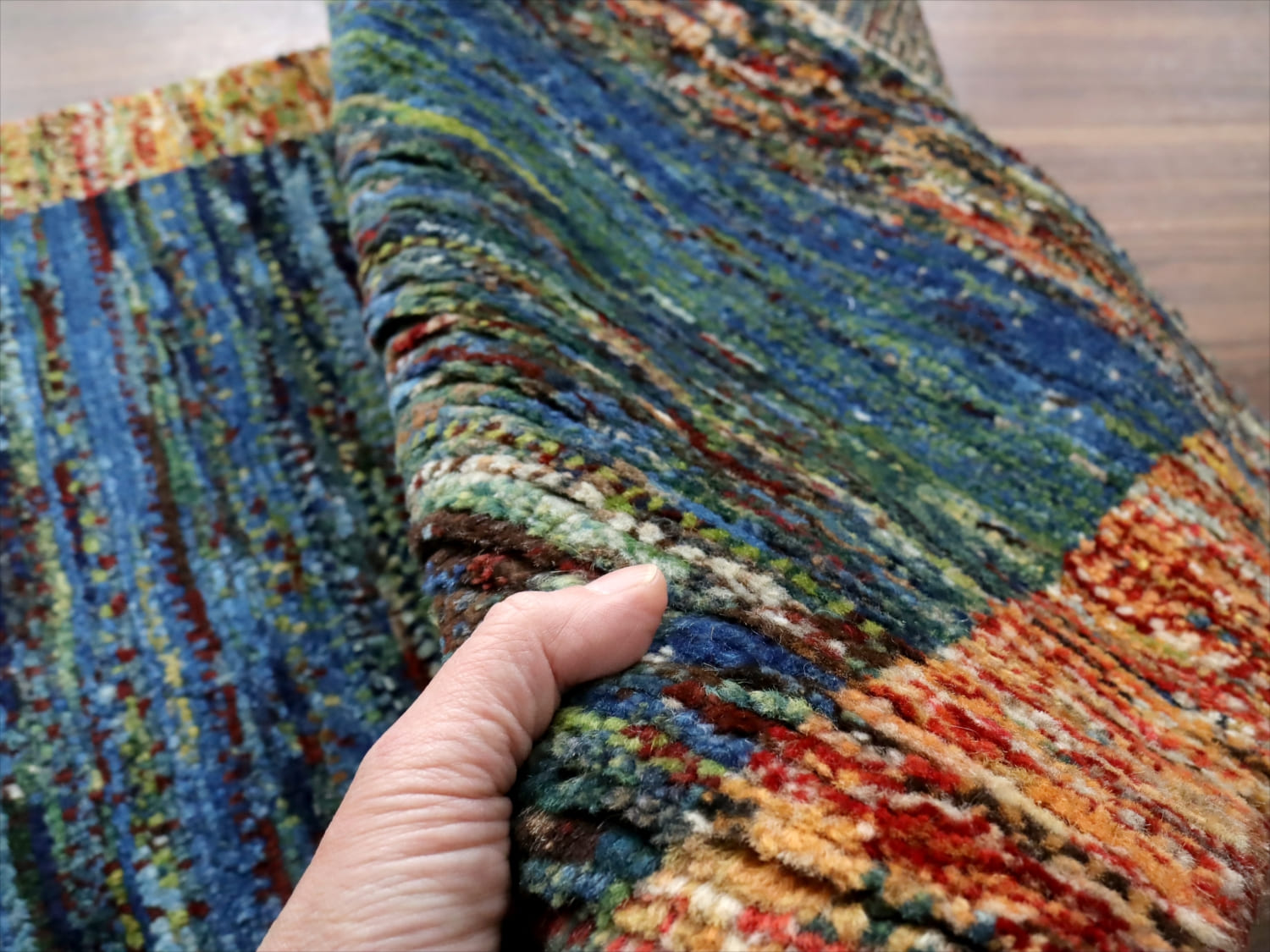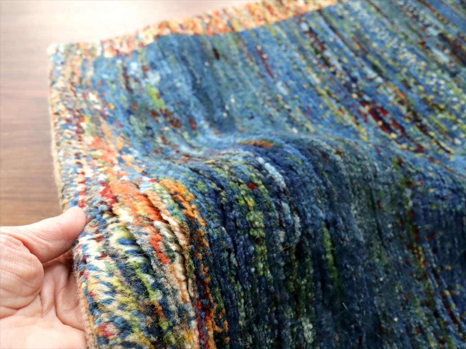 ・手紡ぎ、草木染(または無染色)、ウール100%、手織りのギャッベ。