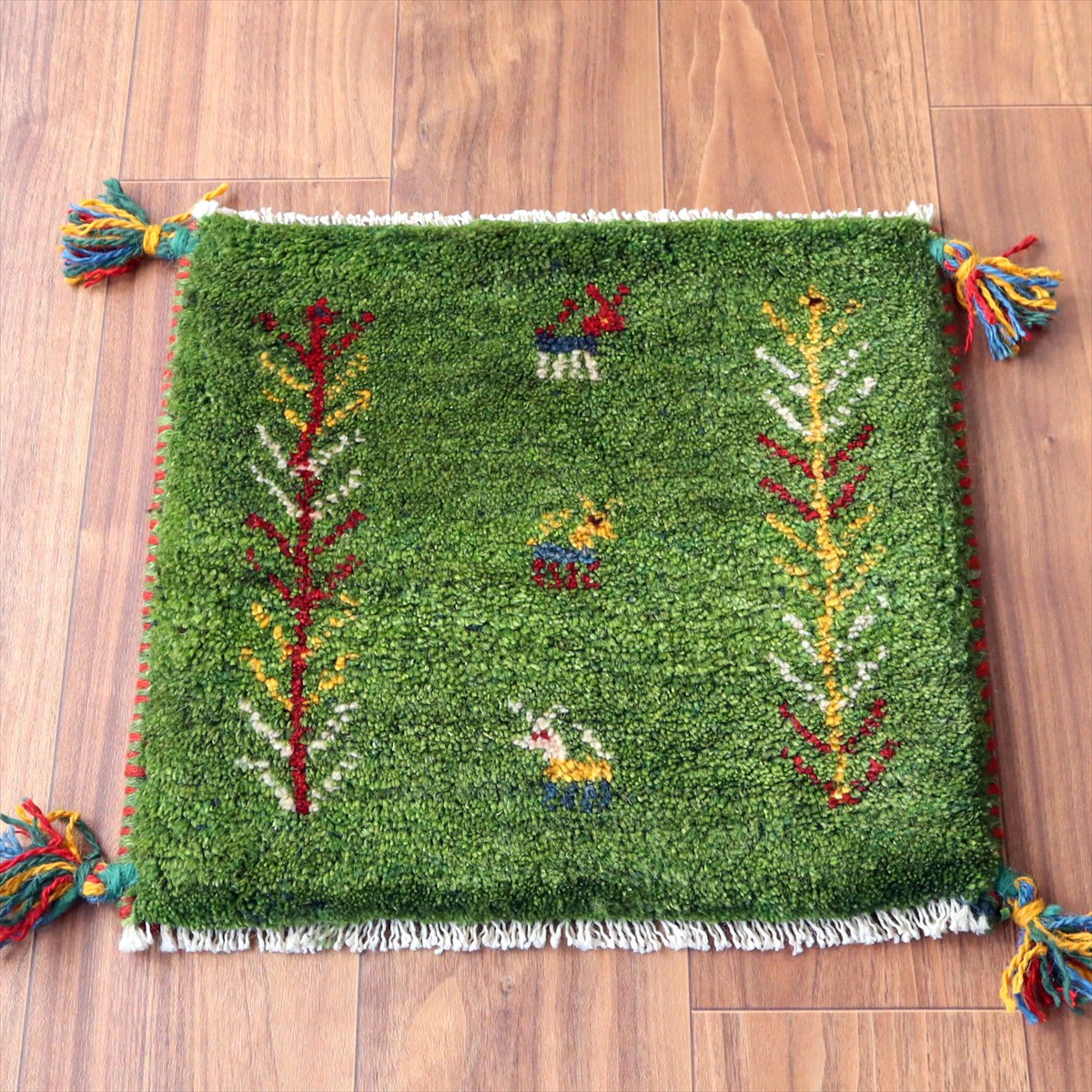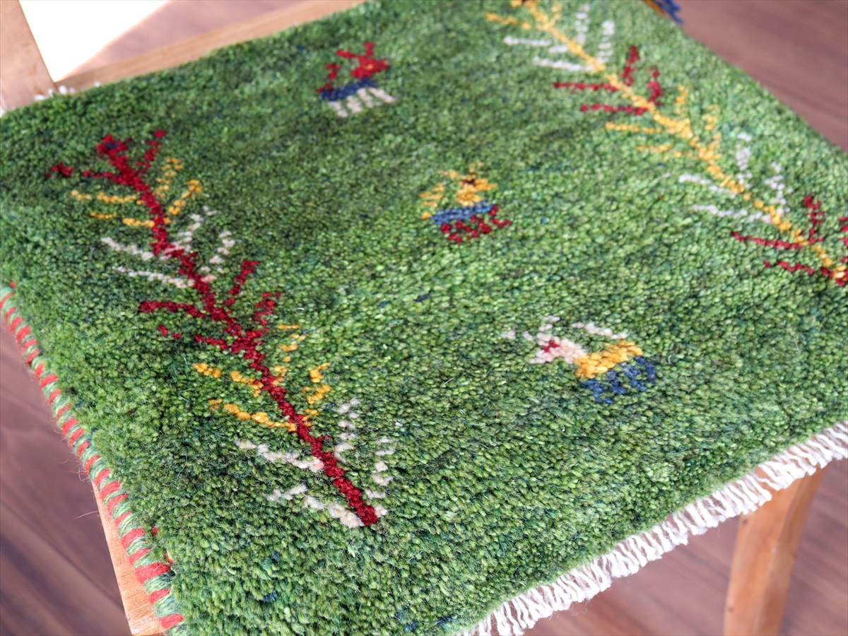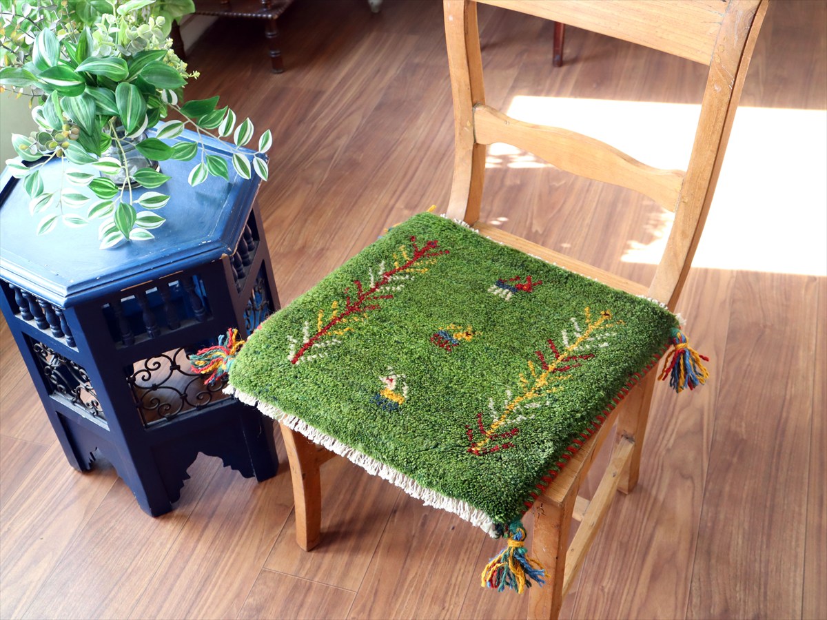 何枚も集めたくなる、40cm角の座布団サイズギャベ。四隅に大きなポンポンのついた、伝統的なスタイルでおられています。フローリングに並べて座布団がわりに使ったり、ベンチやダイニングチェアの座面など、使い方はいろいろ。壁にタペストリーのように飾るのもおすすめです。