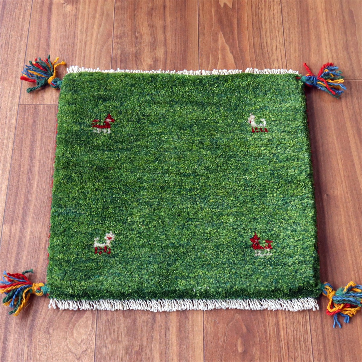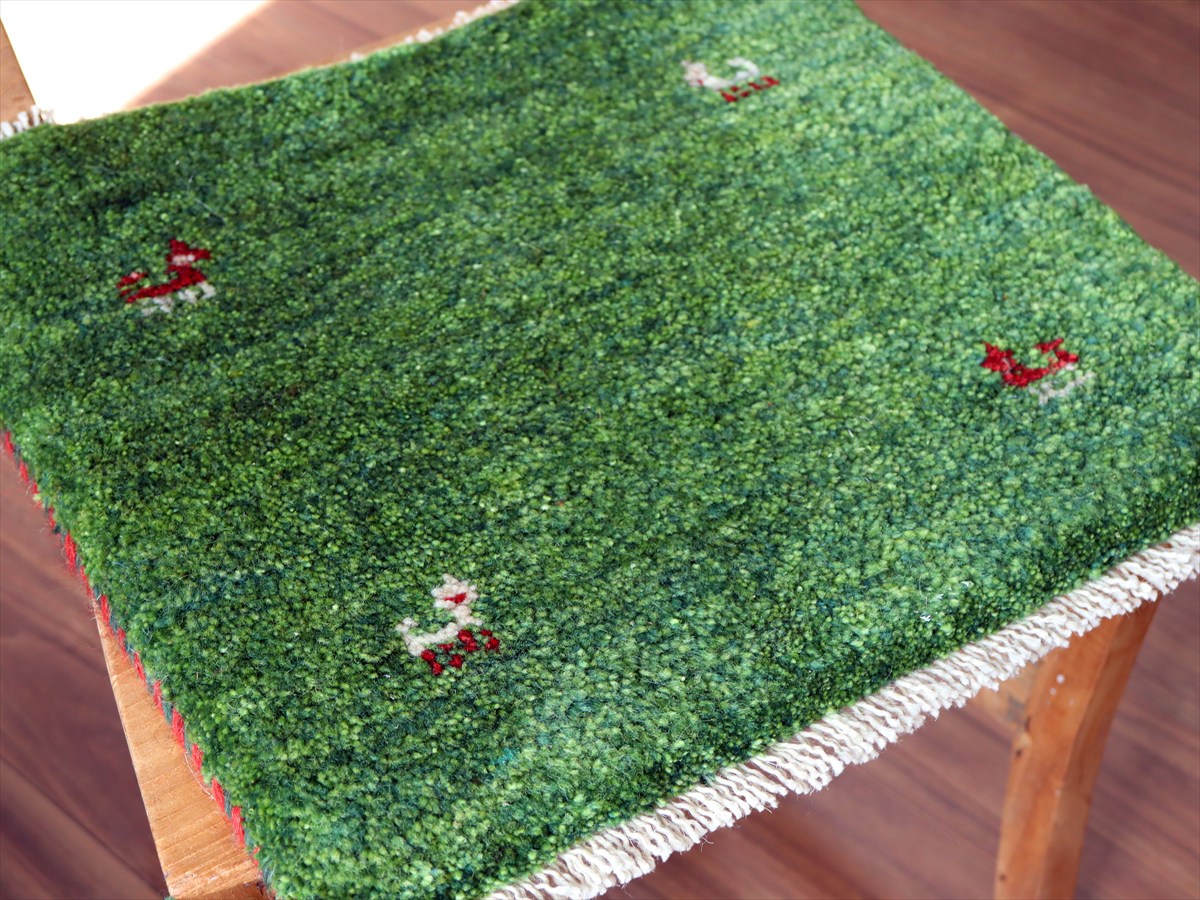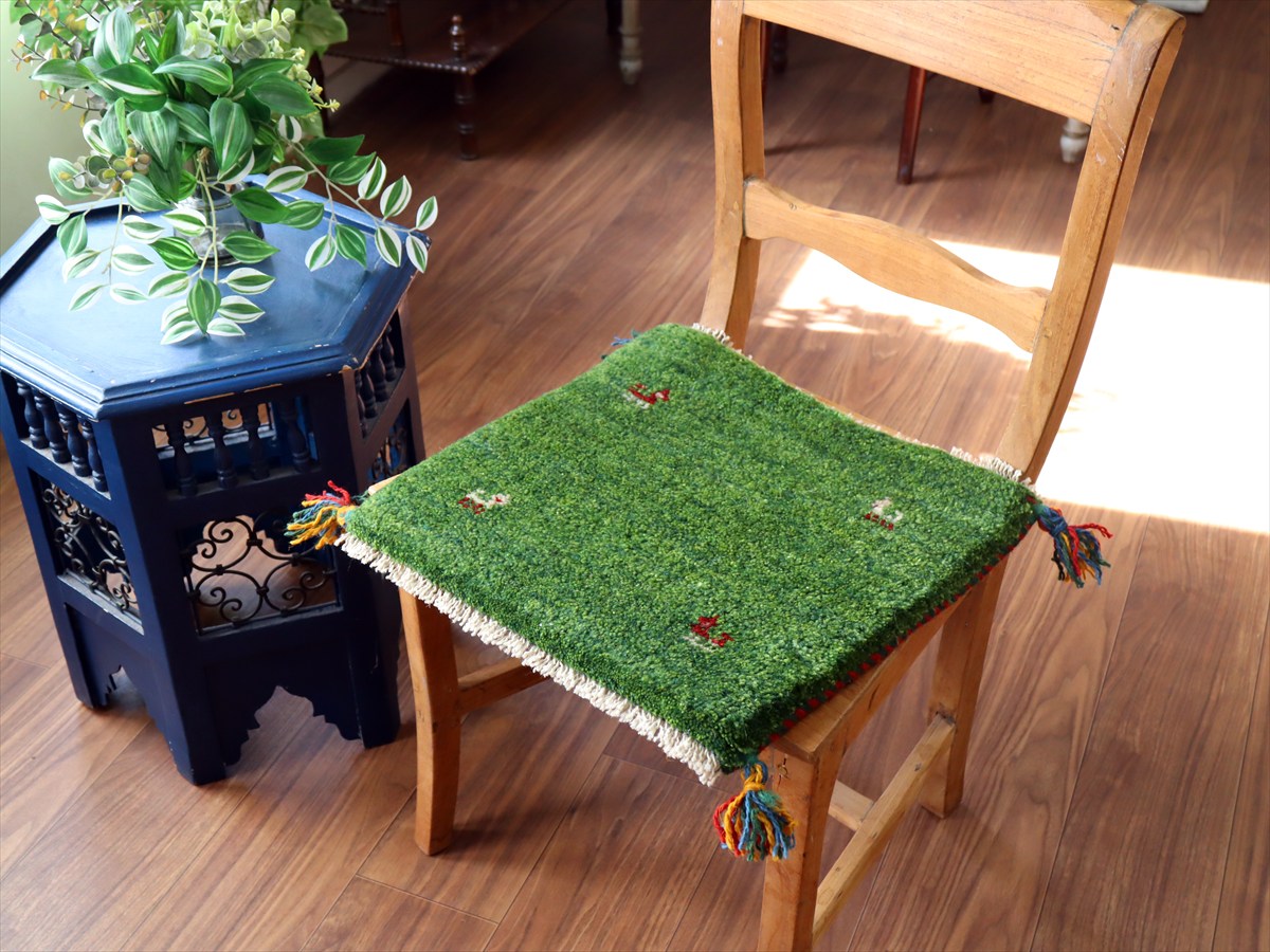何枚も集めたくなる、40cm角の座布団サイズギャベ。四隅に大きなポンポンのついた、伝統的なスタイルでおられています。フローリングに並べて座布団がわりに使ったり、ベンチやダイニングチェアの座面など、使い方はいろいろ。壁にタペストリーのように飾るのもおすすめです。