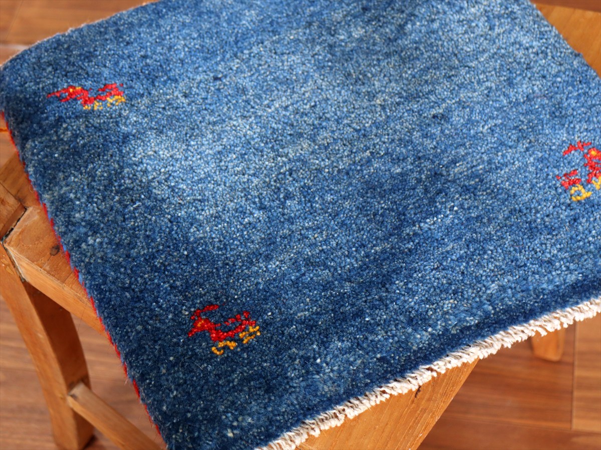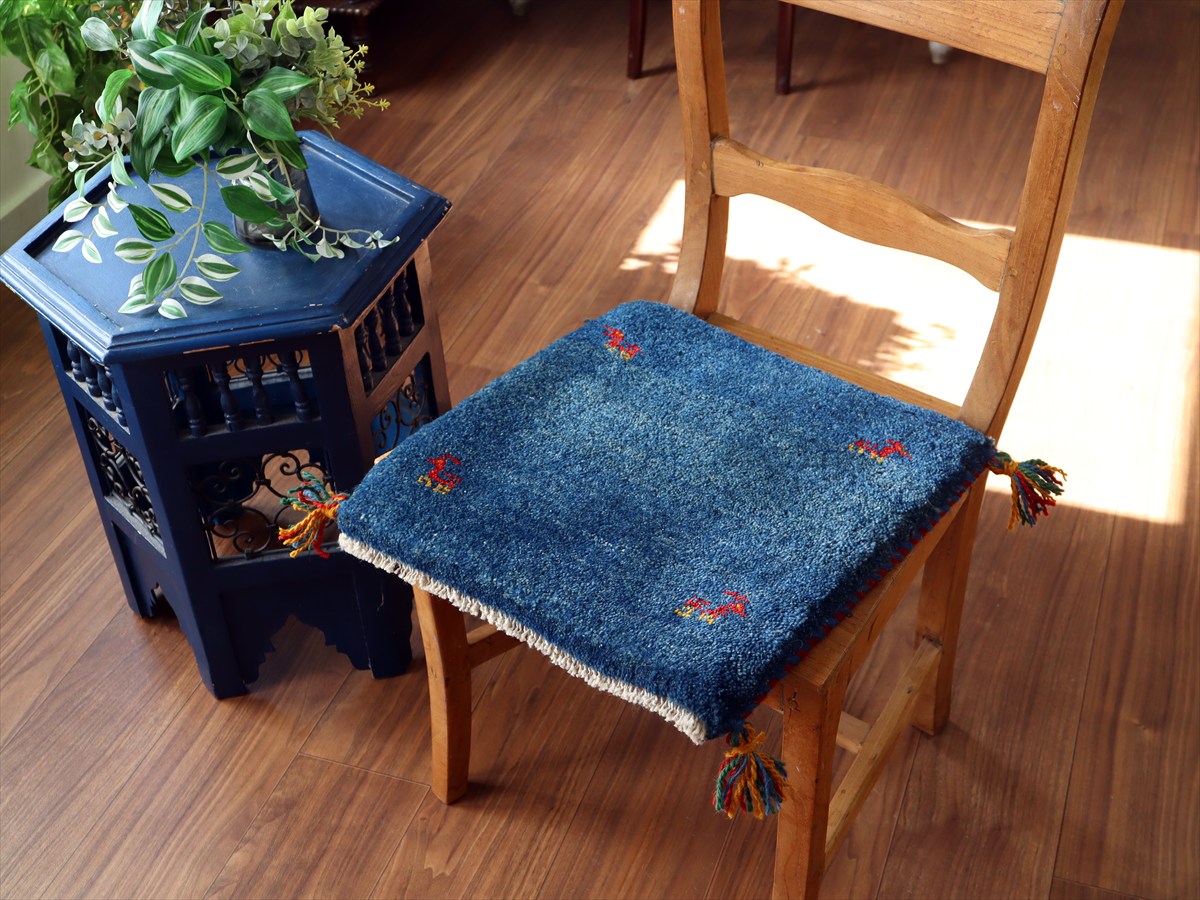 何枚も集めたくなる、40cm角の座布団サイズギャベ。四隅に大きなポンポンのついた、伝統的なスタイルでおられています。フローリングに並べて座布団がわりに使ったり、ベンチやダイニングチェアの座面など、使い方はいろいろ。壁にタペストリーのように飾るのもおすすめです。