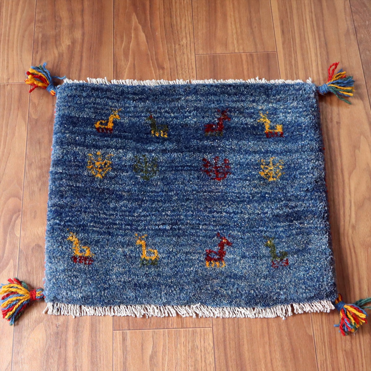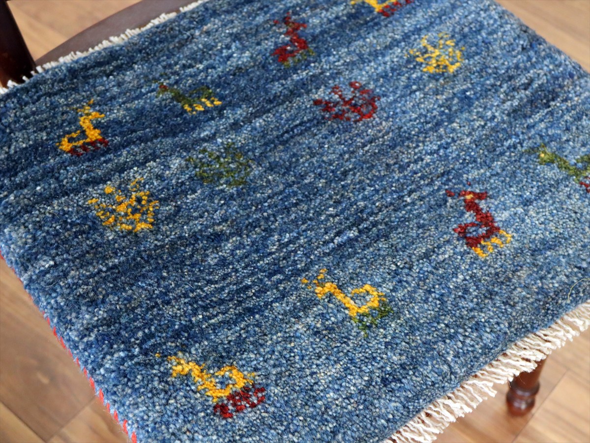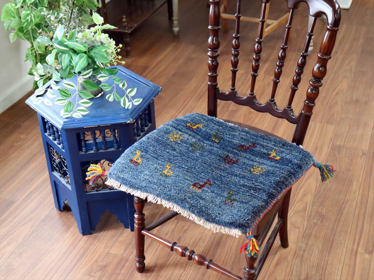 何枚も集めたくなる、40cm角の座布団サイズギャベ。四隅に大きなポンポンのついた、伝統的なスタイルでおられています。フローリングに並べて座布団がわりに使ったり、ベンチやダイニングチェアの座面など、使い方はいろいろ。壁にタペストリーのように飾るのもおすすめです。