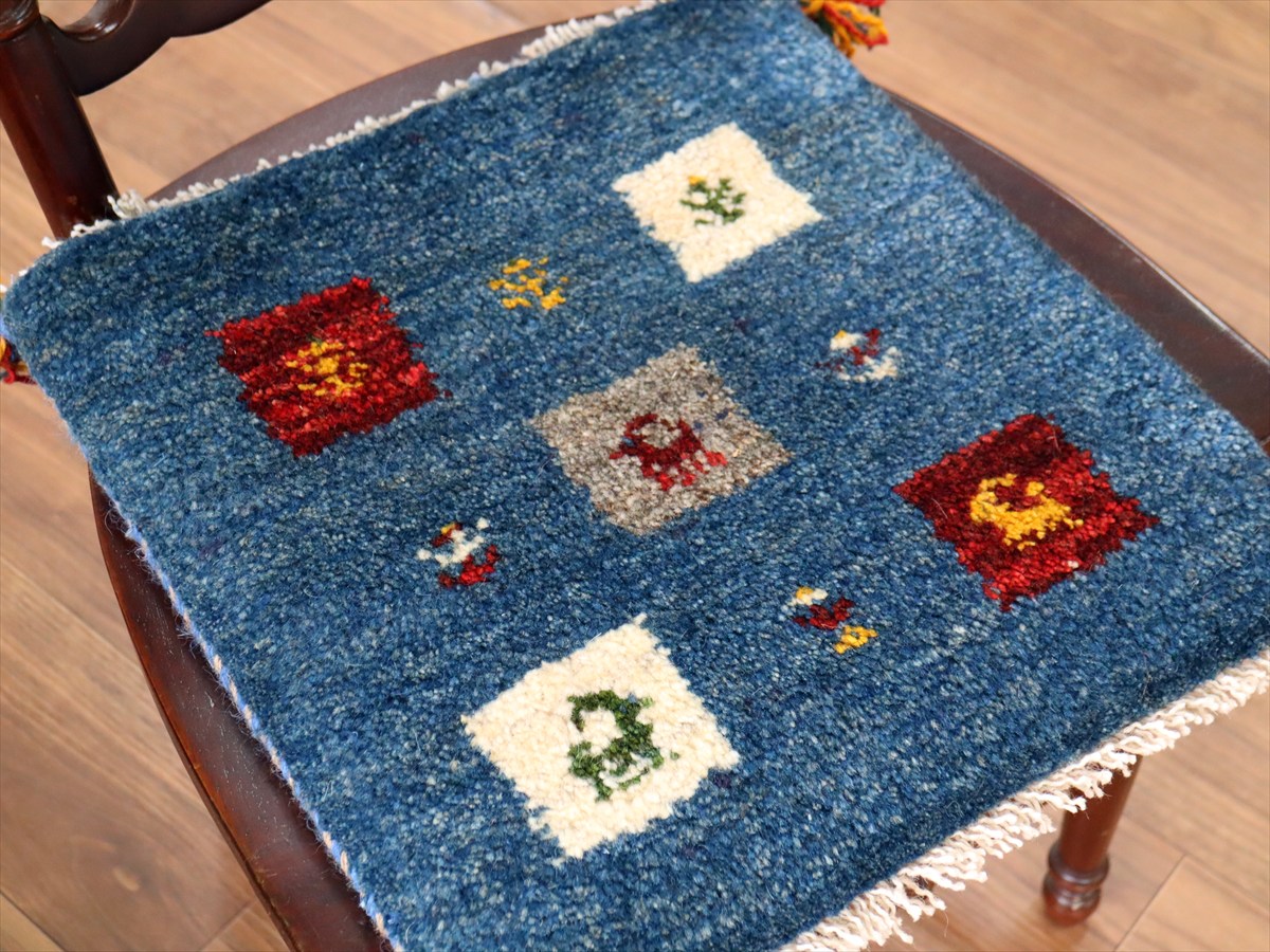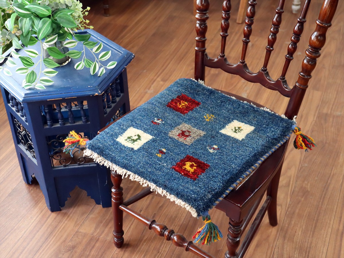 何枚も集めたくなる、40cm角の座布団サイズギャベ。四隅に大きなポンポンのついた、伝統的なスタイルでおられています。フローリングに並べて座布団がわりに使ったり、ベンチやダイニングチェアの座面など、使い方はいろいろ。壁にタペストリーのように飾るのもおすすめです。