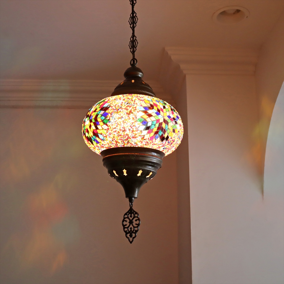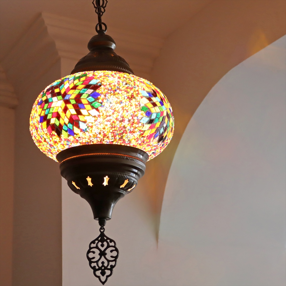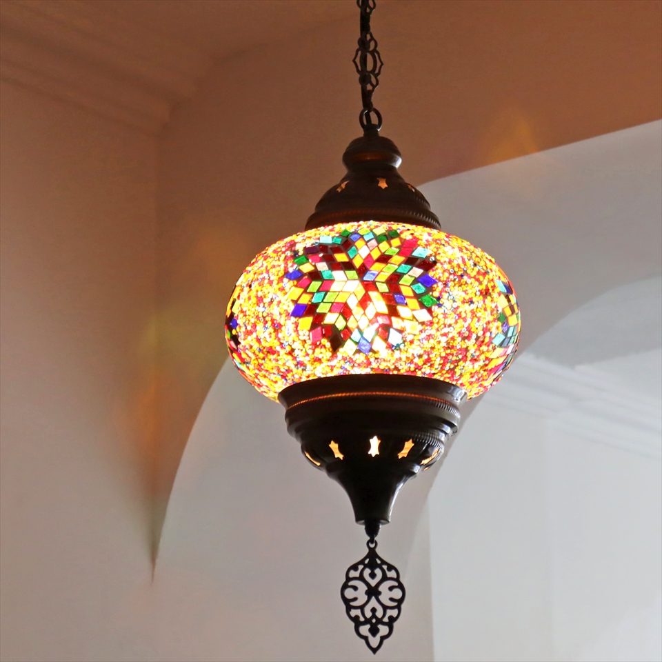 Key:トルコランプ モザイクランプ ペンダントランプ 天井照明 吹き抜け用照明 パレスランプ ガラスシェード ペンダントライト シーリングライト ランプ ライト 照明 インテリア エスニック オリエンタル 引掛けシーリング対応