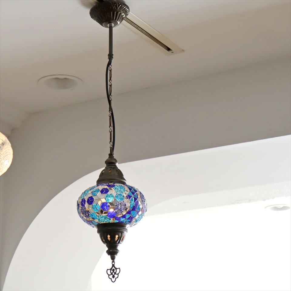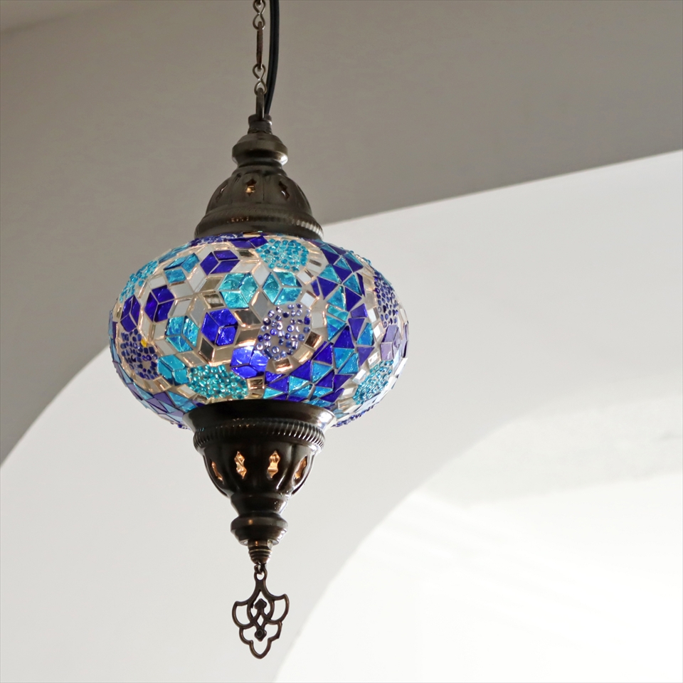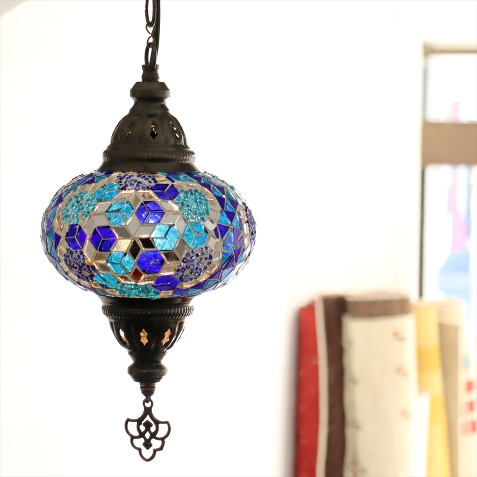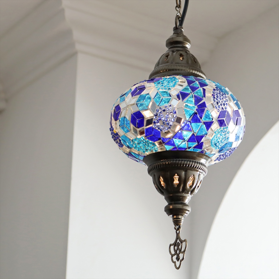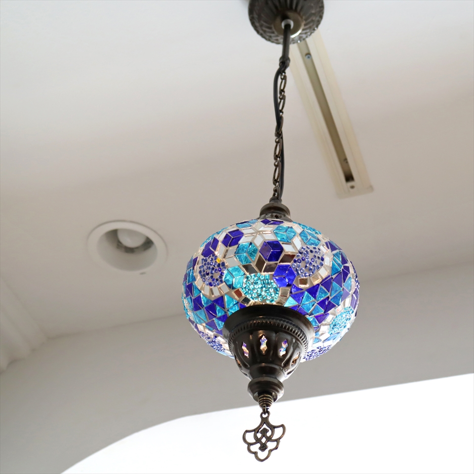 トルコランプ モザイクランプ ペンダントランプ 直径16cm ブルー
