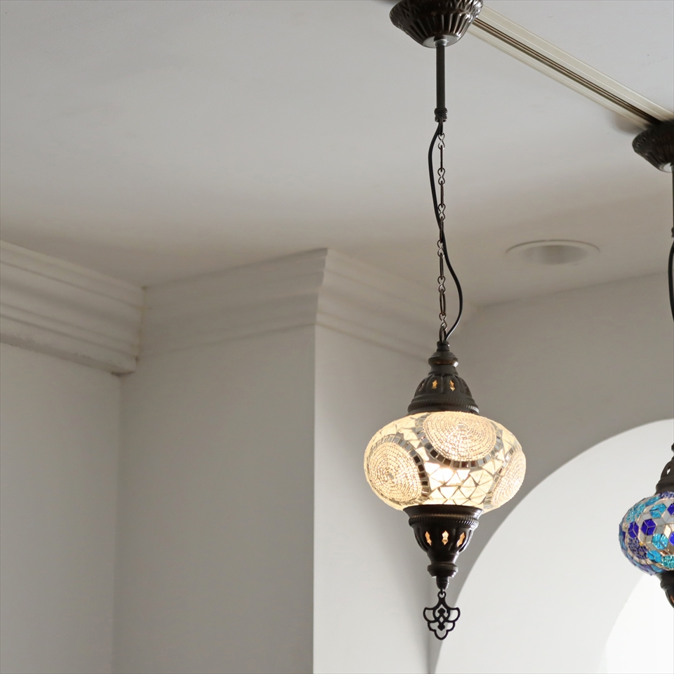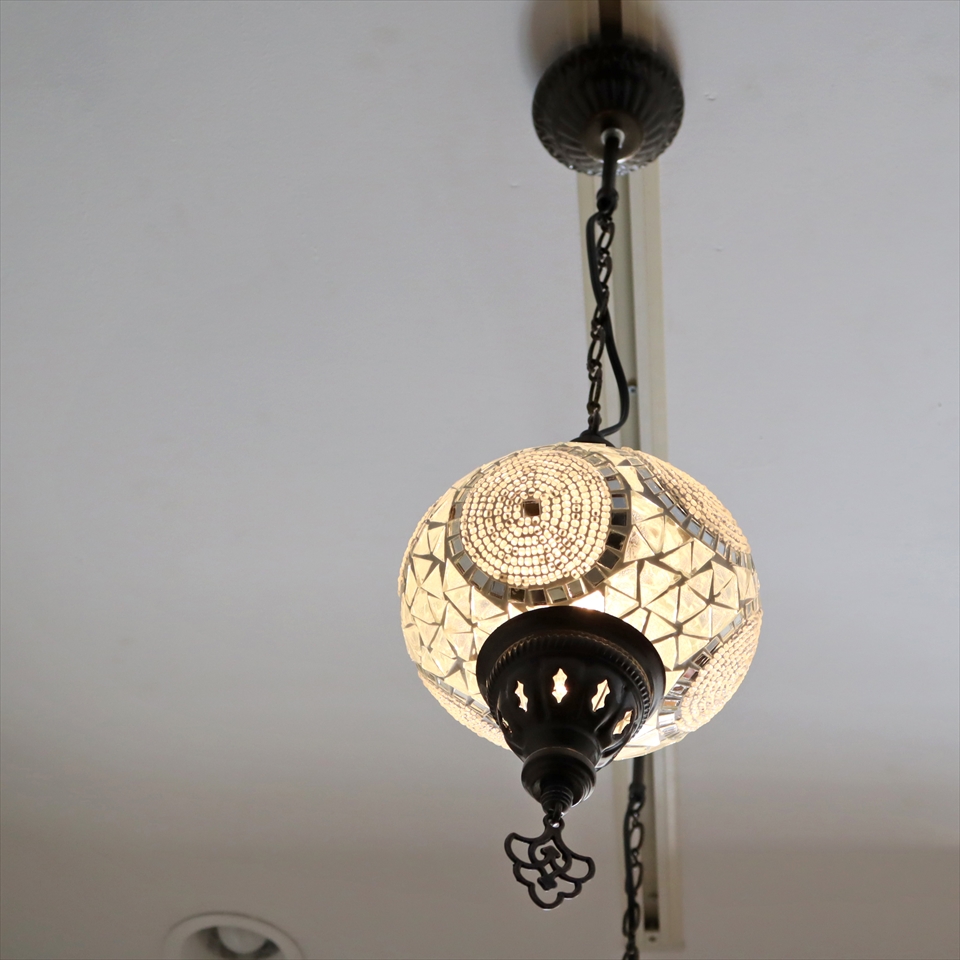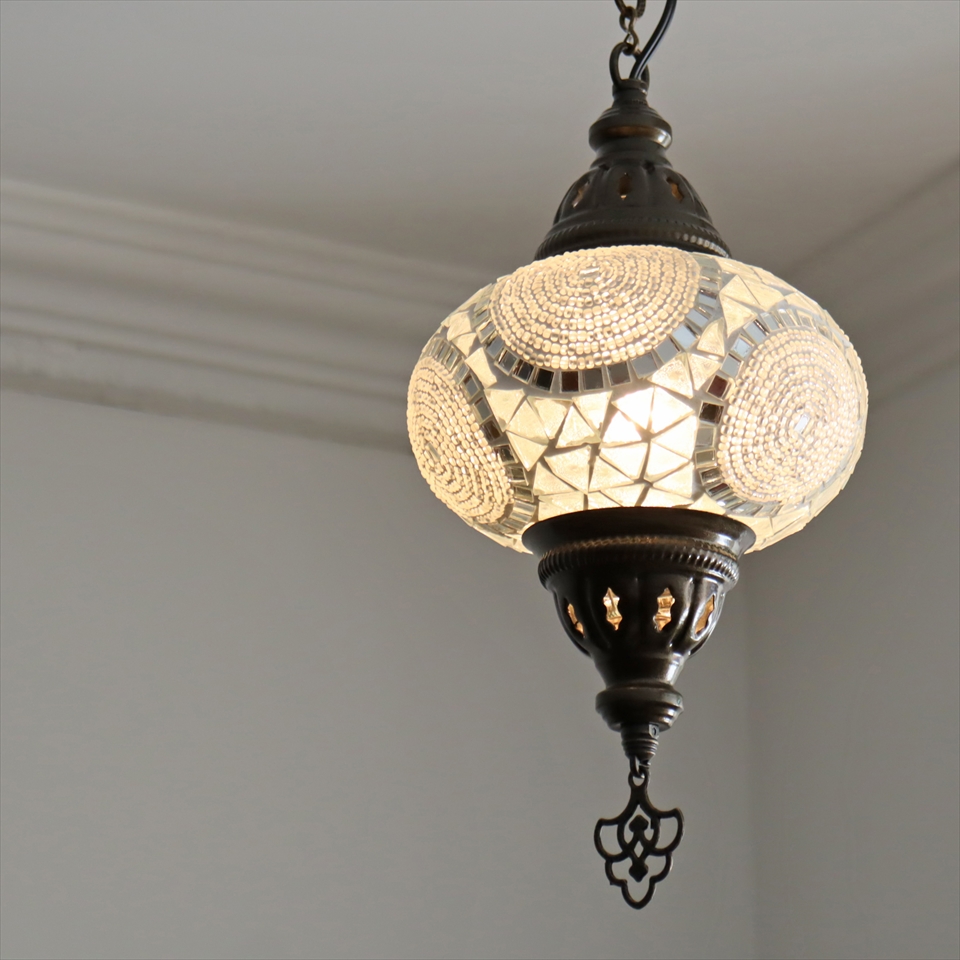 トルコランプ モザイクランプ ペンダントランプ 直径16cm ホワイトサークル