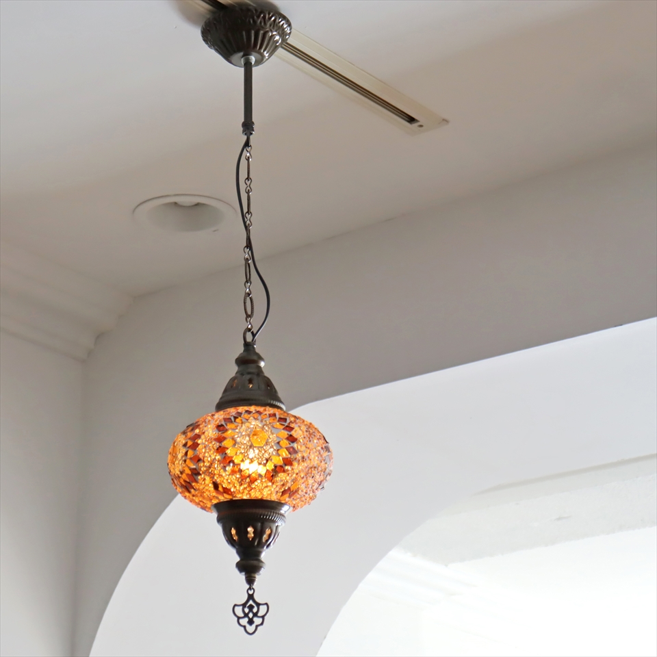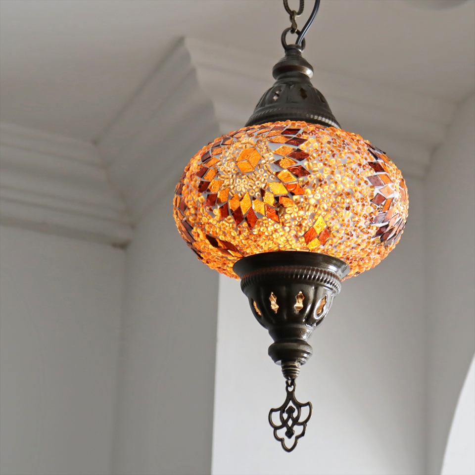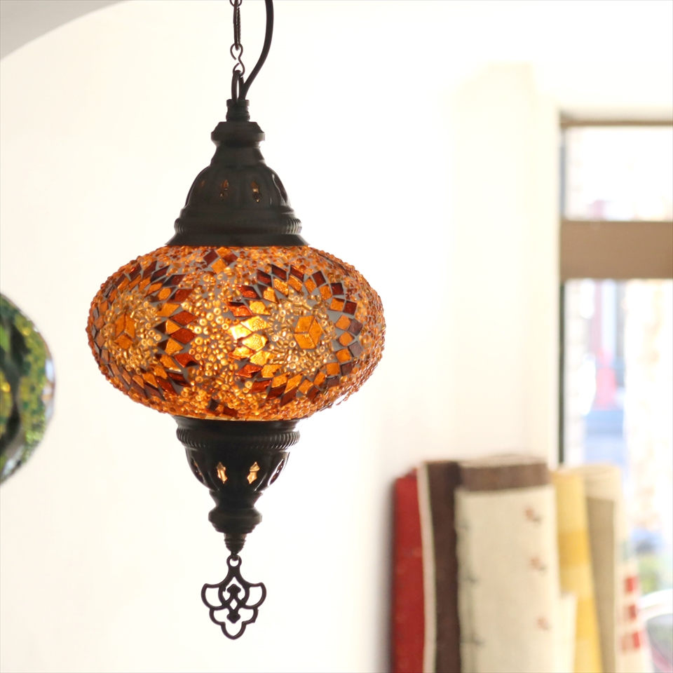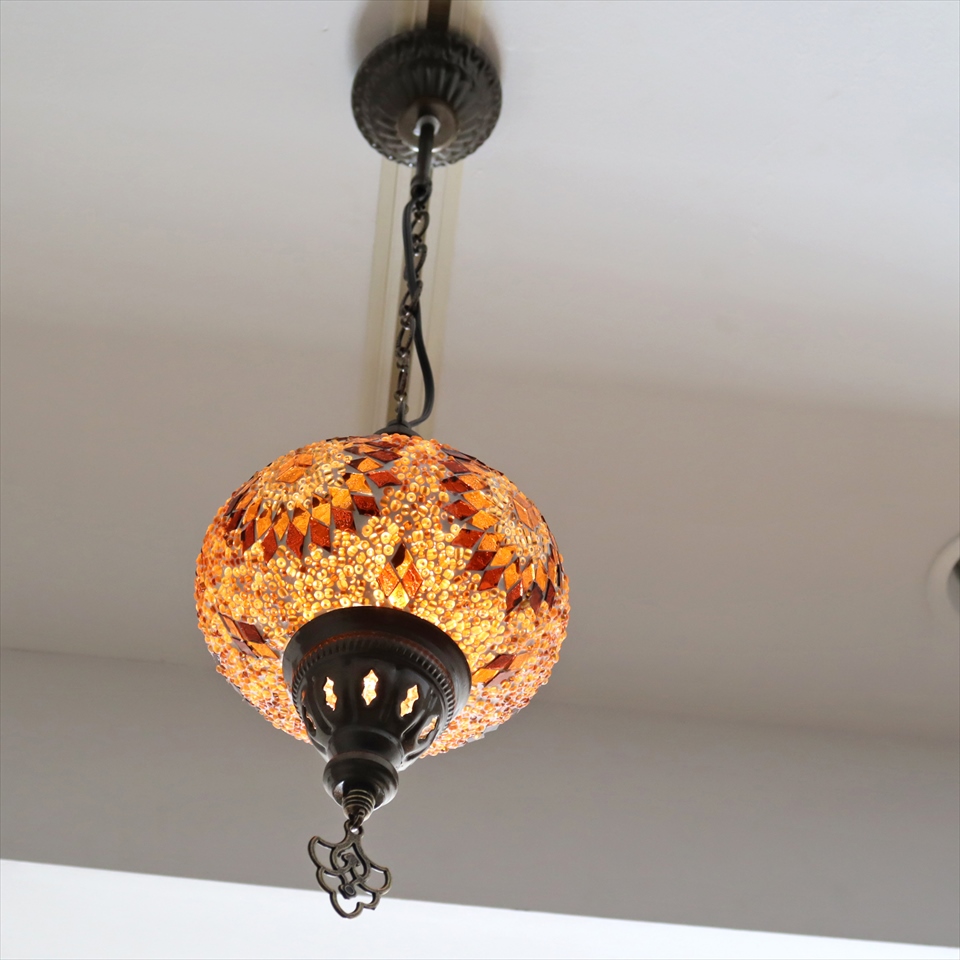 トルコランプ モザイクランプ ペンダントランプ 直径16cm アンバー