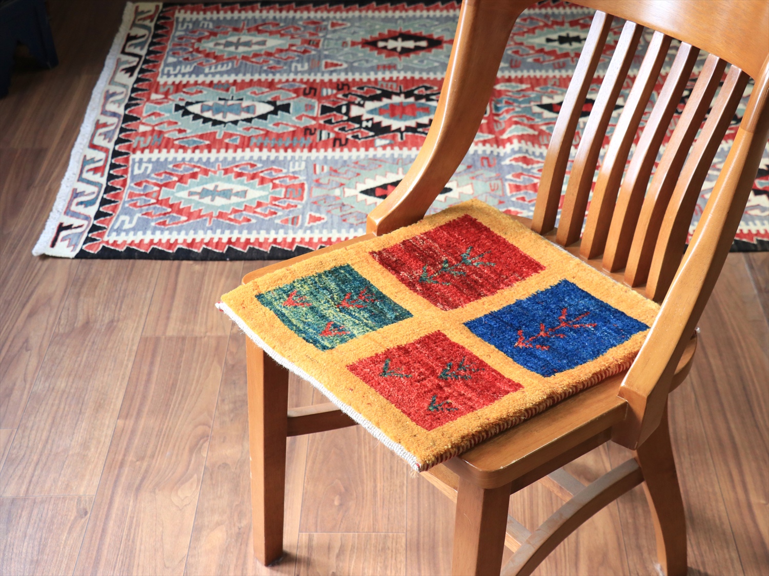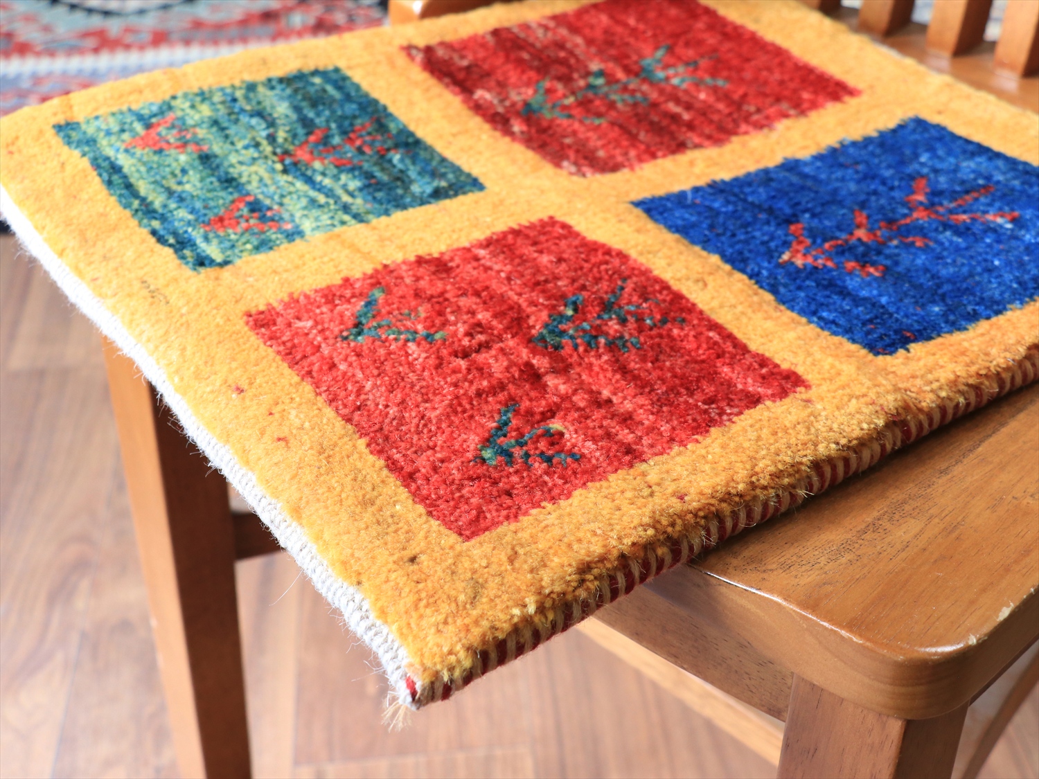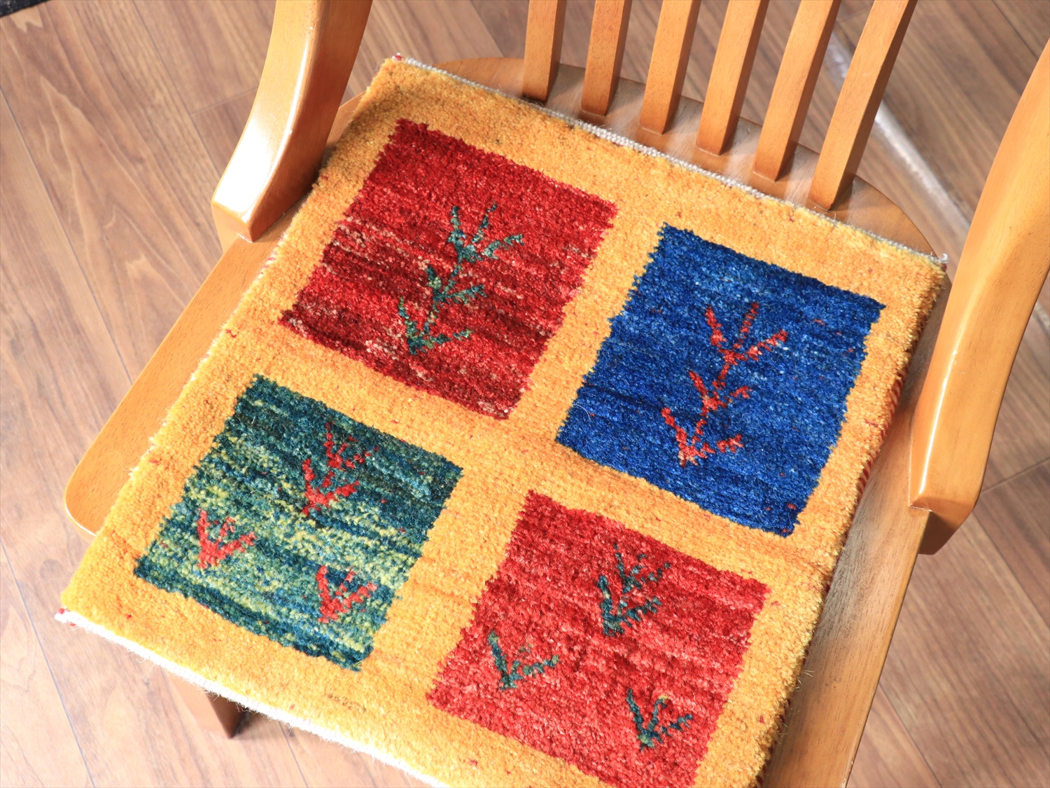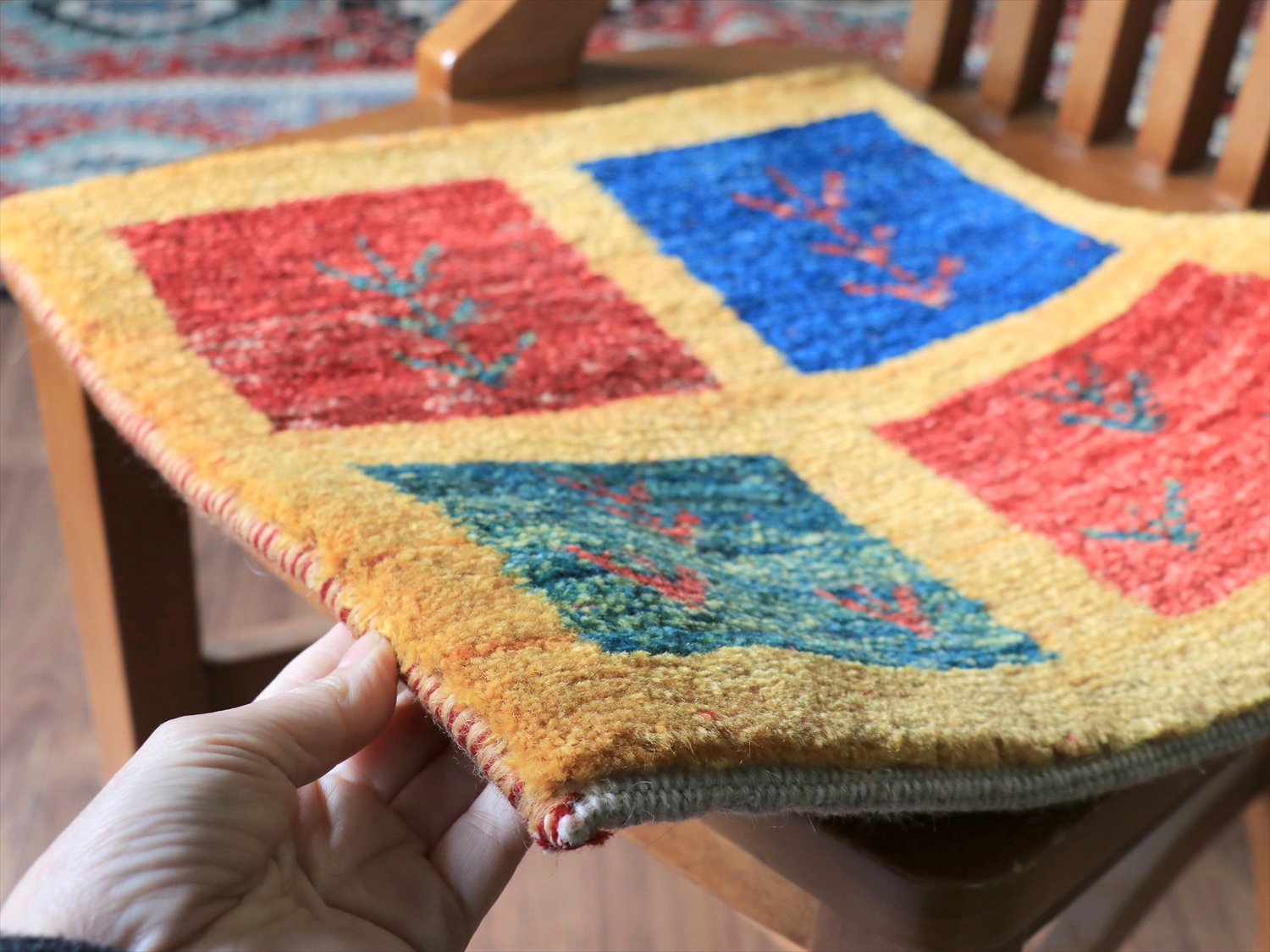 ・手紡ぎ、草木染(または無染色)、ウール100%、手織りのギャッベ。