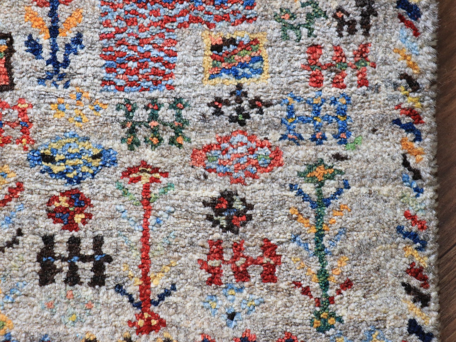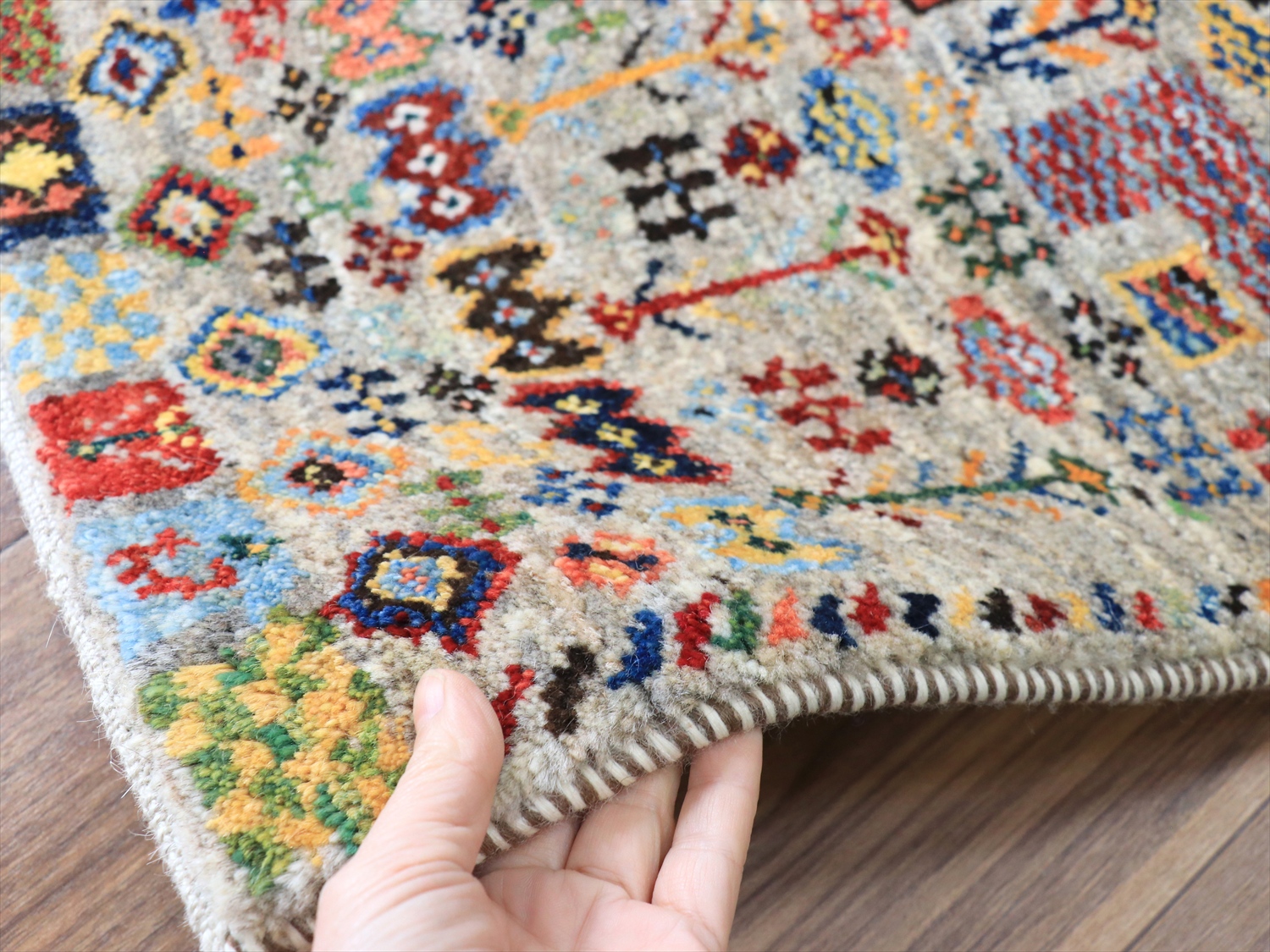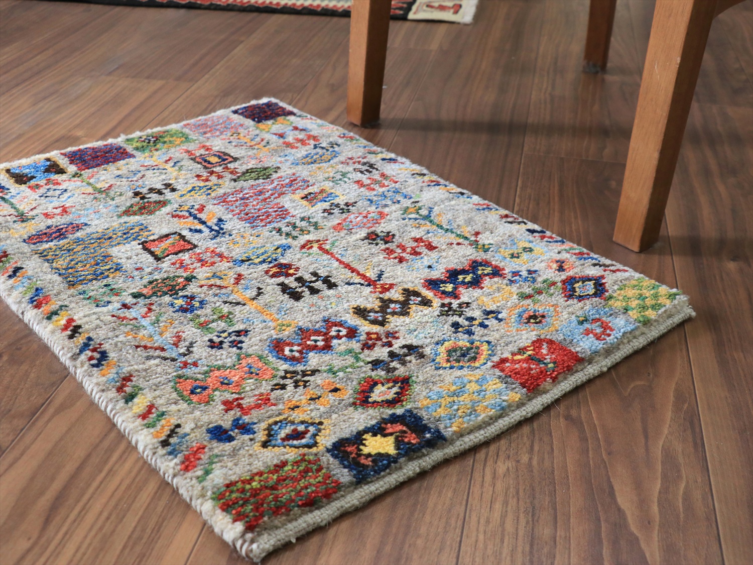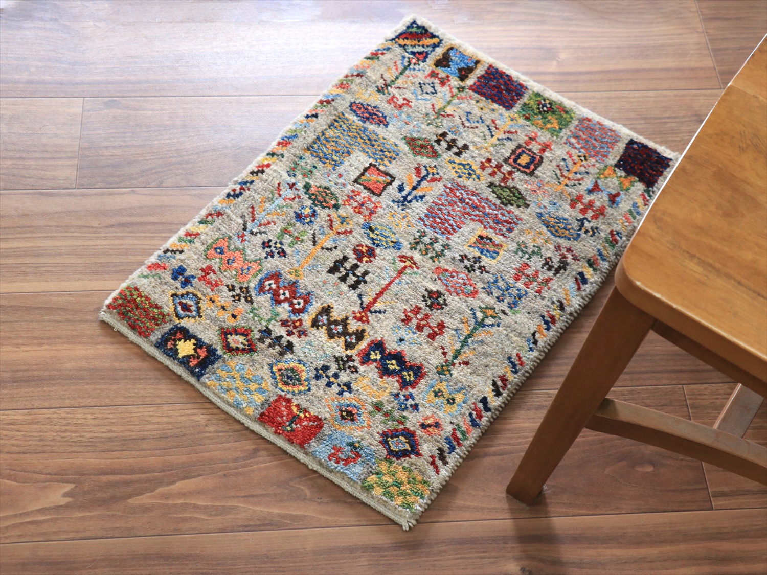 ふっくらとした厚みのある織り地で、パイル(毛足)を含めたギャッベの厚みは、1.7-1.8cm程度。上下の房を巻き込んだり、何度もシャーリングをしたり、丁寧に仕上げられたコレクションです。