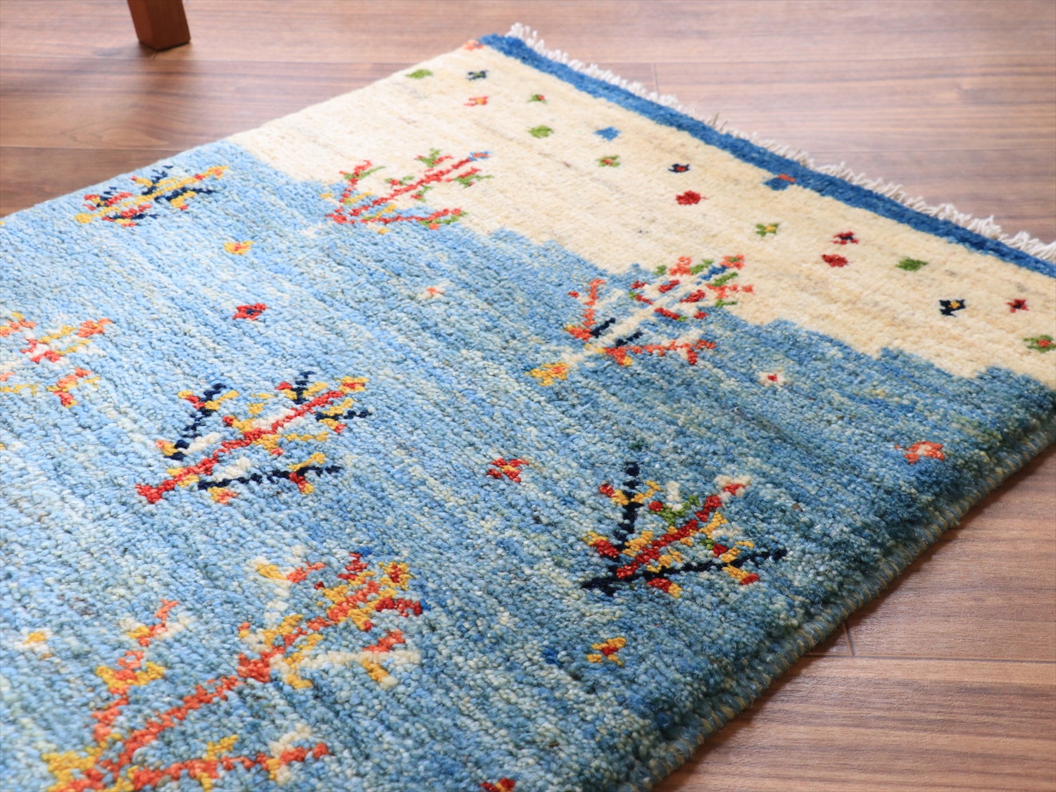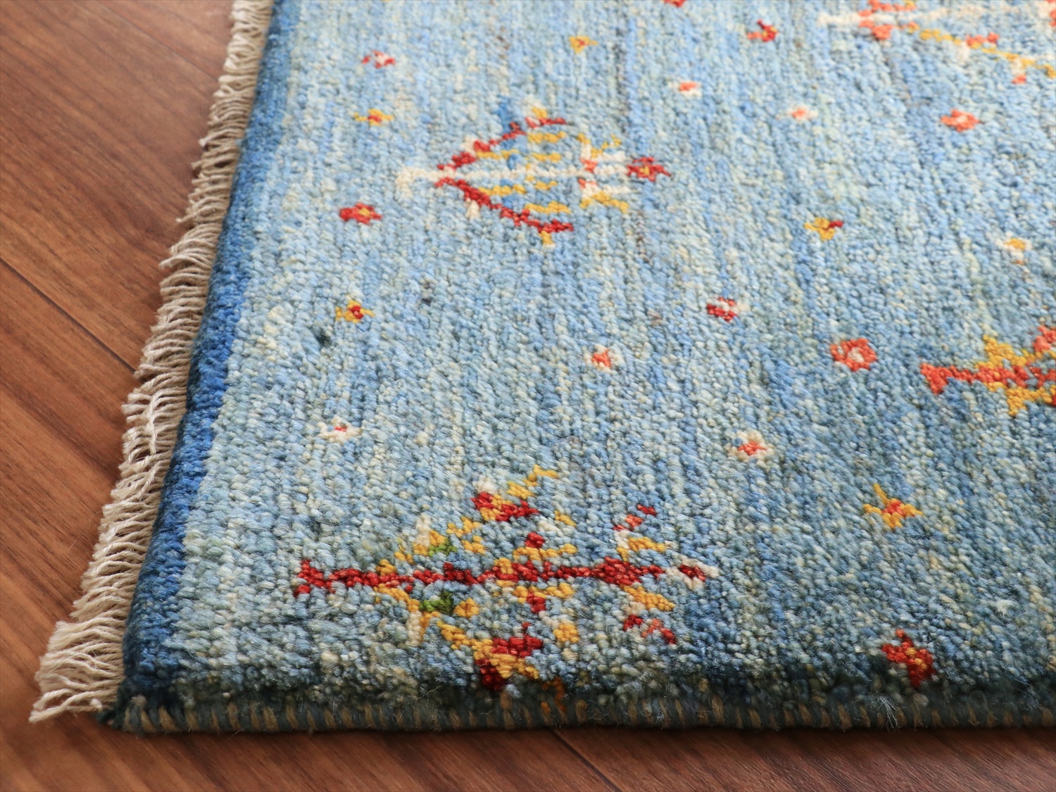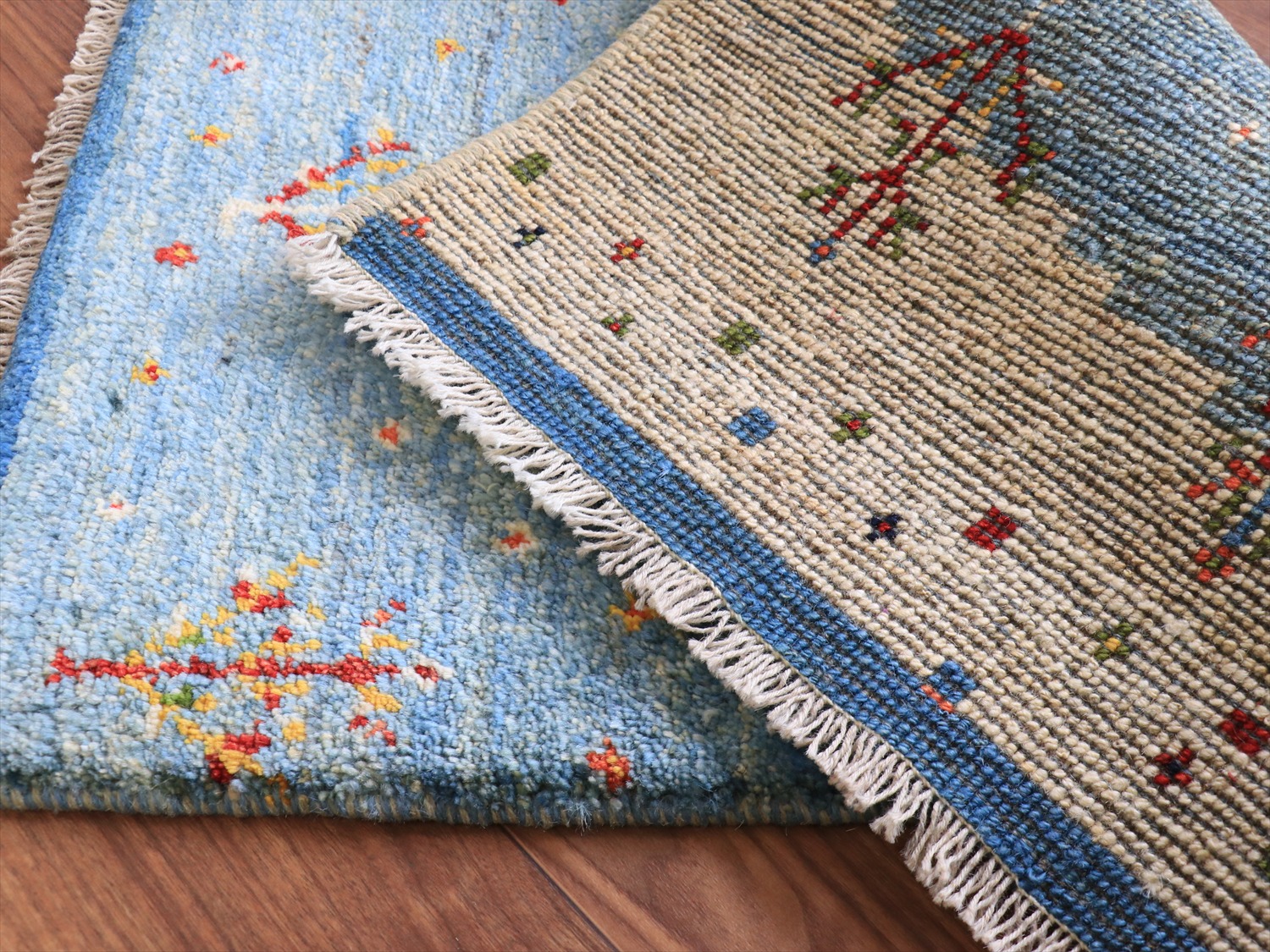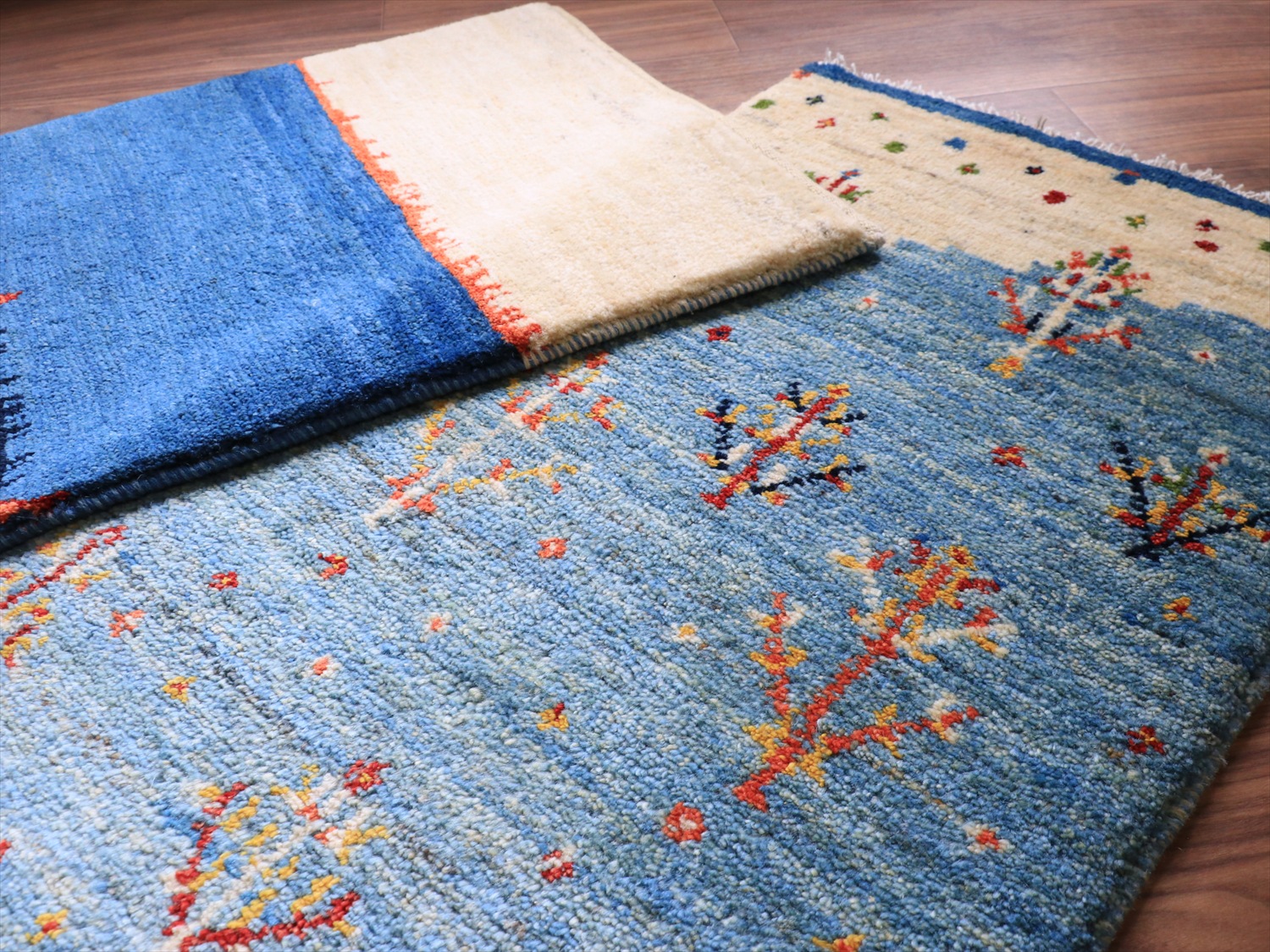 ・手紡ぎ、草木染(または無染色)、ウール100%、手織りのギャッベ。・余分なウール繊維を焼き飛ばして、水洗いとシャーリングを数回繰り返した丁寧な仕上げ。遊び毛はほとんどでません。