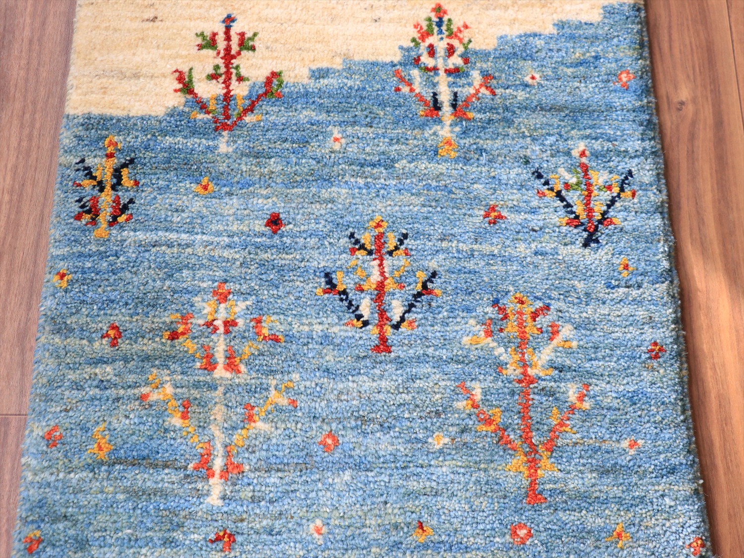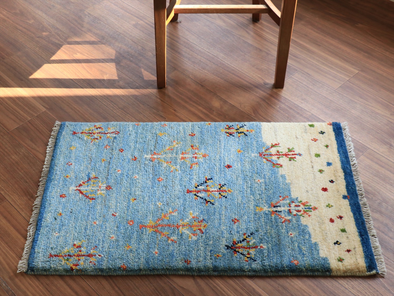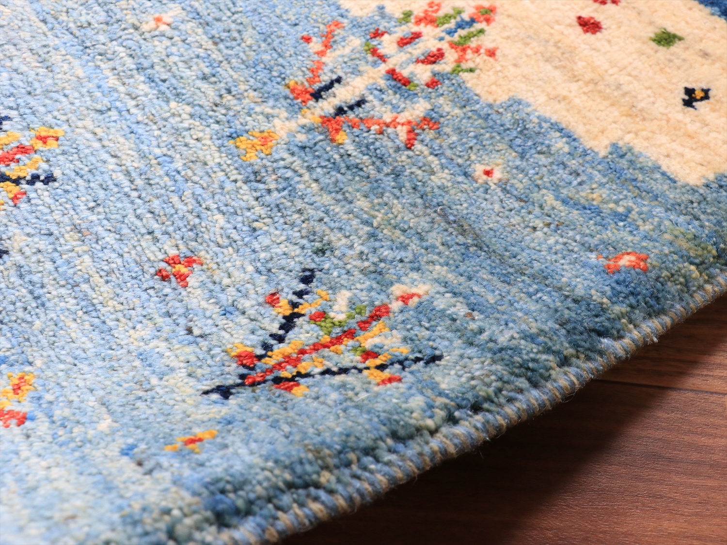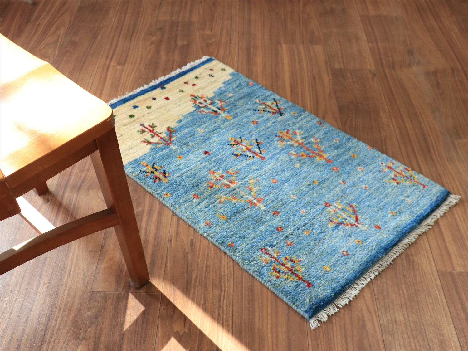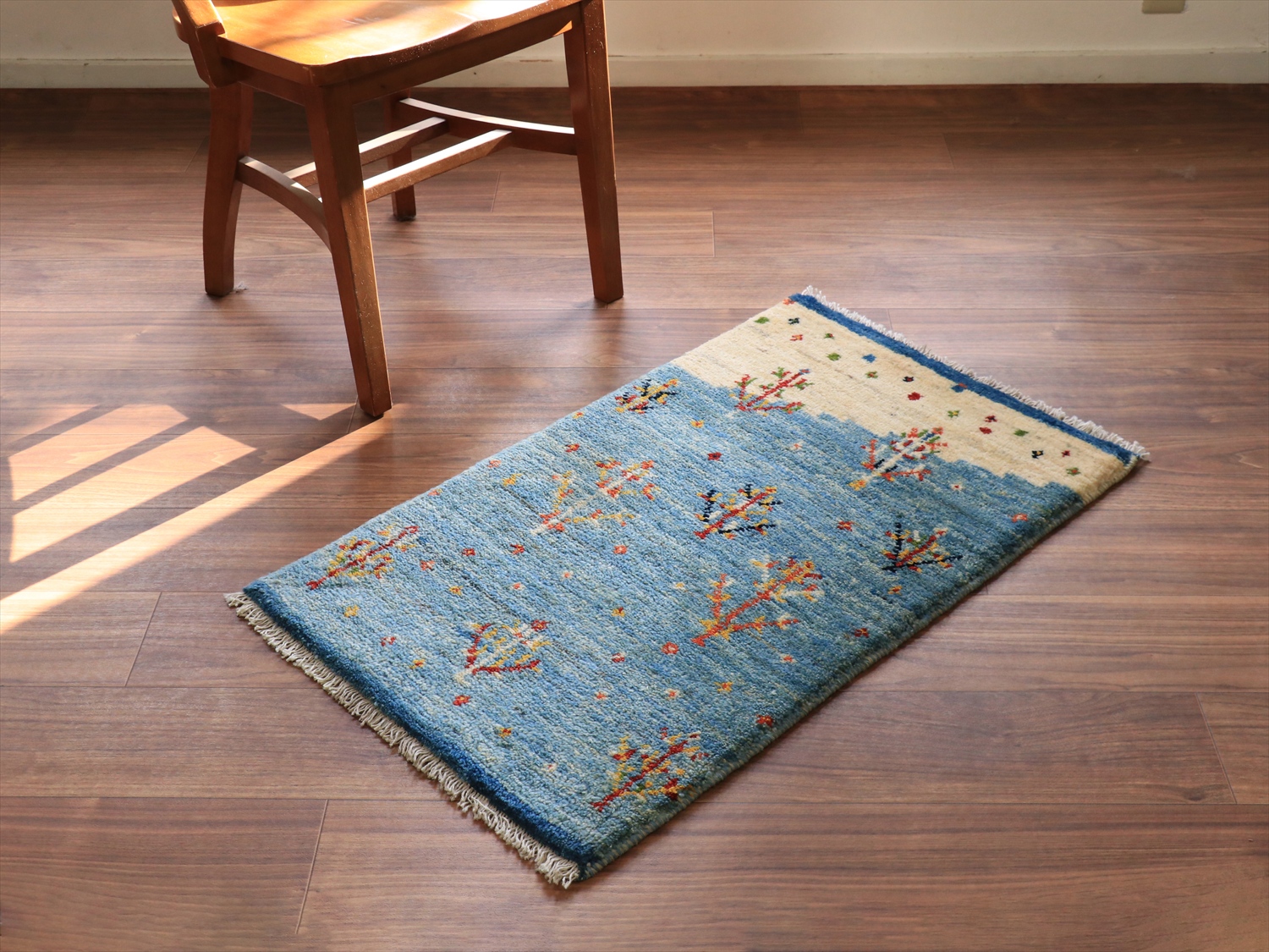 ・手紡ぎ、草木染(または無染色)、ウール100%、手織りのギャッベ。・余分なウール繊維を焼き飛ばして、水洗いとシャーリングを数回繰り返した丁寧な仕上げ。遊び毛はほとんどでません。
