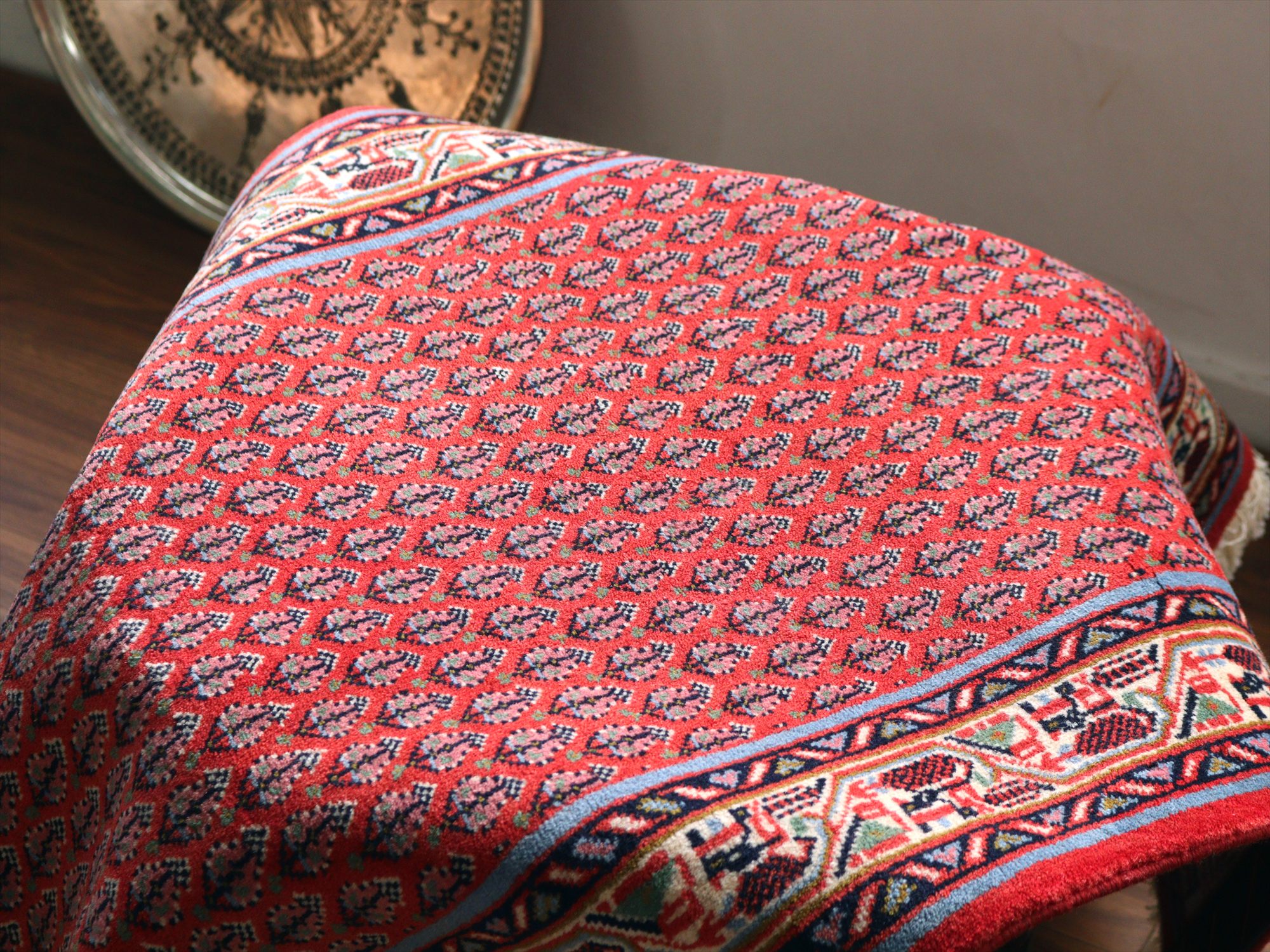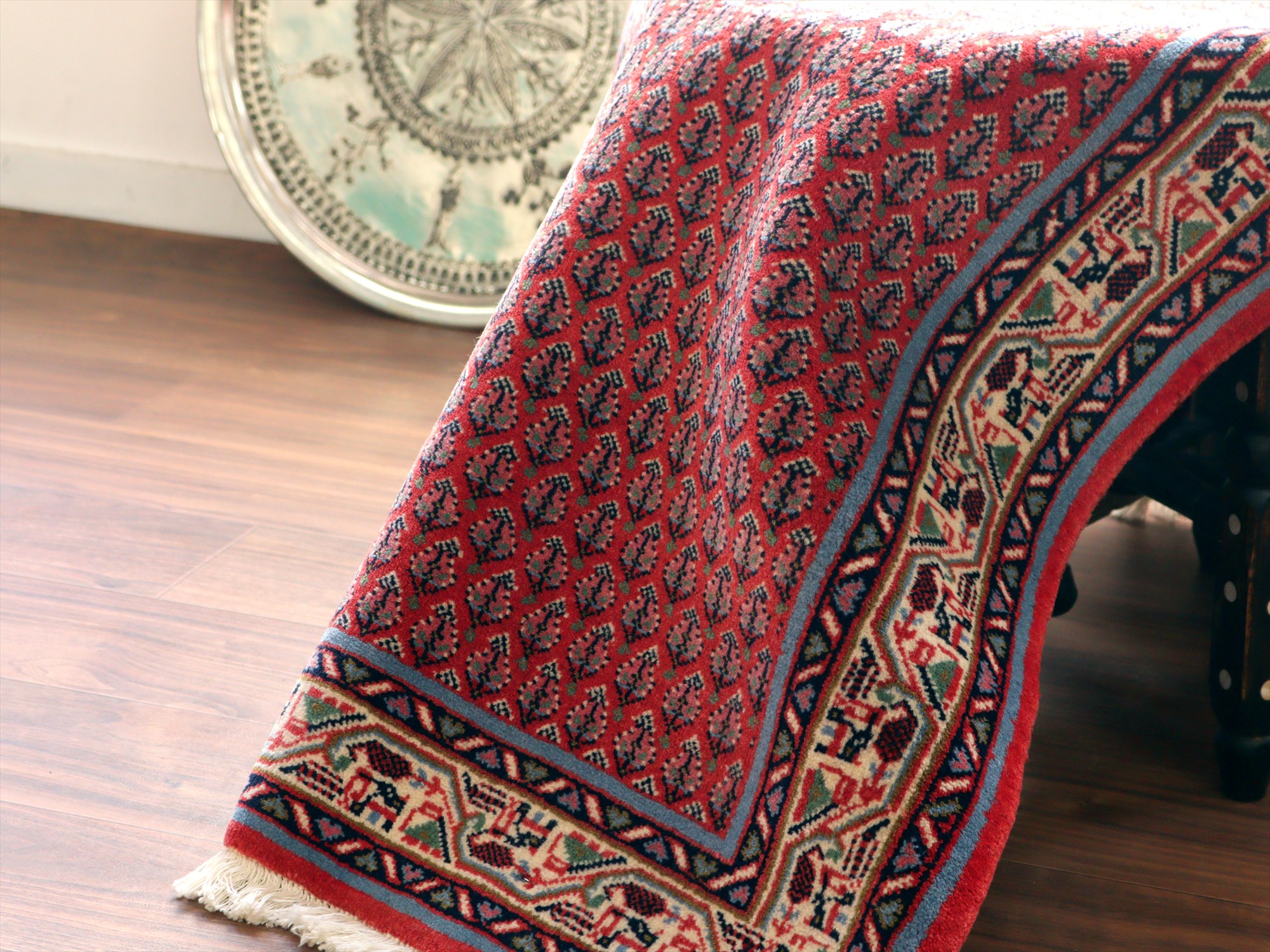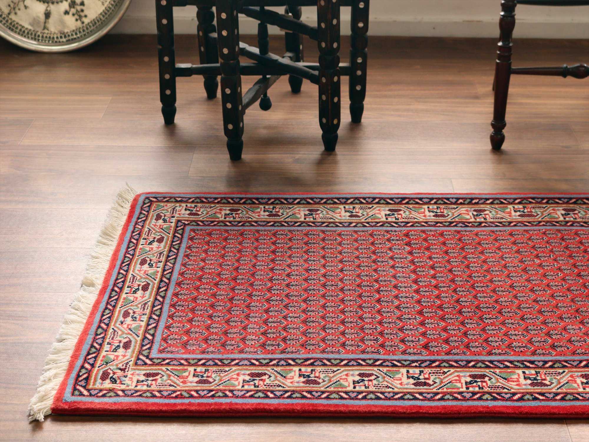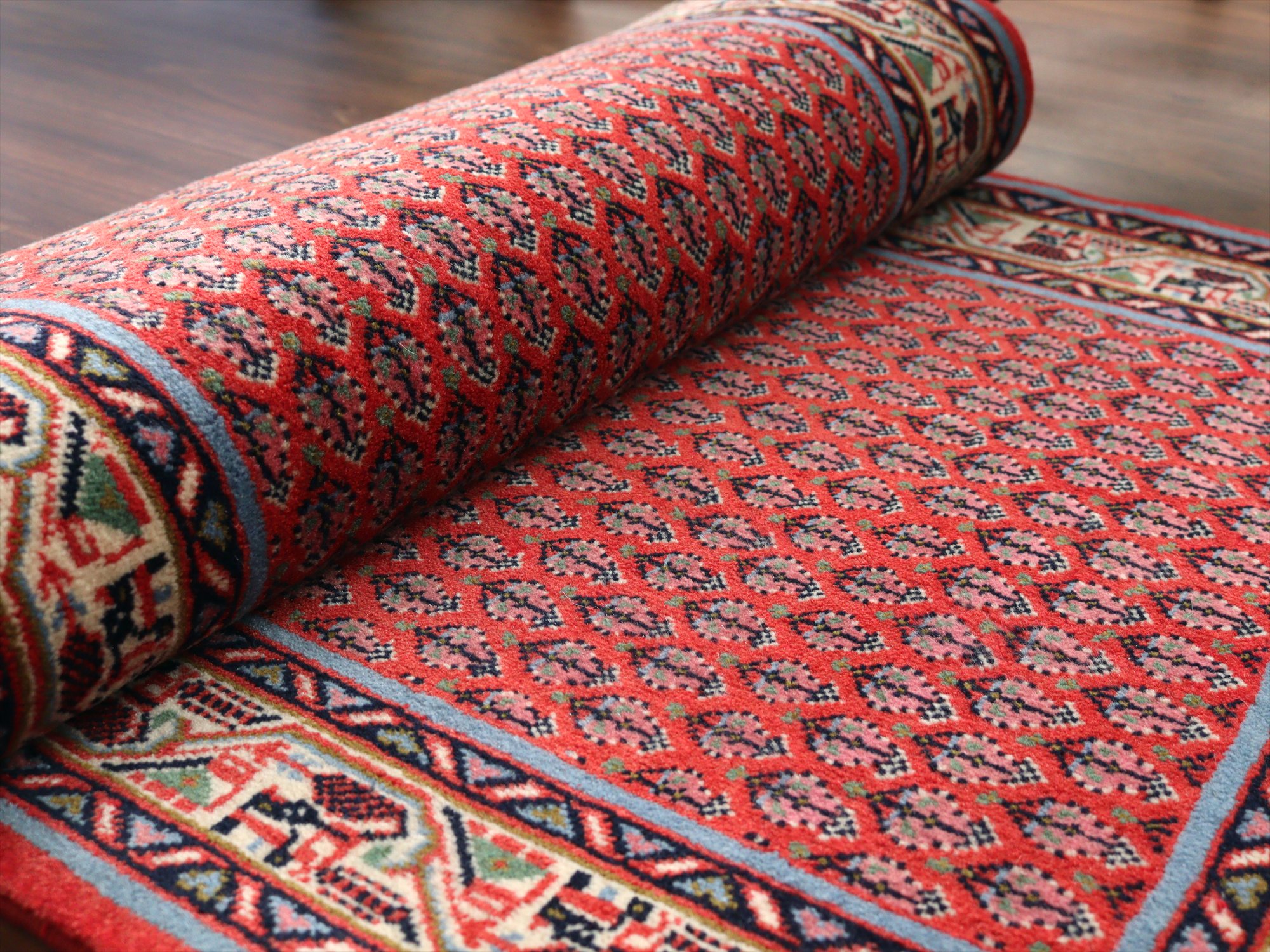 イランの手織りラグ サルーク131×59cm ボテ ペイズリーのモチーフ レッド