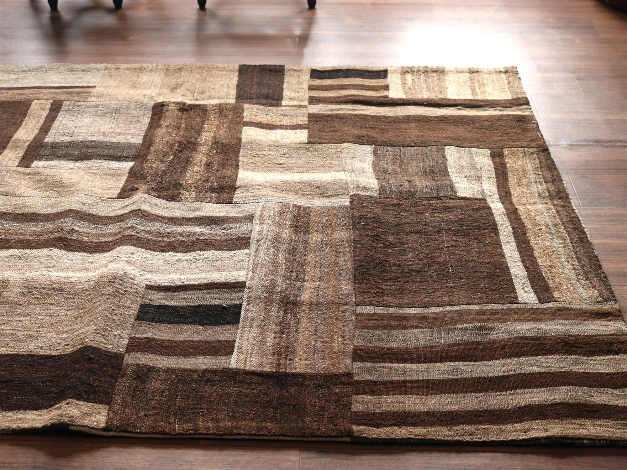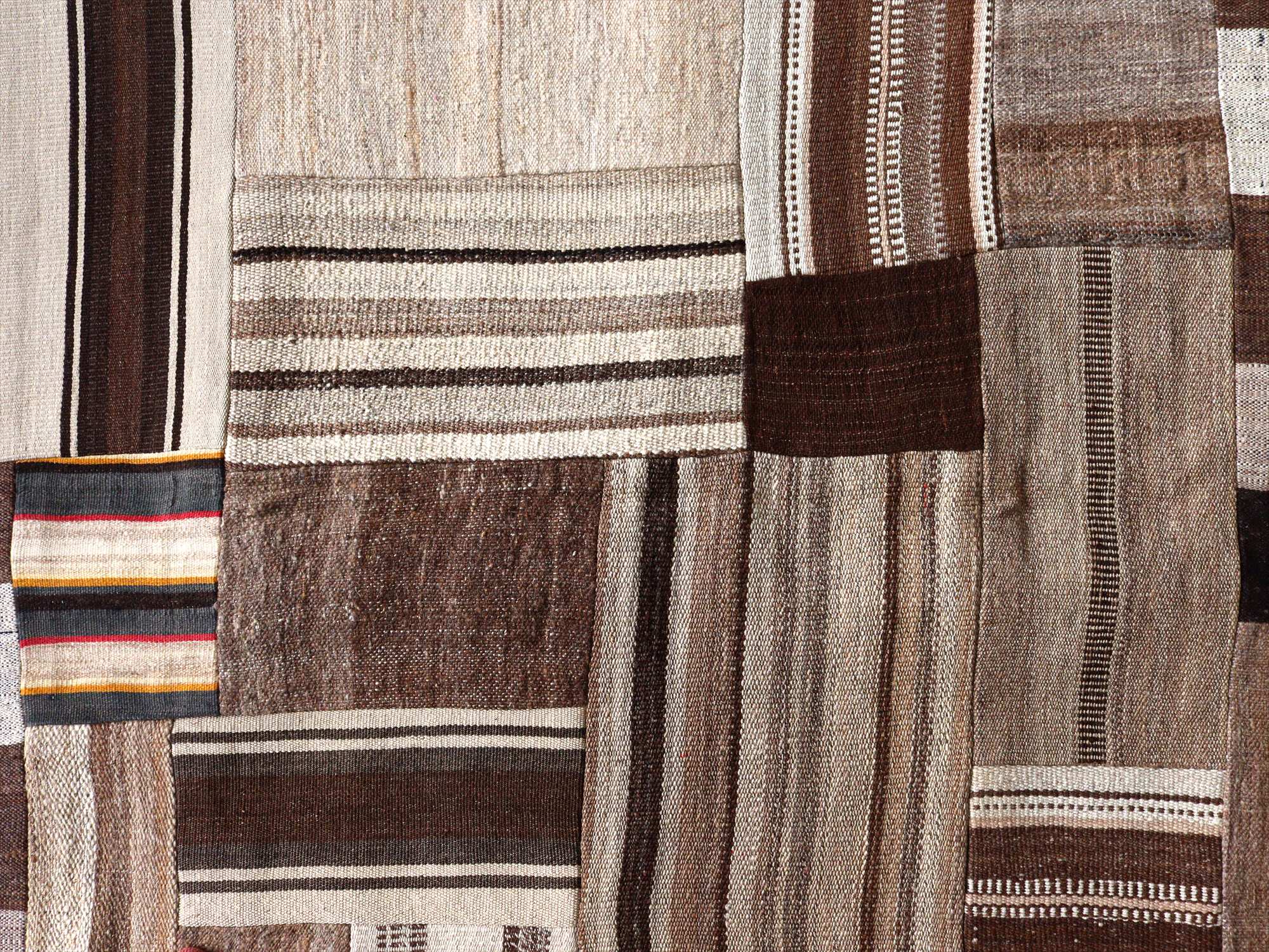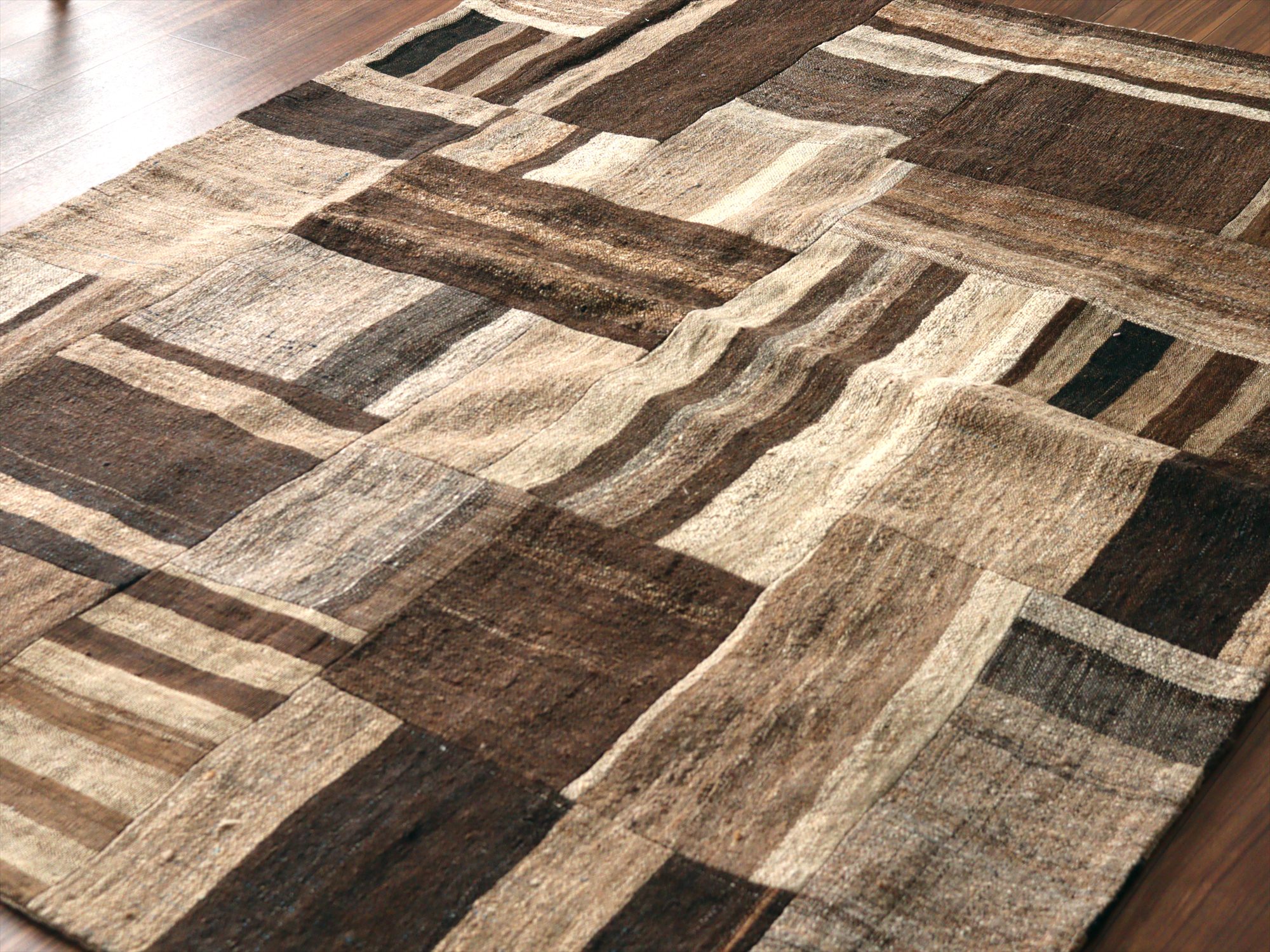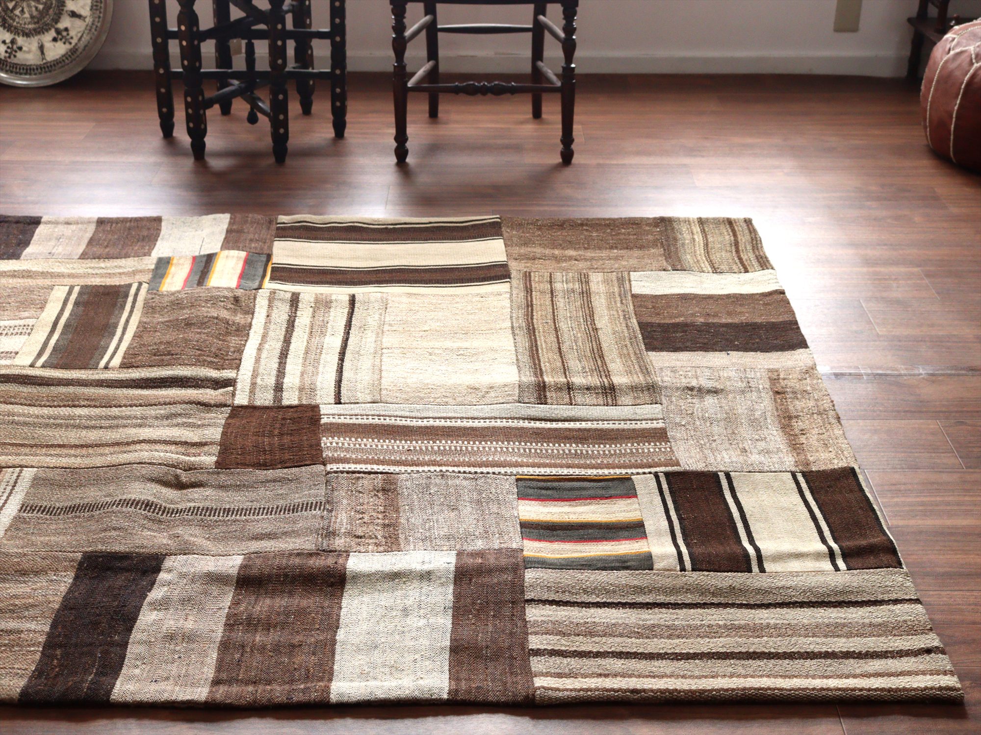 使われているキリムは薄手のものが選ばれ。縫い合わせ部分は、縫い代があるため厚みがあり、ラグの上を歩くと多少デコボコを感じます。オールドですので、使われていたときの名残で多少のシミなどがある場合がございますことをご了承願います。