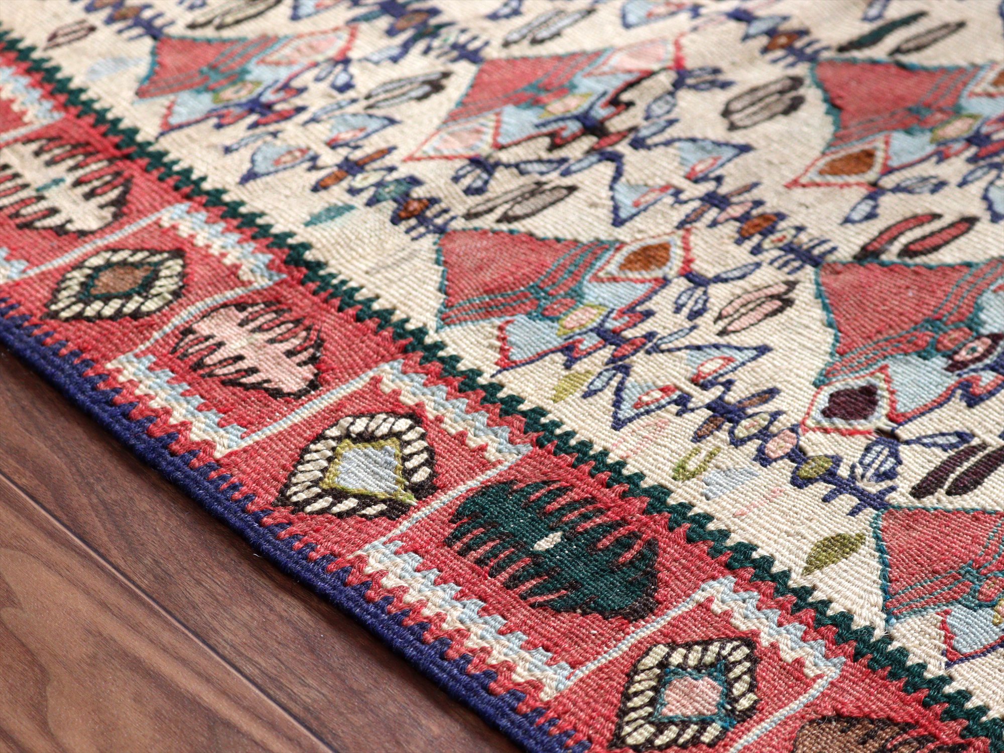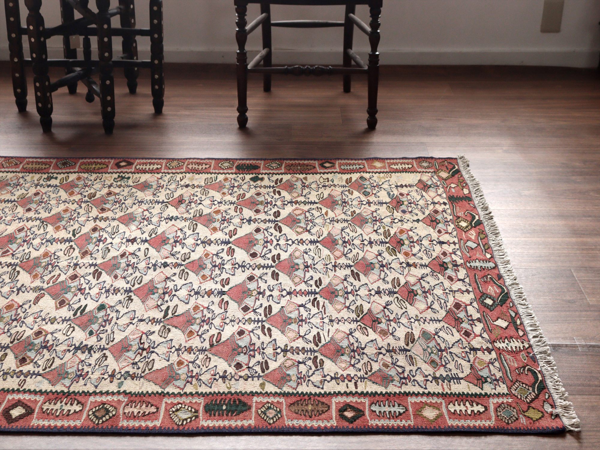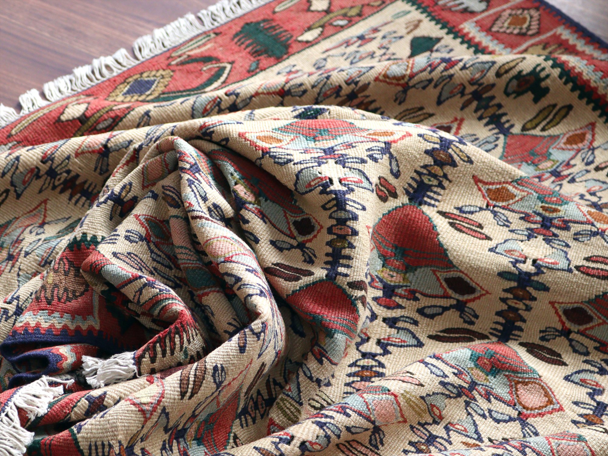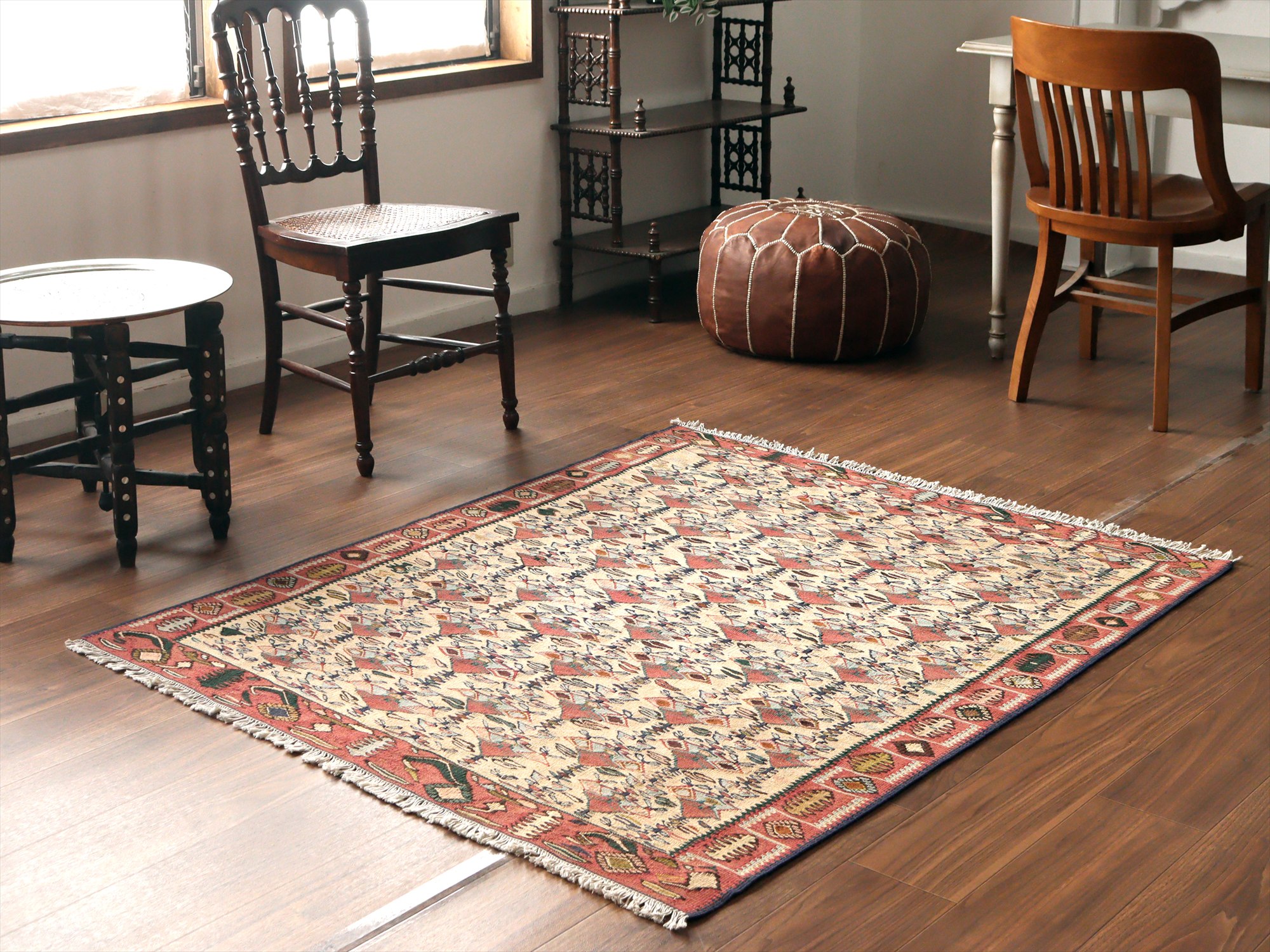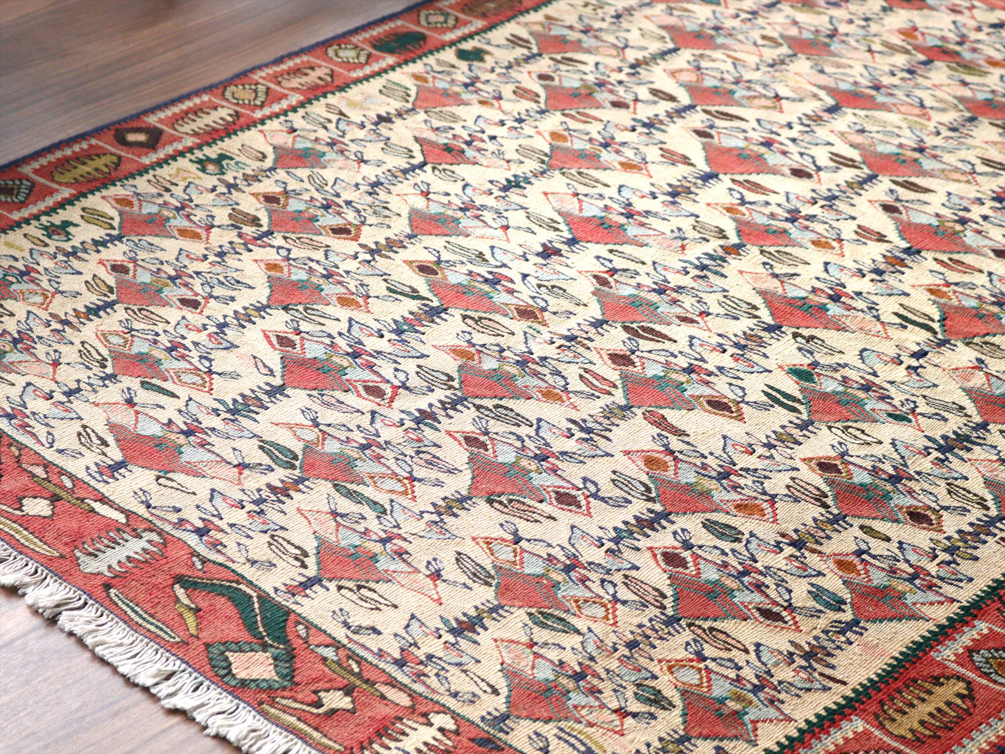イランの手織りキリム セネ144×119cm 花束のモチーフ