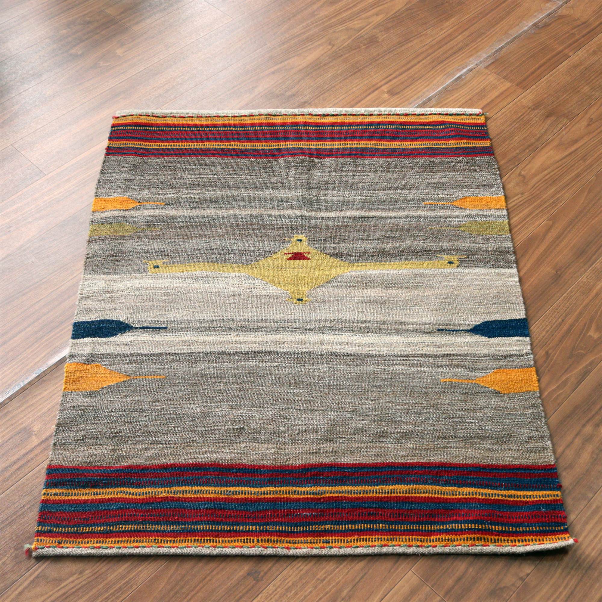 カシュカイ族の手織りキリム 114×93cm 幾何学モチーフ