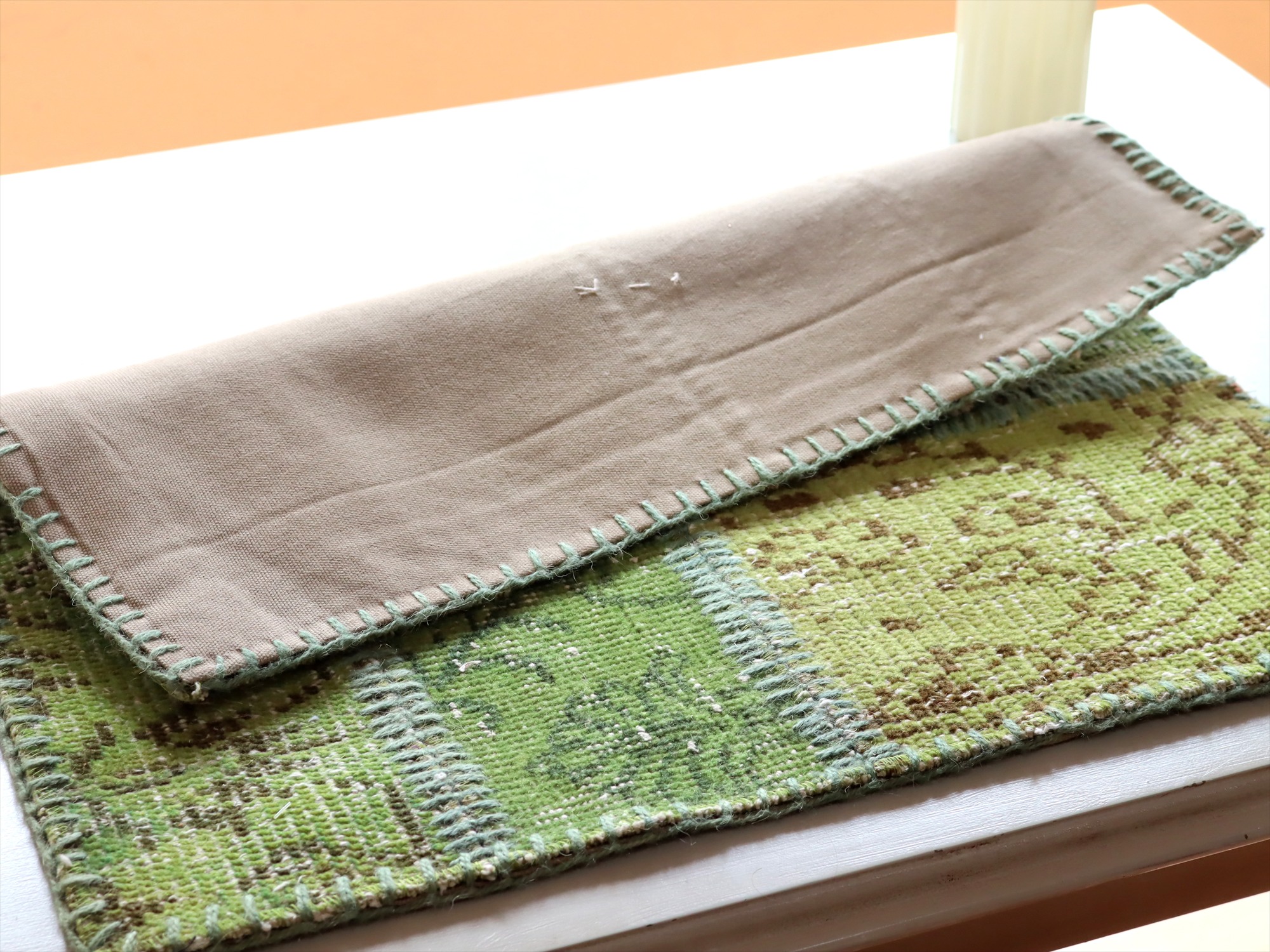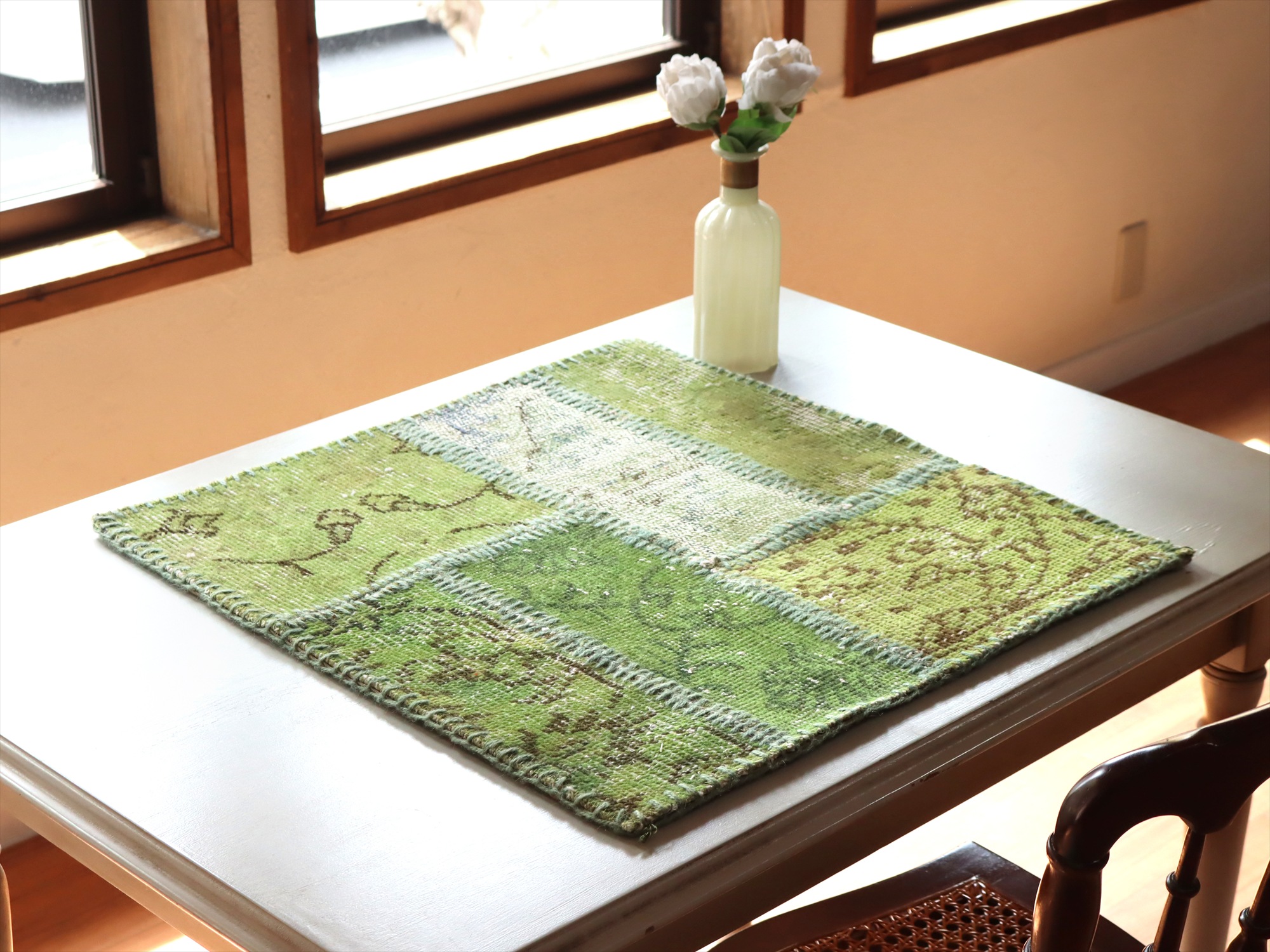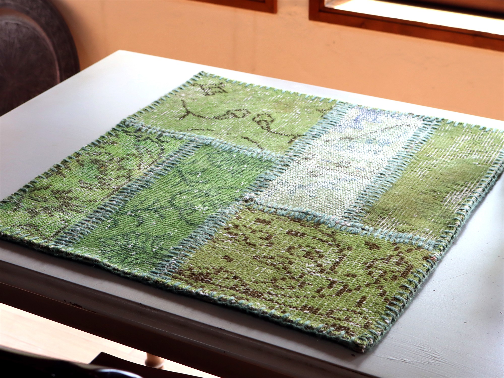パッチワークラグ サンプル57×56cm グリーン【サンプル品】