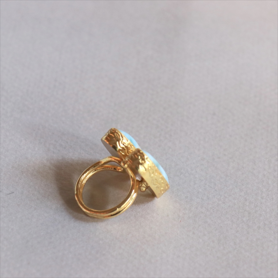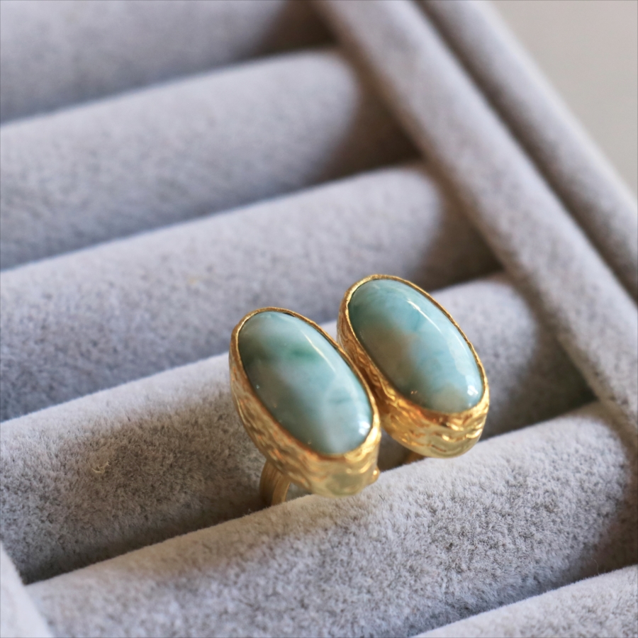 ラリマーダブルリング オーバル アルサメイア トルコジュエリー カラーストーン