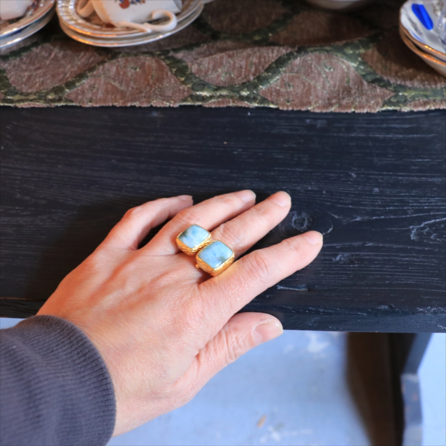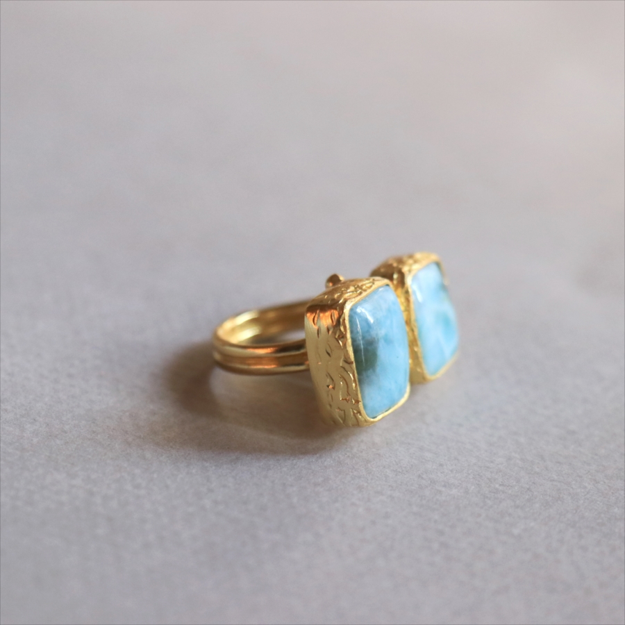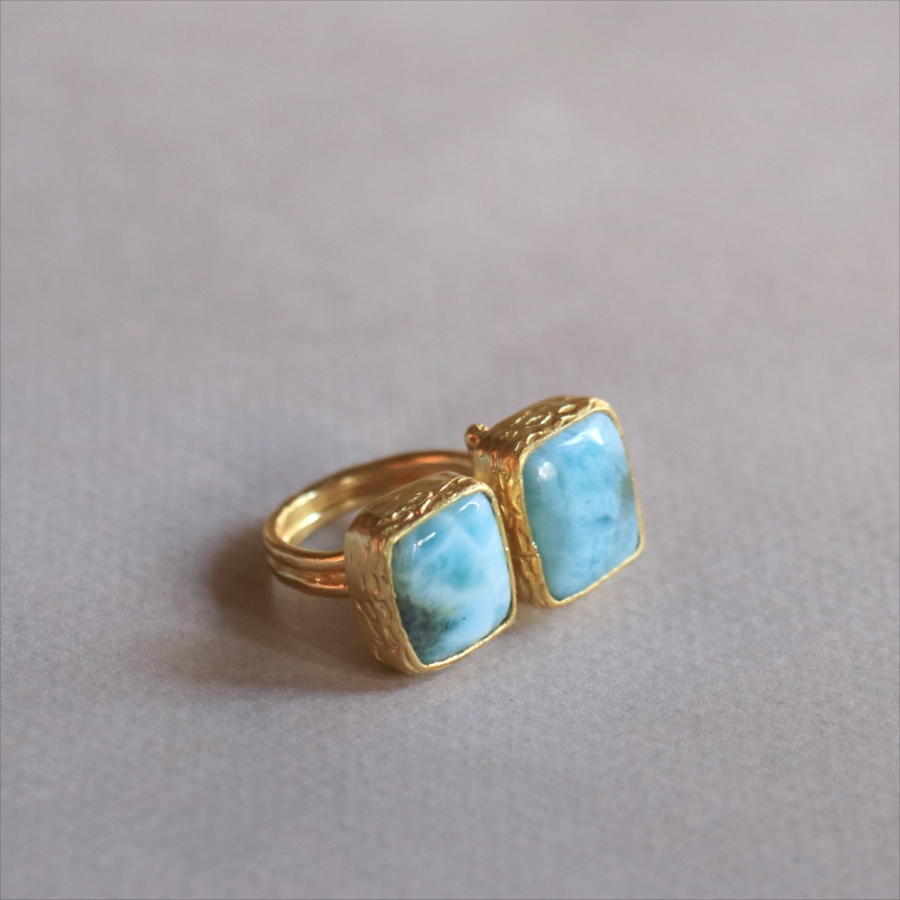 ラリマーダブルリング スクエア アルサメイア トルコジュエリー カラーストーン