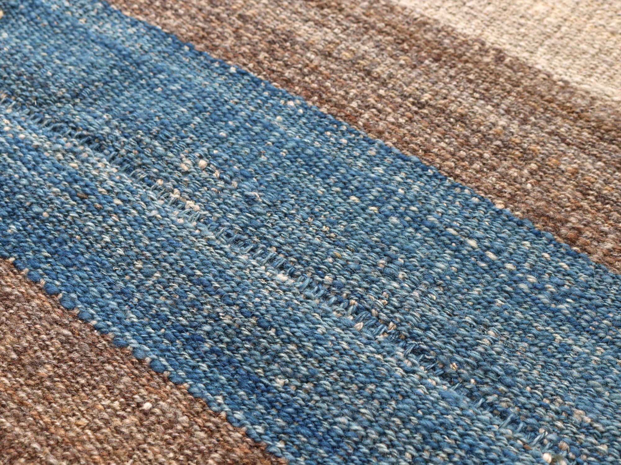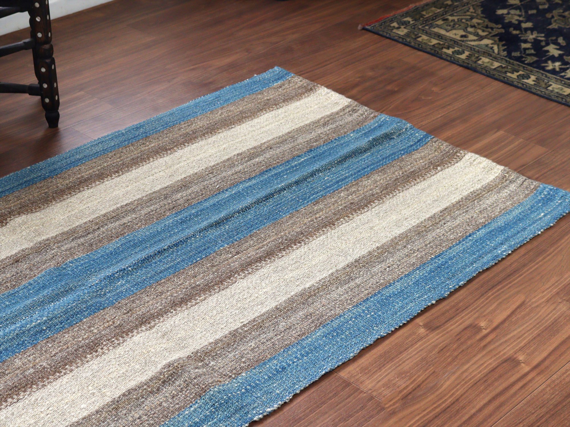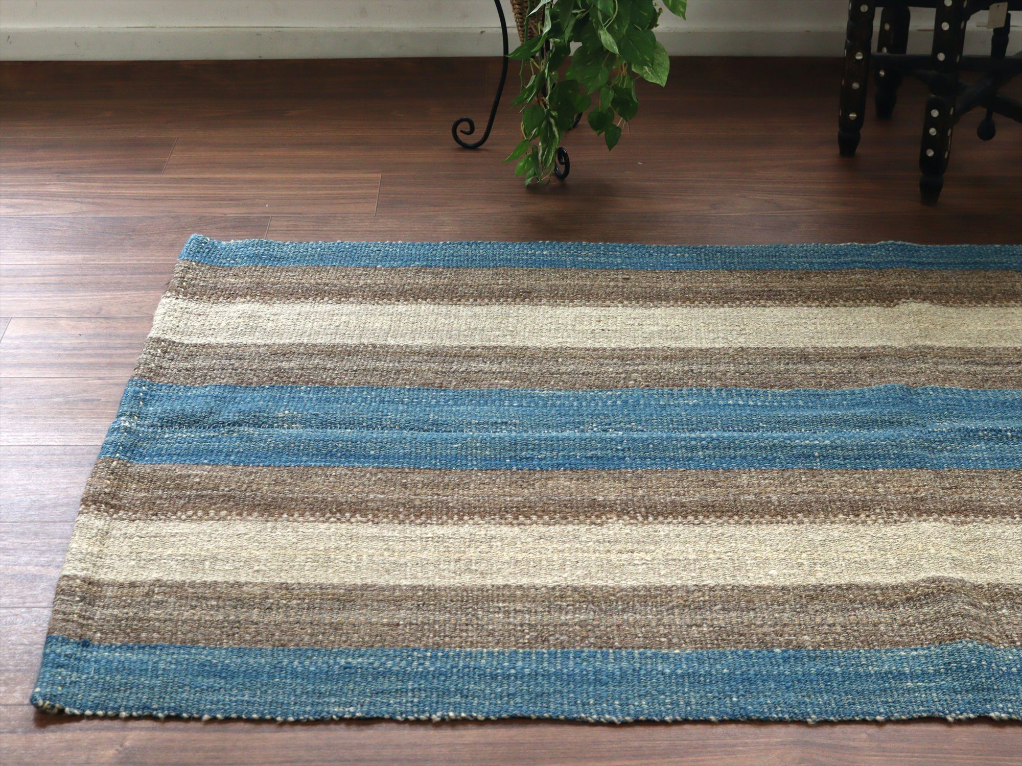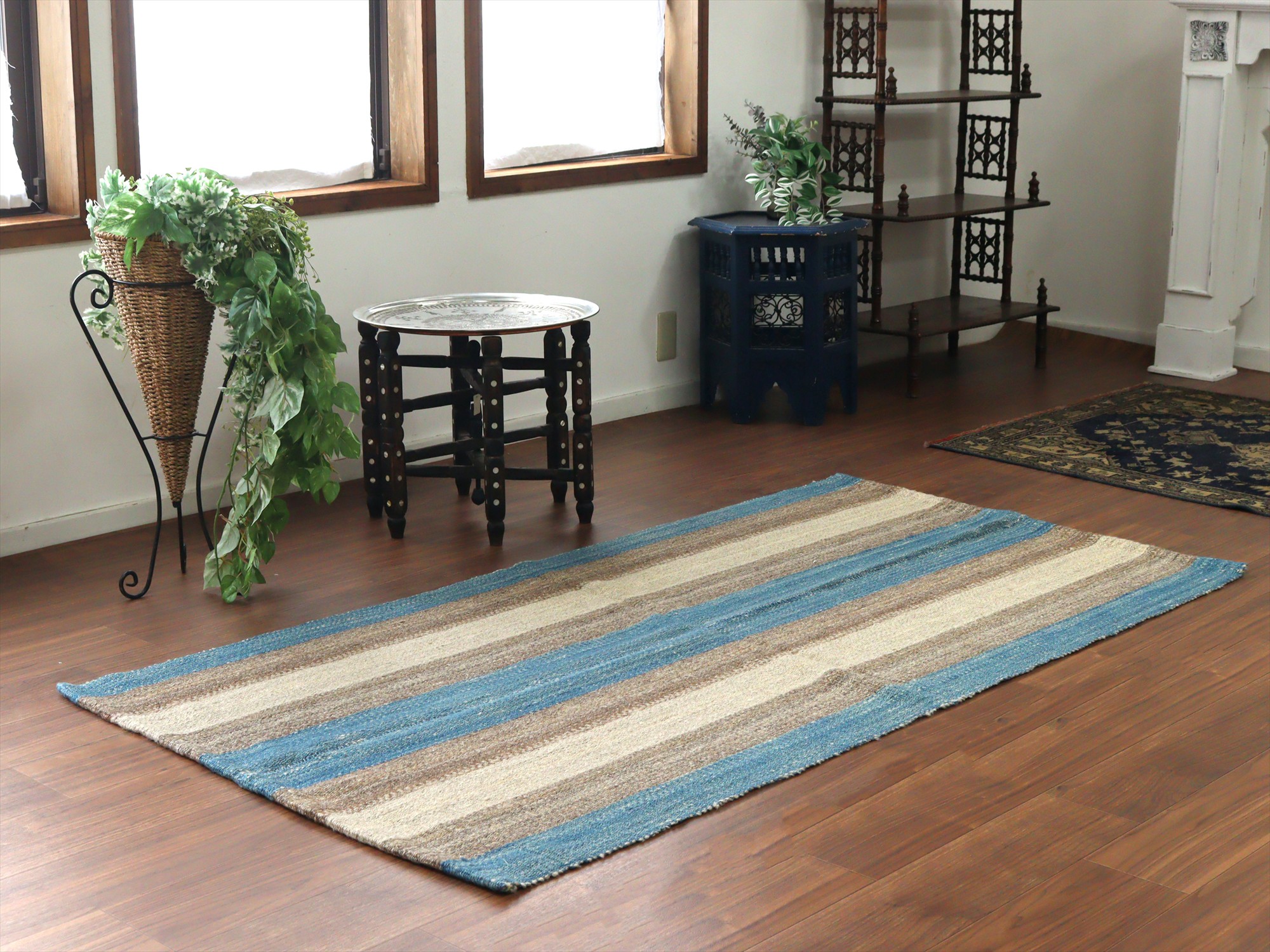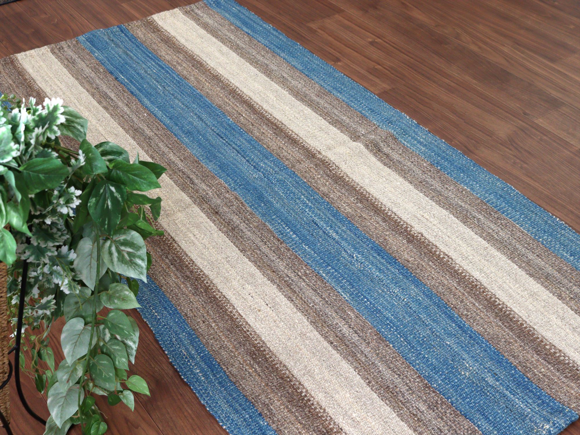トルコの手織りキリム カルス198×98cm ストライプ アイボリー&ブラウン