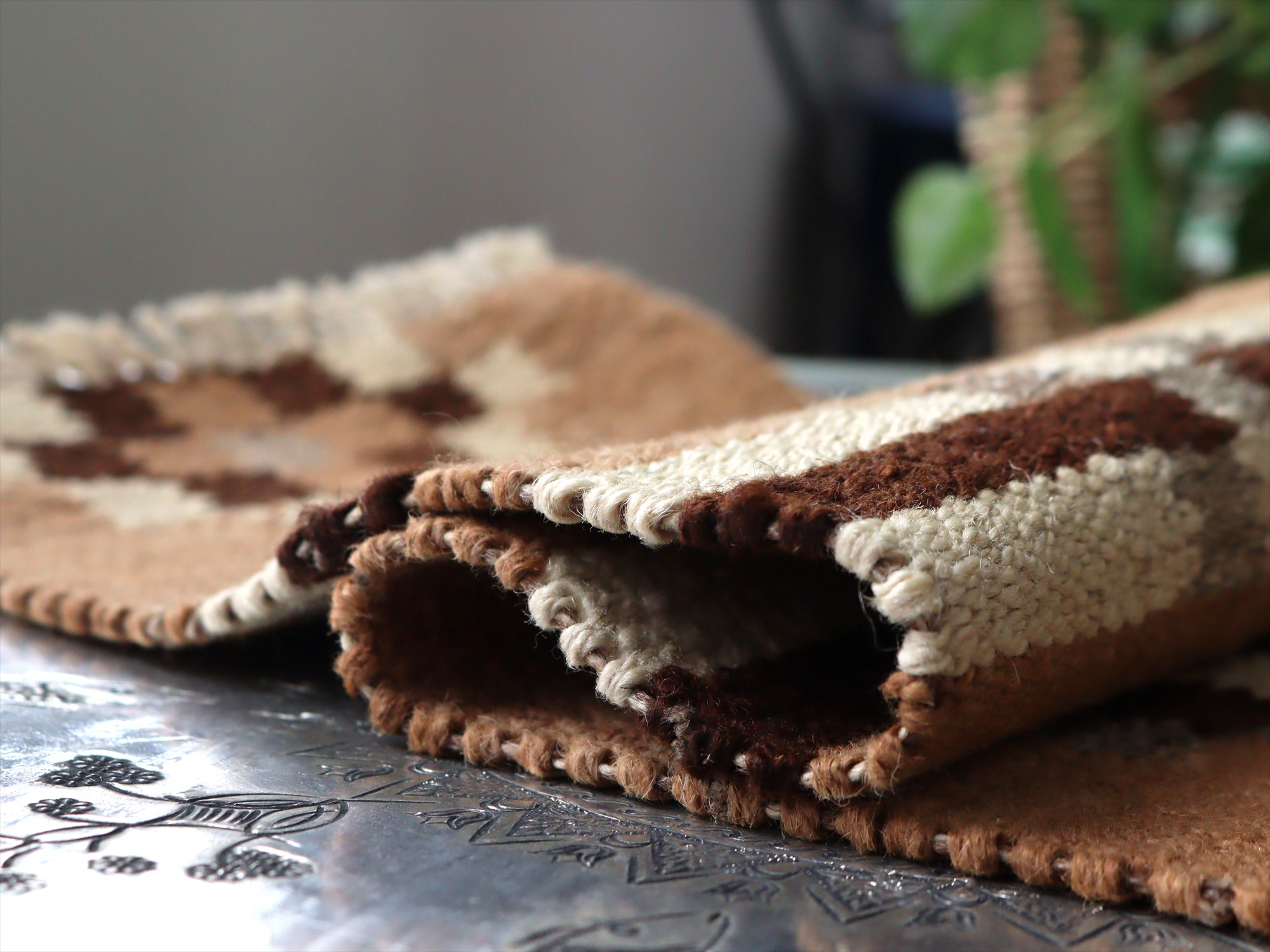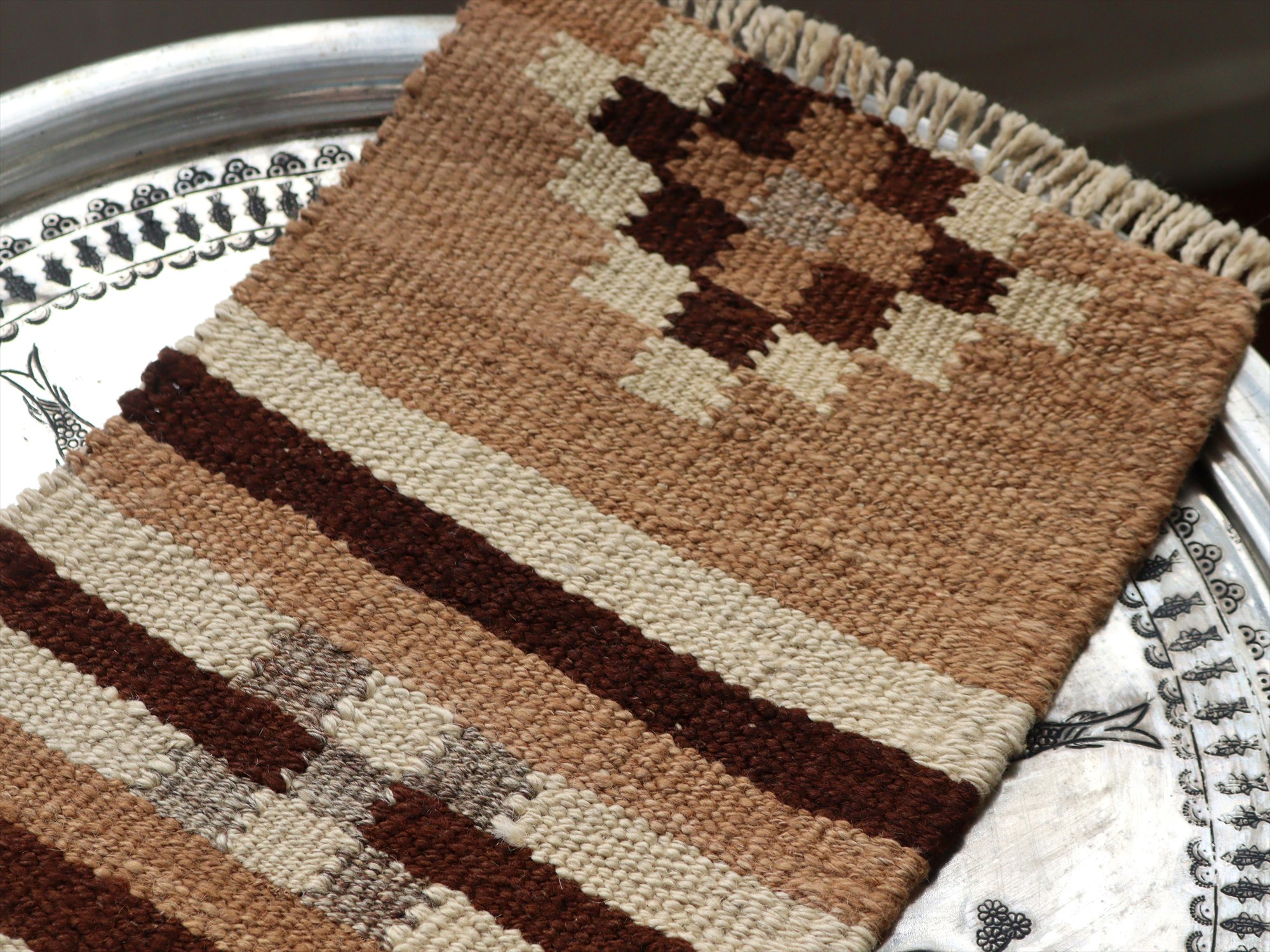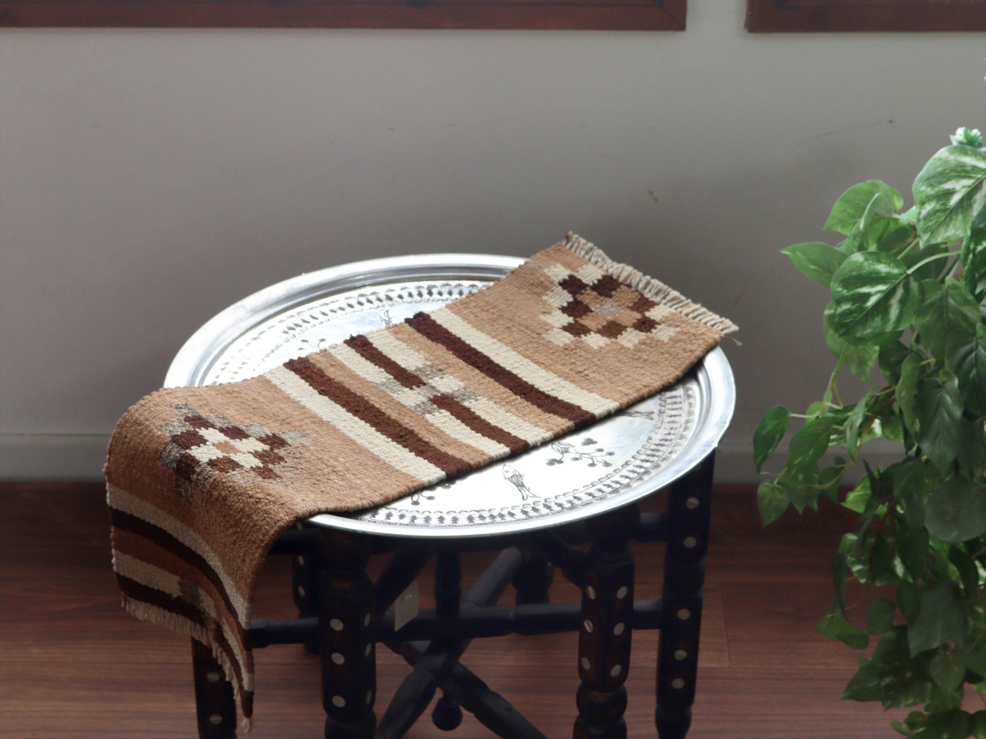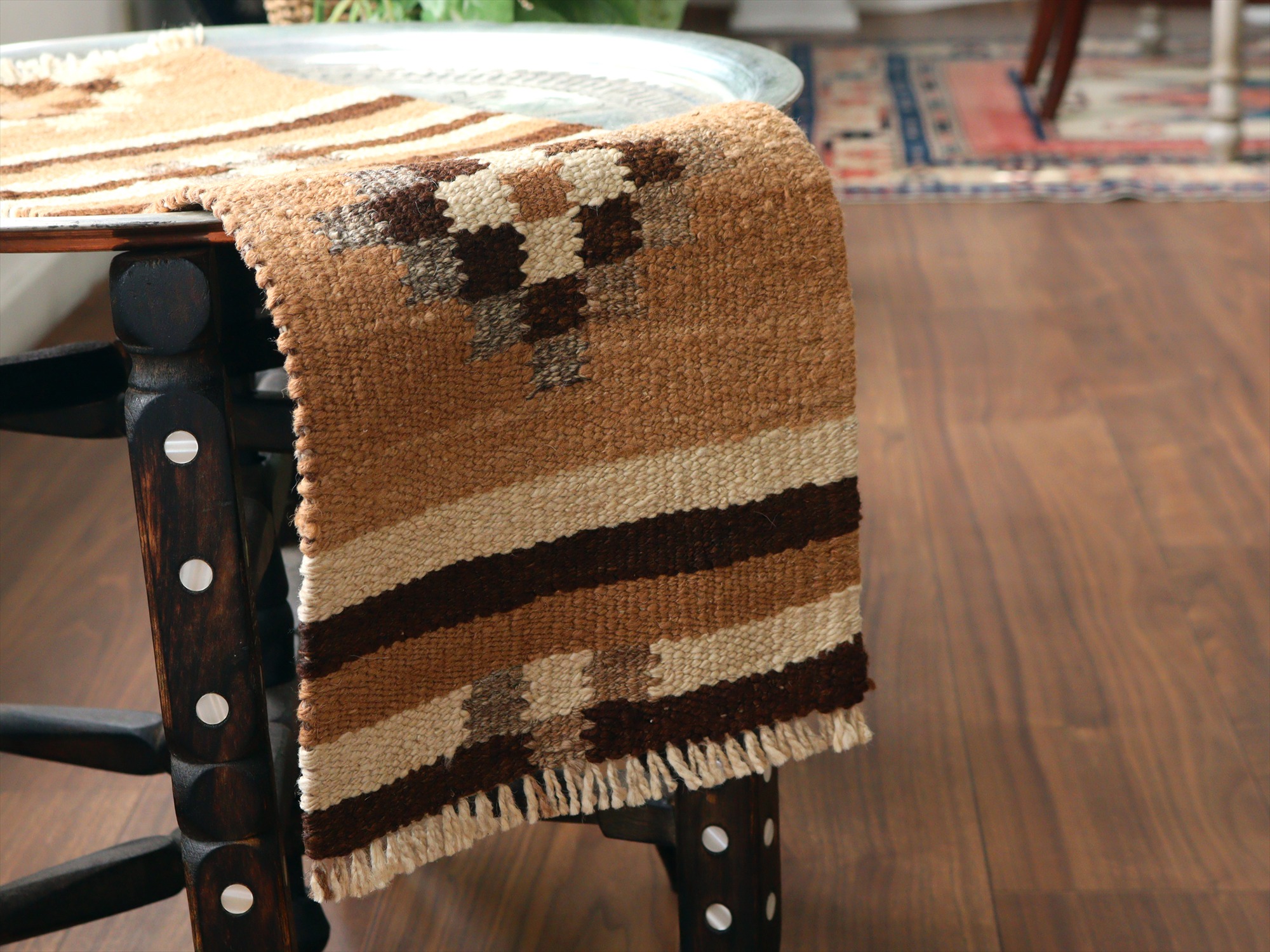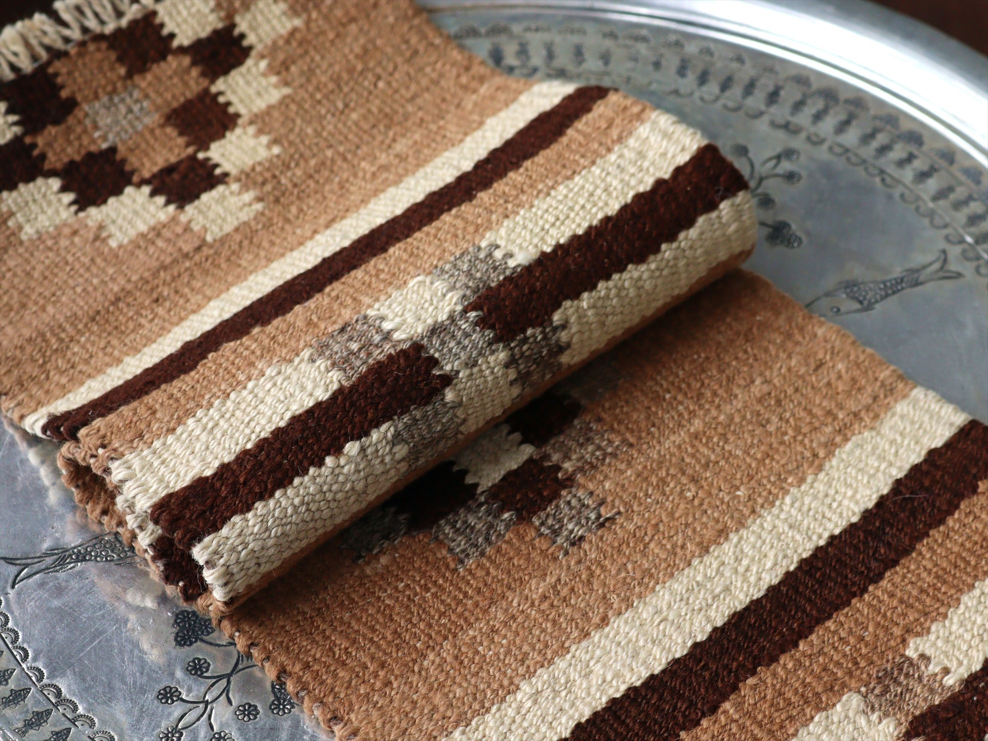 トルコの手織りキリム カルス67×24cm 幾何学モチーフ ブラウン