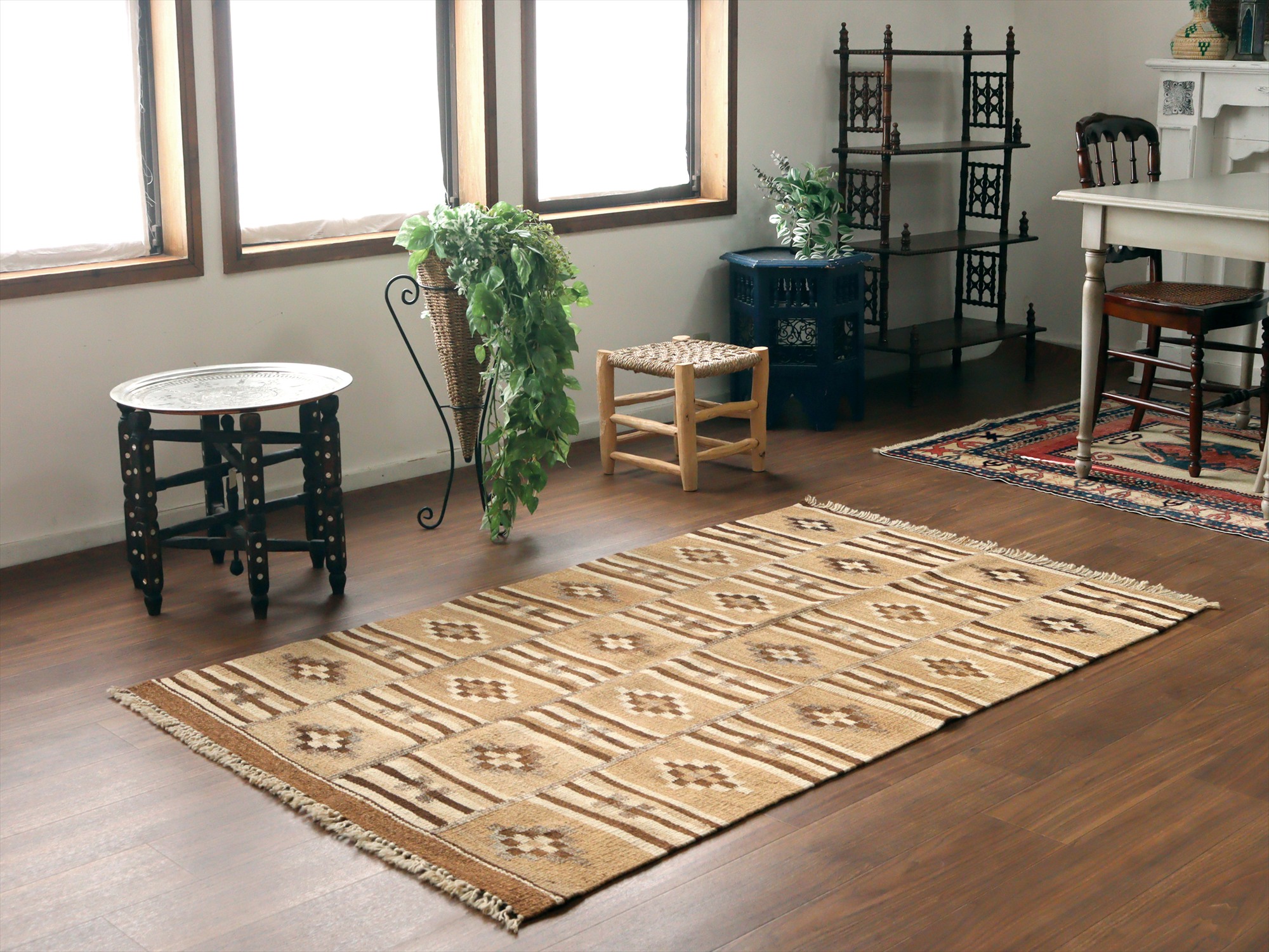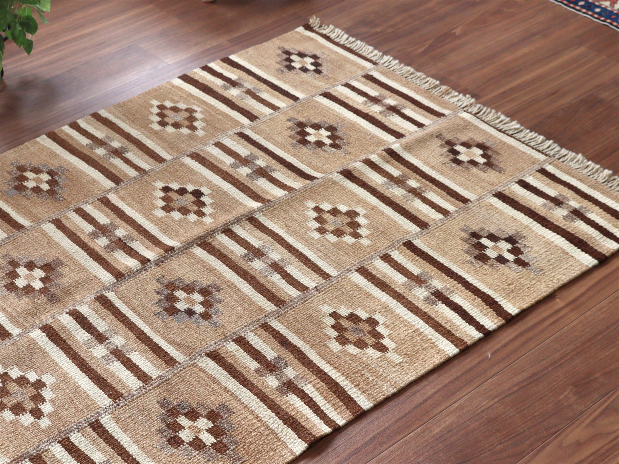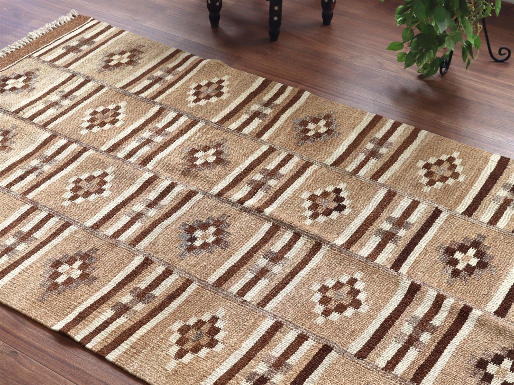 トルコの手織りキリム カルス181×107cm 幾何学モチーフ ブラウン