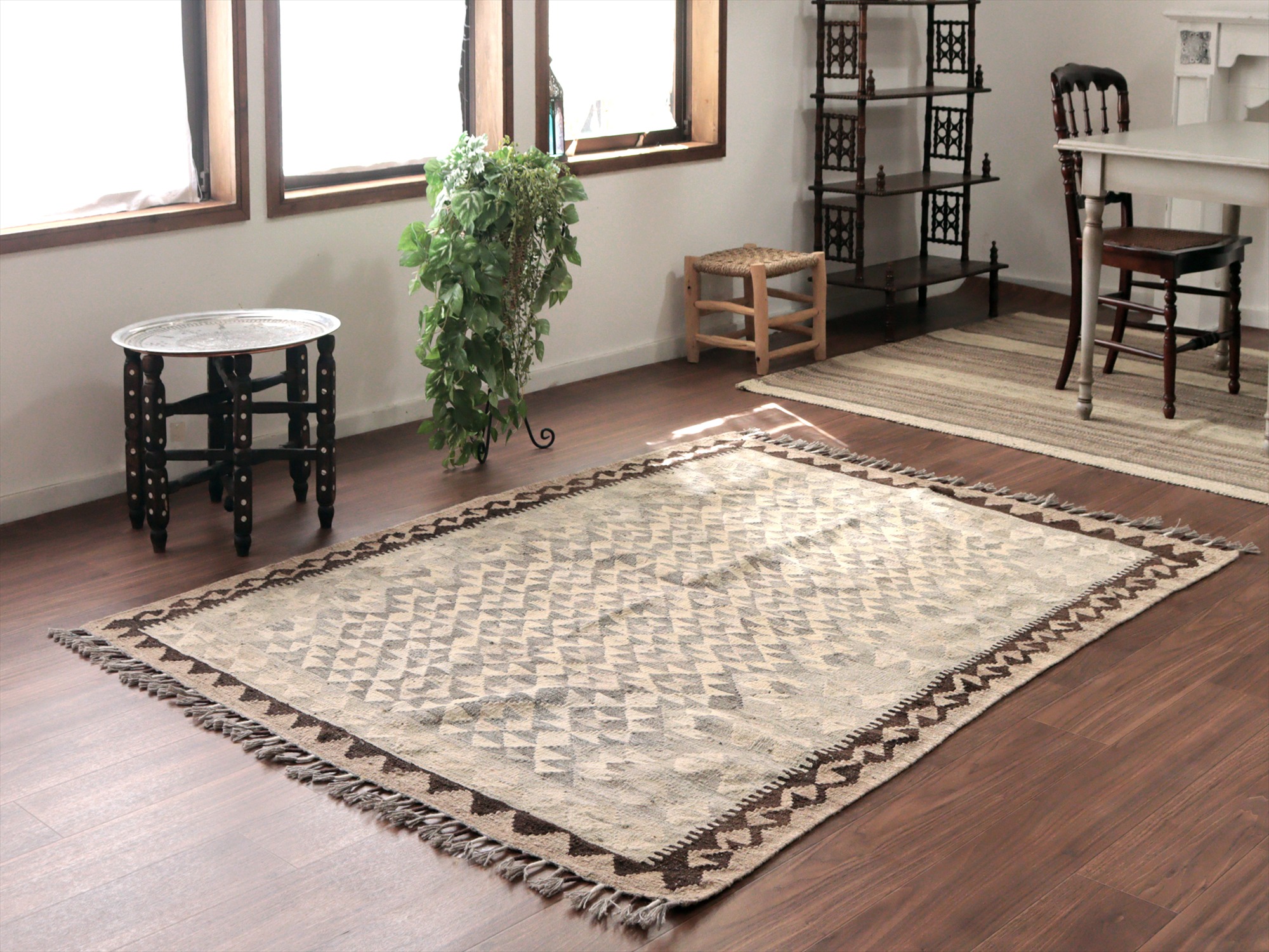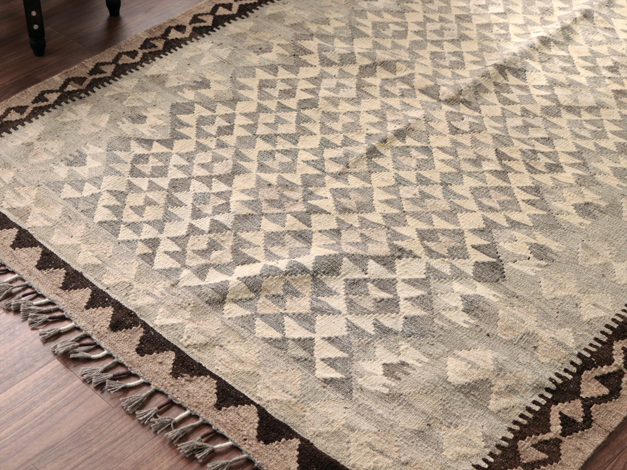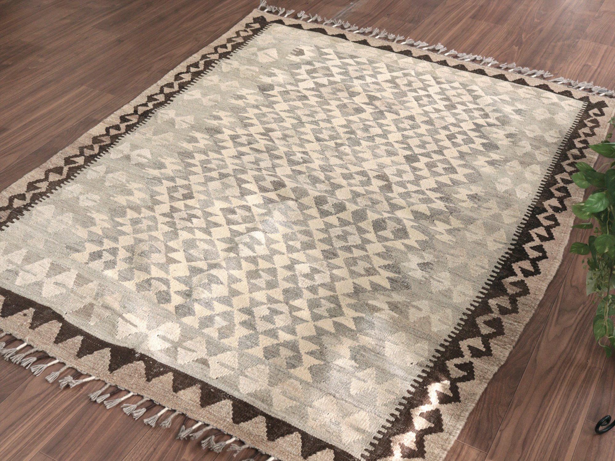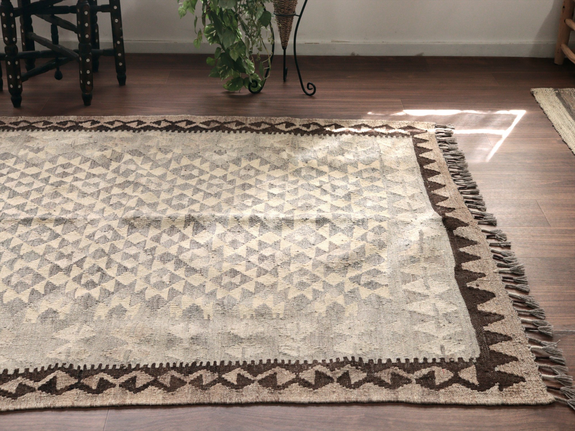 モノトーン シンプルな手織りキリム189×143cm 幾何学モチーフ アフガンキリム