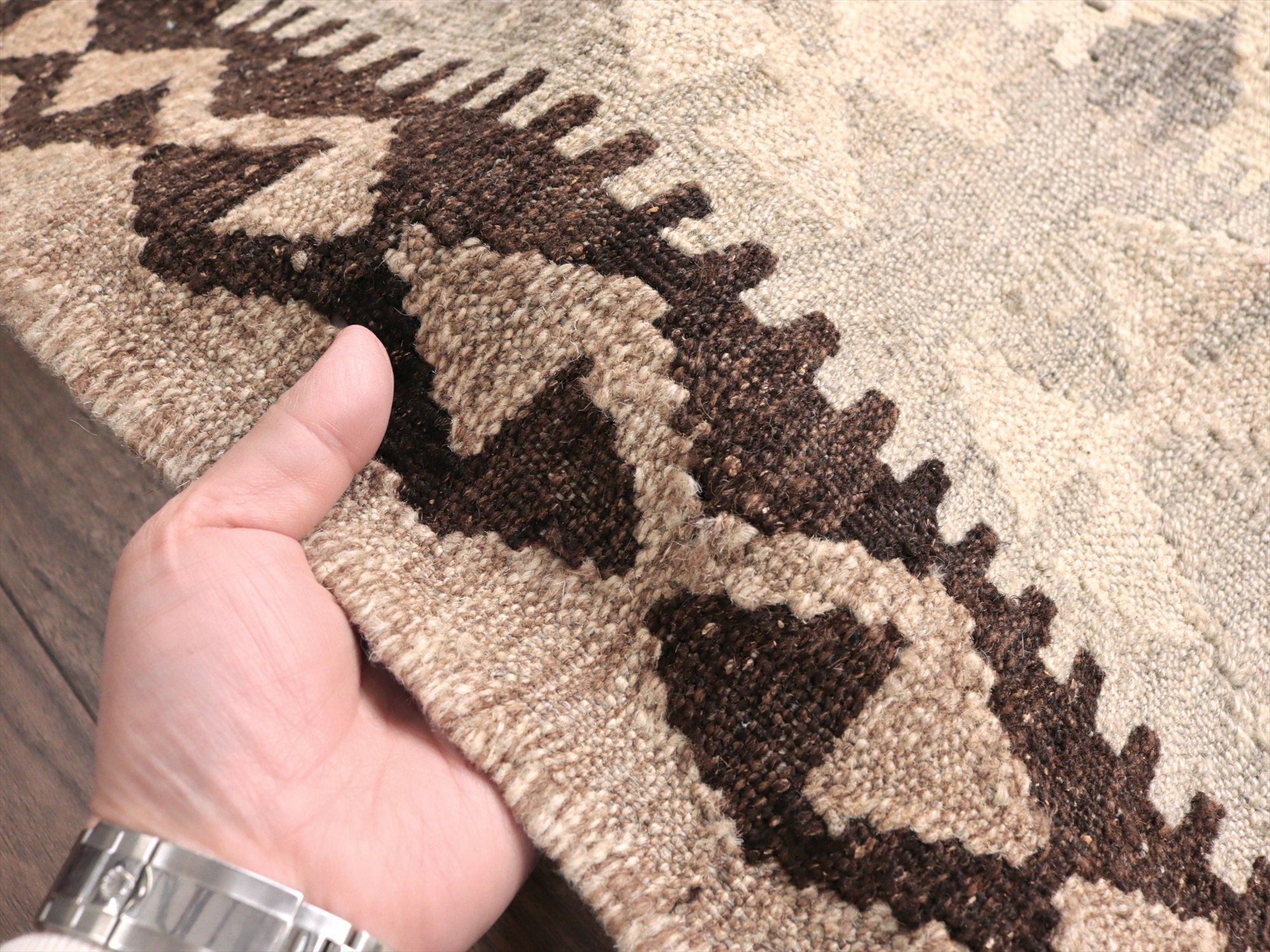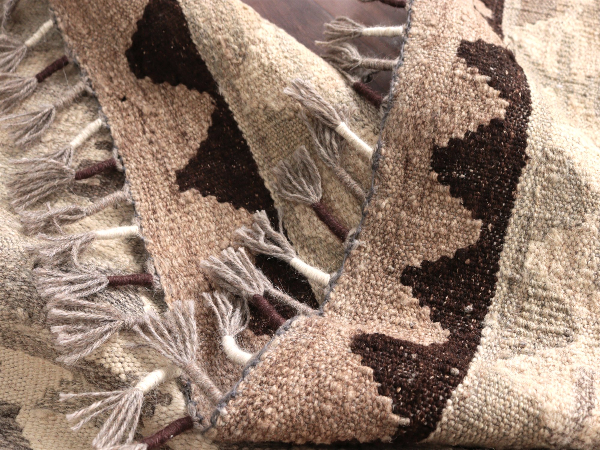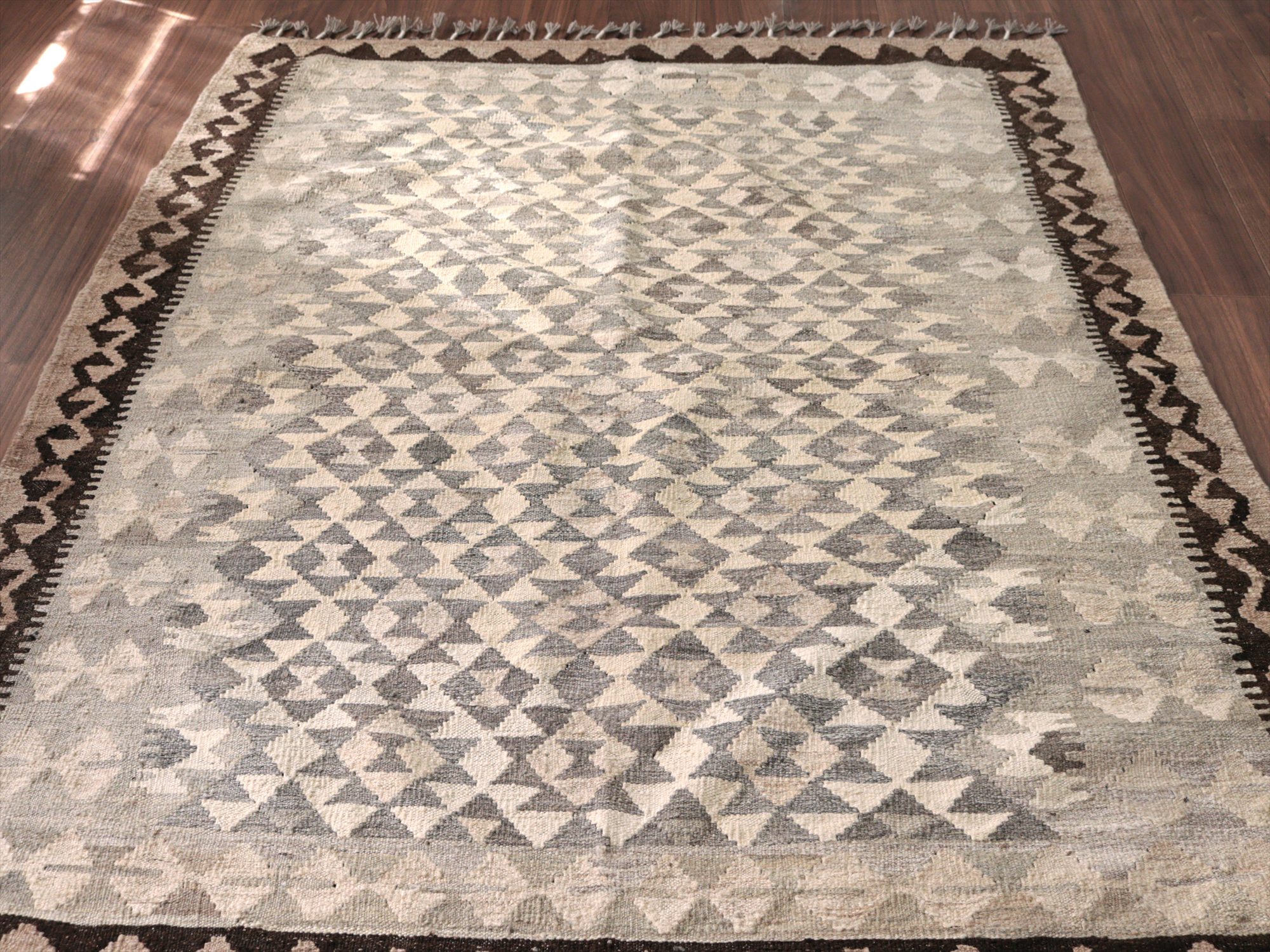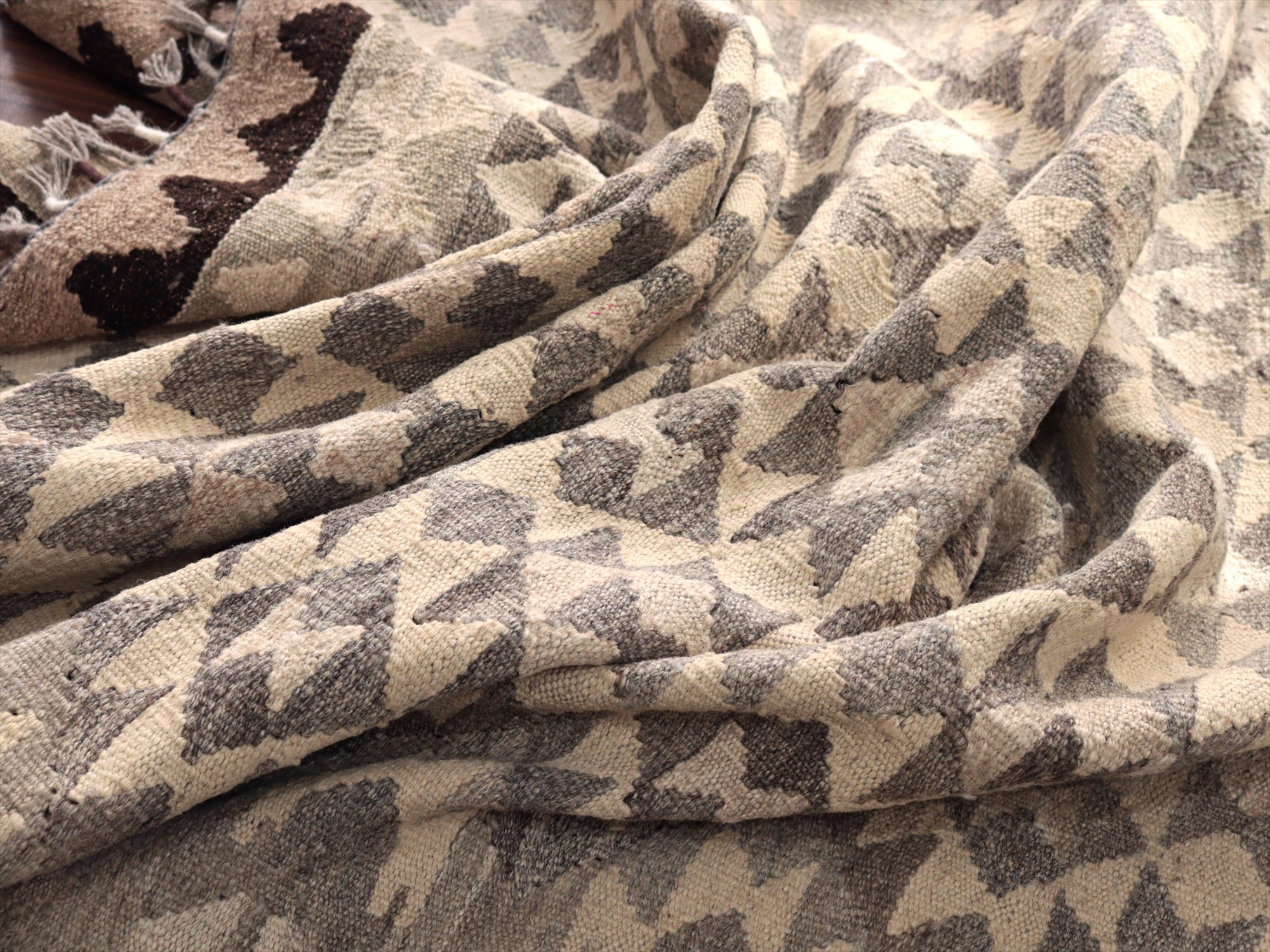 モノトーン シンプルな手織りキリム189×143cm 幾何学モチーフ アフガンキリム