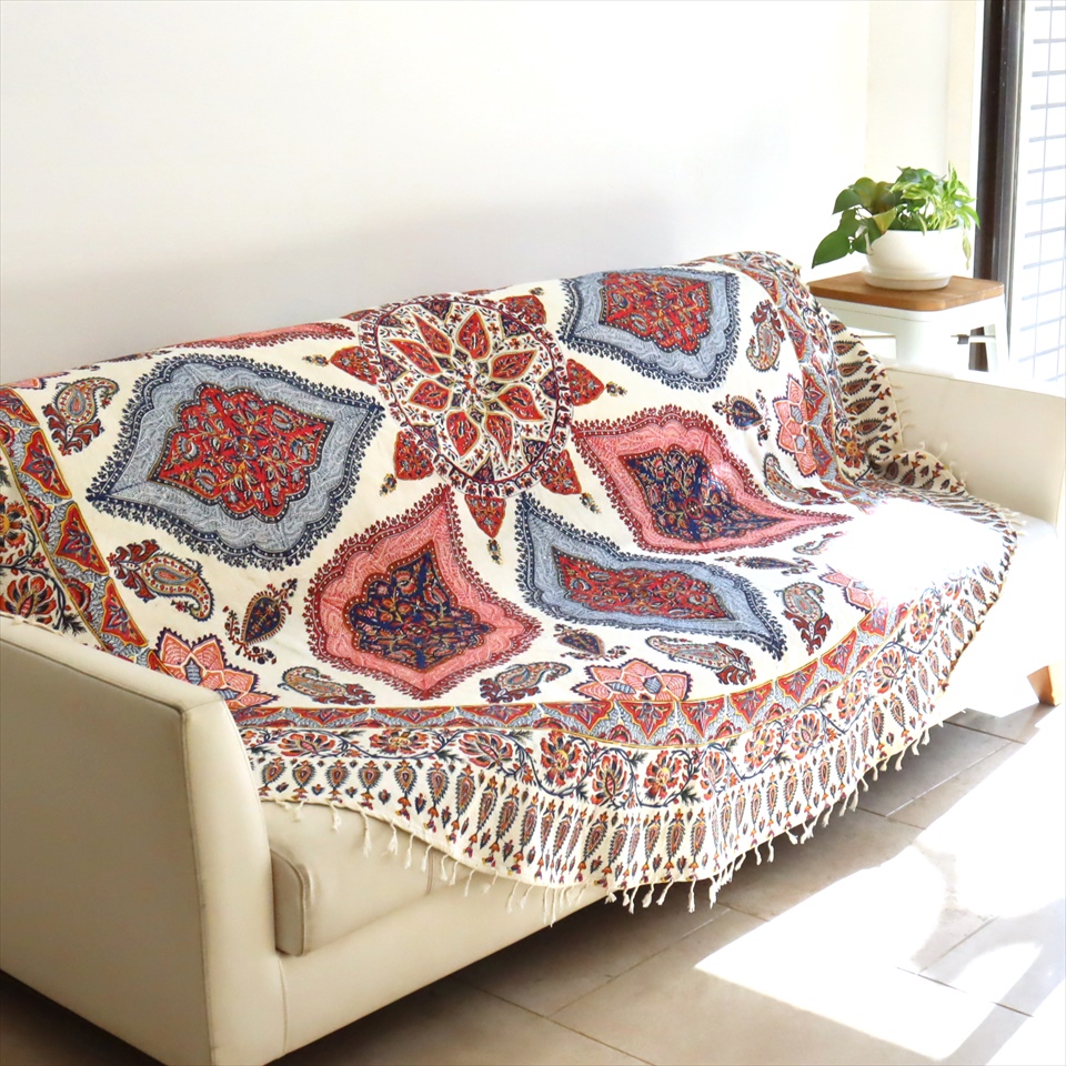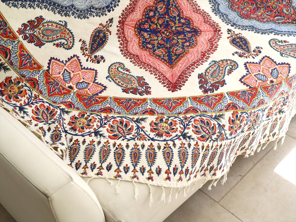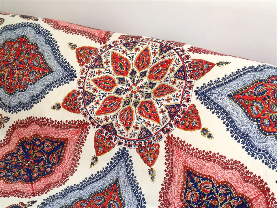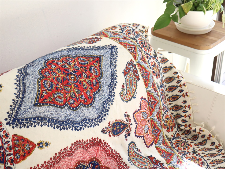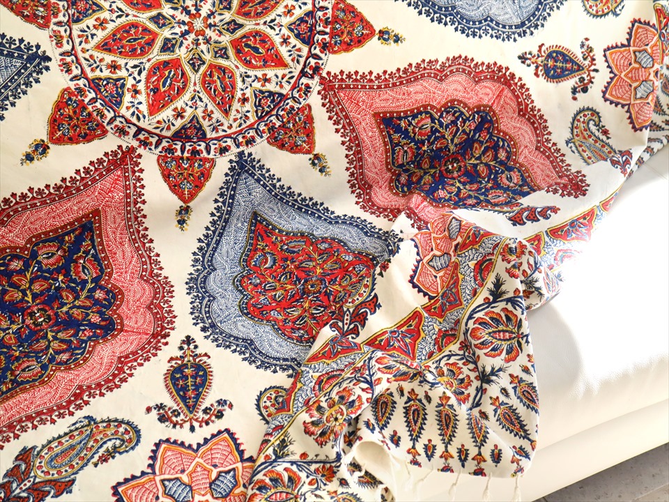 Key:コットン 染色 ブロックプリント 木版 伝統工芸 フリークロス マルチカバー ベッドスプレッド ベッドカバー ソファカバー カーテン タペストリー 背景 ファブリック インテリアファブリック インテリア ペルシャ イラン シルクロード アジアン エスニック ペイズリー