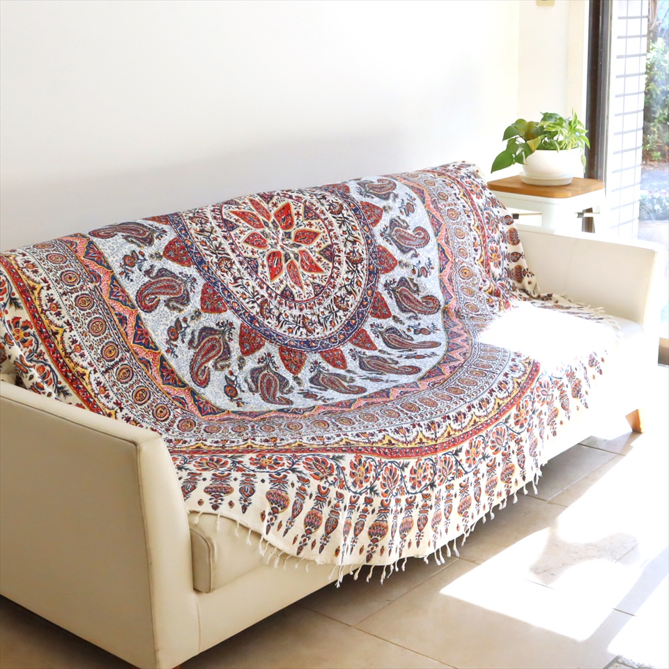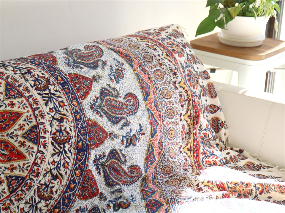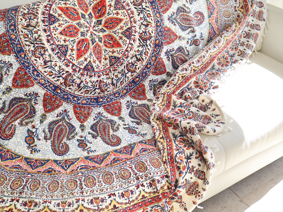 Key:コットン 染色 ブロックプリント 木版 伝統工芸 フリークロス マルチカバー ベッドスプレッド ベッドカバー ソファカバー カーテン タペストリー 背景 ファブリック インテリアファブリック インテリア ペルシャ イラン シルクロード アジアン エスニック ペイズリー