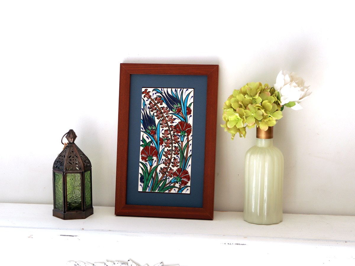 Key:タイル トルコ 陶器 イズニック キュタフヤ 手書き ハンドメイド パネル 額 インテリア 壁 ディスプレイ Iznik Tile Turkish Hand paint Handmade Ottoman Blue Mosque Kutahya