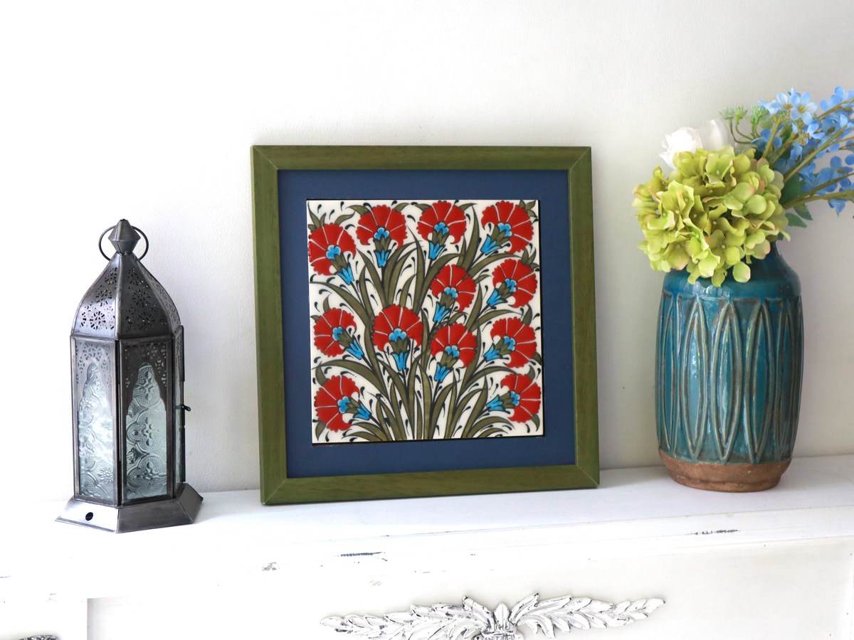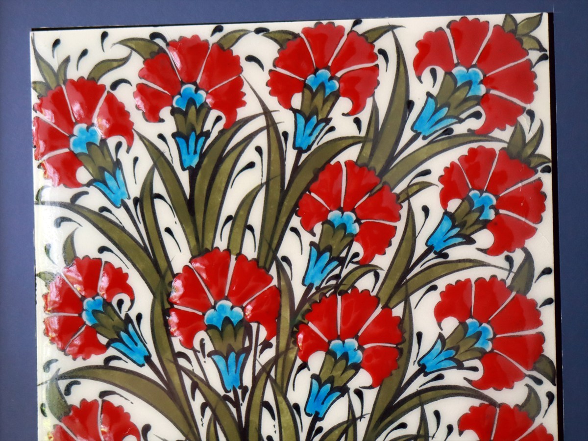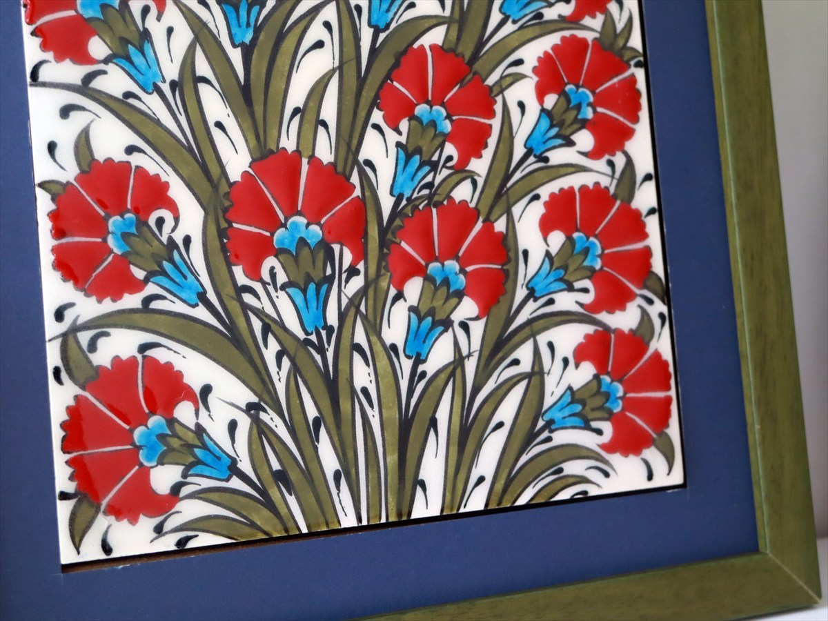 Key:タイル トルコ 陶器 イズニック キュタフヤ 手書き ハンドメイド パネル 額 インテリア 壁 ディスプレイ Iznik Tile Turkish Hand paint Handmade Ottoman Blue Mosque Kutahya