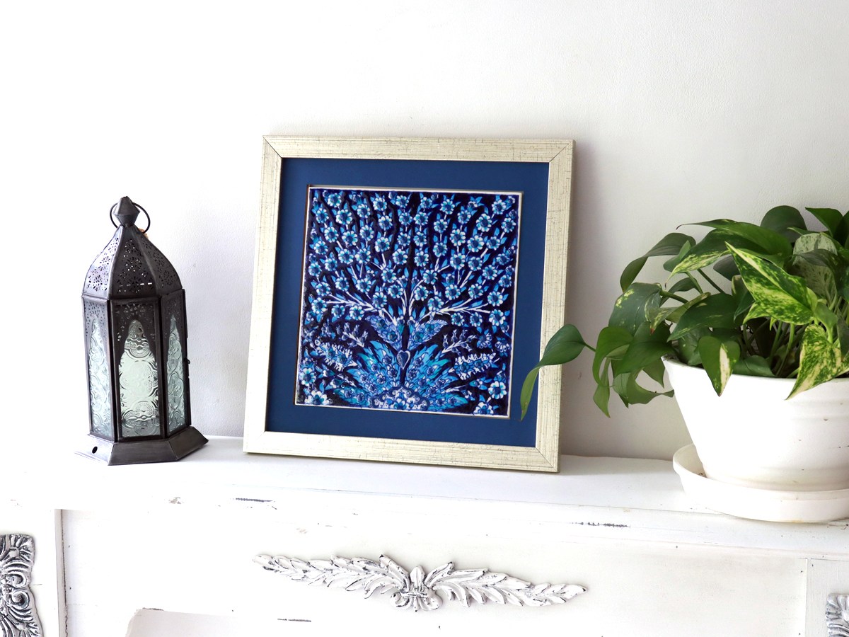 Key:タイル トルコ 陶器 イズニック キュタフヤ 手書き ハンドメイド パネル 額 インテリア 壁 ディスプレイ Iznik Tile Turkish Hand paint Handmade Ottoman Blue Mosque Kutahya