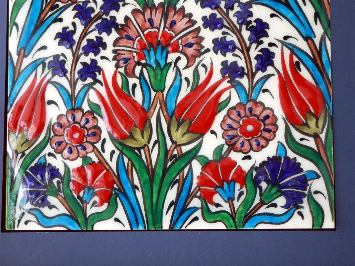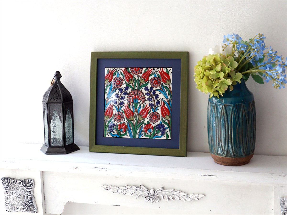 Key:タイル トルコ 陶器 イズニック キュタフヤ 手書き ハンドメイド パネル 額 インテリア 壁 ディスプレイ Iznik Tile Turkish Hand paint Handmade Ottoman Blue Mosque Kutahya
