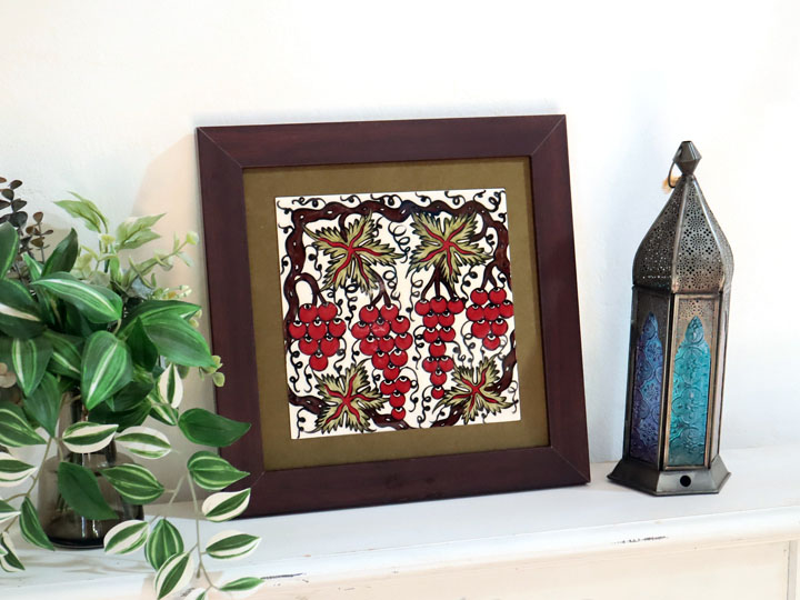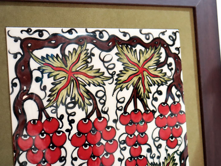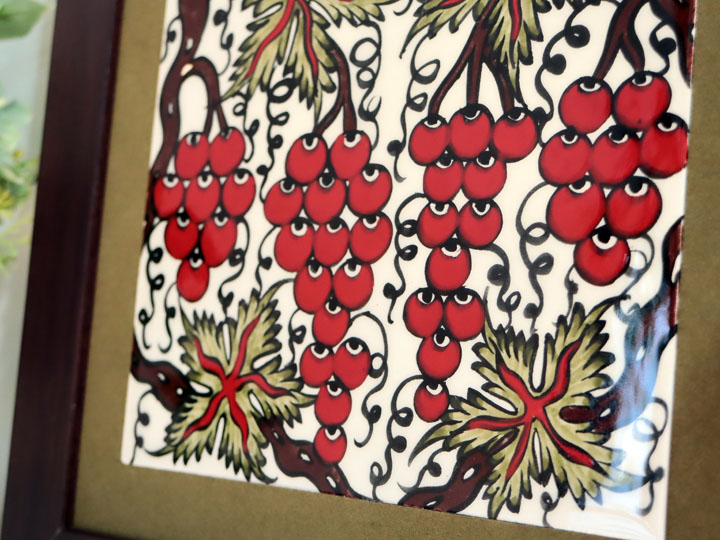 16世紀後半のオスマントルコ帝国で、宮廷お抱えのイズニック釜で作られた葡萄の絵柄を再現しています。ブドウのデザインは、明代の中国で作られた陶器を参考にしたものと言われています。
