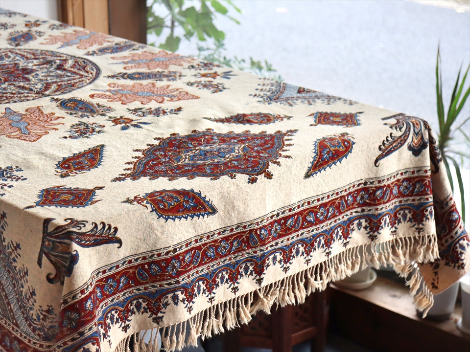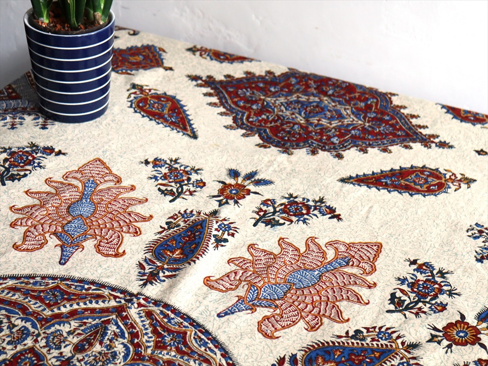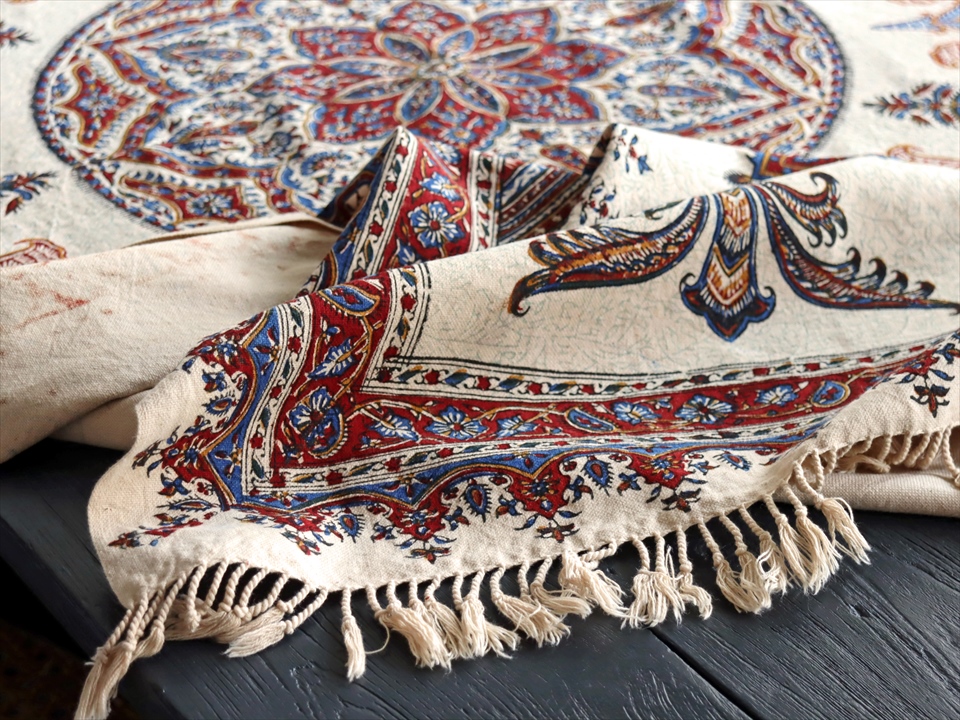 Key:ガラムカール・イラン・イスファハン・ペルシャ・シルクロード・コットン・綿100%・染色・ブロックプリント・木版・伝統工芸・テーブルクロス・ソファカバー・マルチカバー・タペストリー・背景・ペイズリー