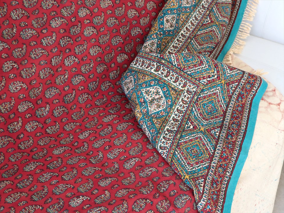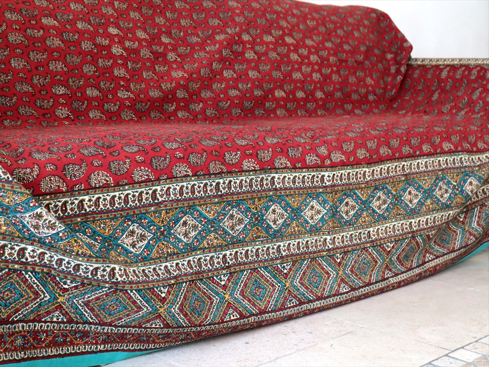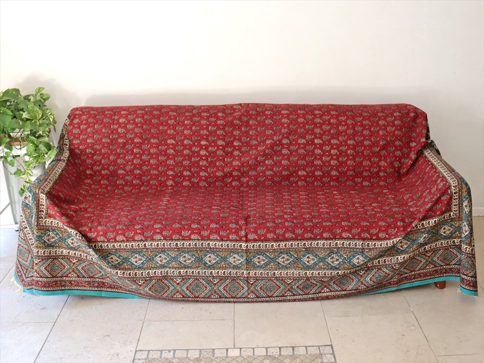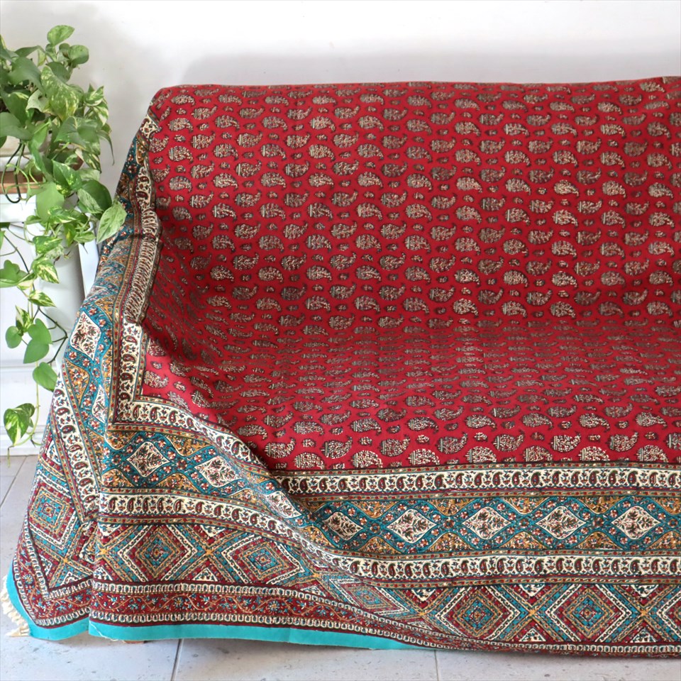 Key:コットン 染色 ブロックプリント 木版 伝統工芸 フリークロス マルチカバー ベッドスプレッド ベッドカバー ソファカバー カーテン タペストリー 背景 ファブリック インテリアファブリック インテリア ペルシャ イラン シルクロード アジアン エスニック ペイズリー