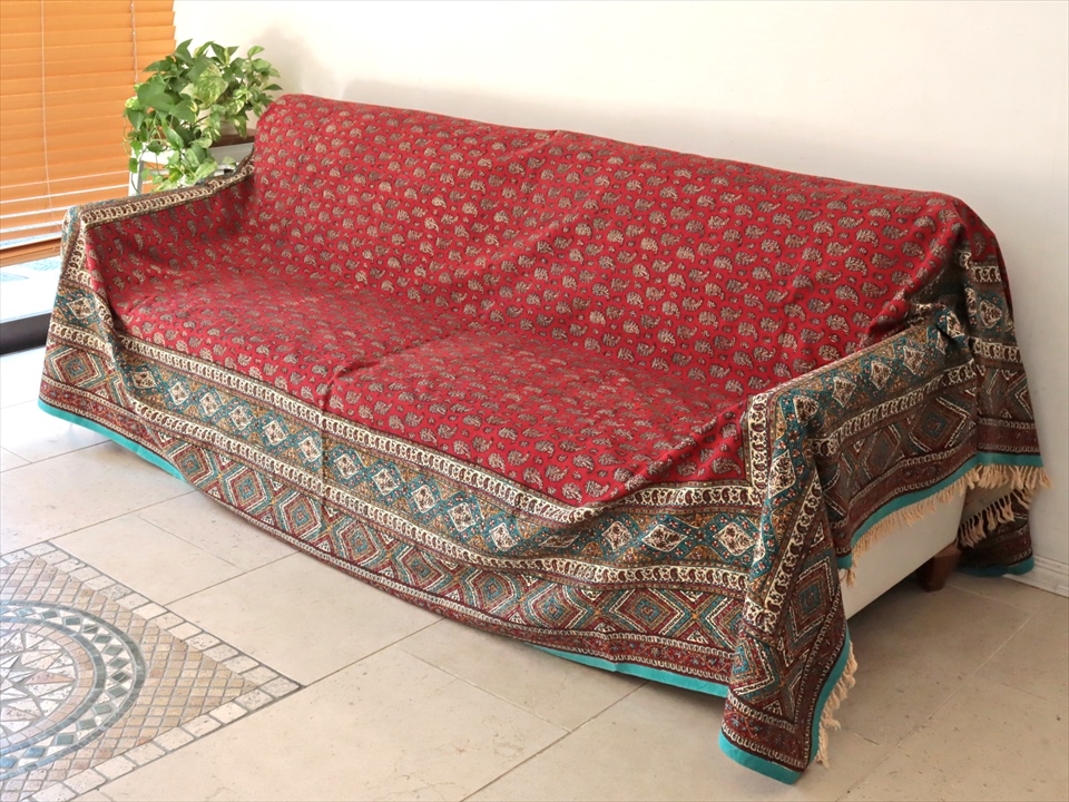 ペルシャ更紗 ガラムカール 270x208cm アンティークデザイン ペイズリー ソファーカバー ベッドカバー